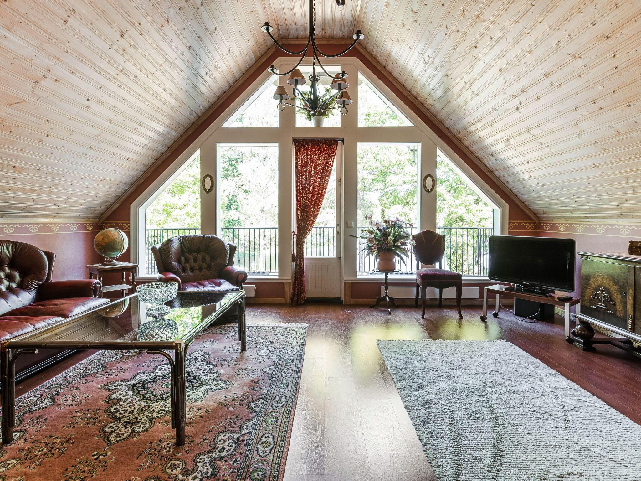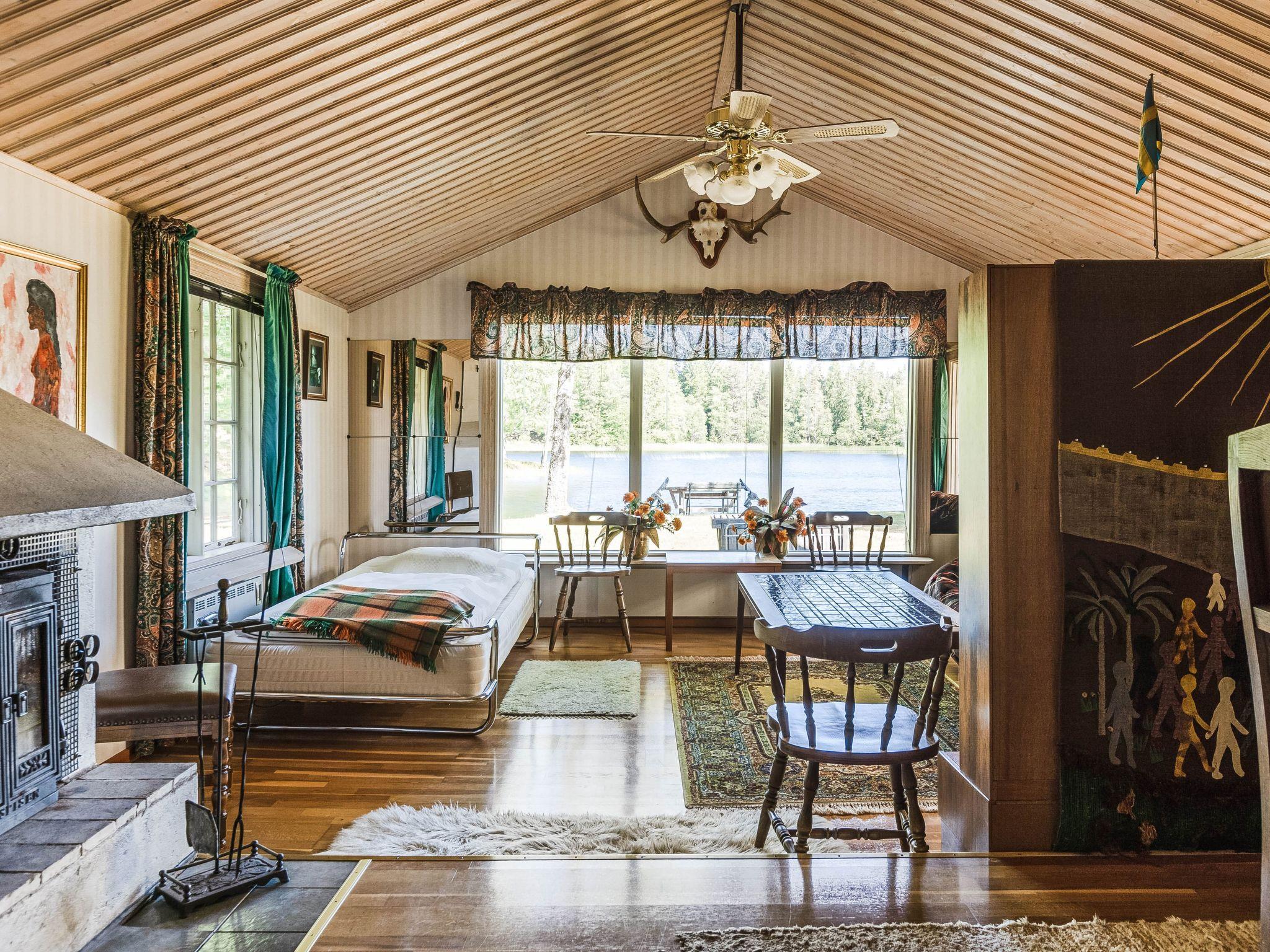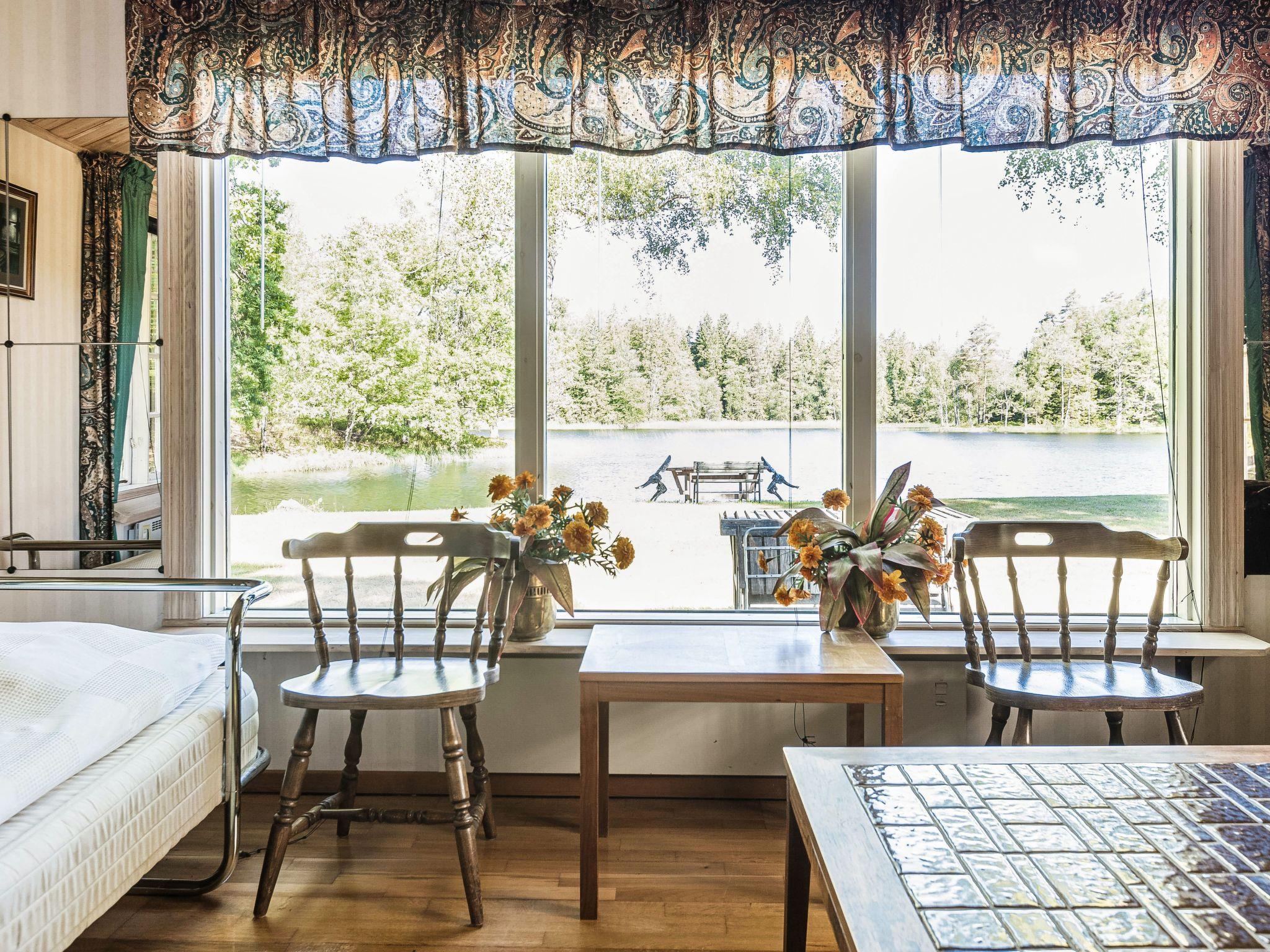 "Norrviken", 4-room house 105 m2 on 2 levels. Comfortable furnishings: living/sleeping room with 3 beds, Scandinavian wood stove, dining table, digital TV and hi-fi system. Exit to the garden. Open kitchen (4 hot plates, oven, toaster, kettle, electric coffee machine) with dining table. Shower/WC. Electric heating. Upper floor: (steep stair) living room with digital TV and hi-fi system. Exit to the balcony. 1 room with 1 bed. 1 open room with 2 beds. Open kitchen (4 hot plates, oven, electric coffee machine). Parquet floors. Balcony. View of the lake. No internal connecting door between the separated properties. No running water in the annexe. Smoking is not allowed in the main building but allowed in the annex.