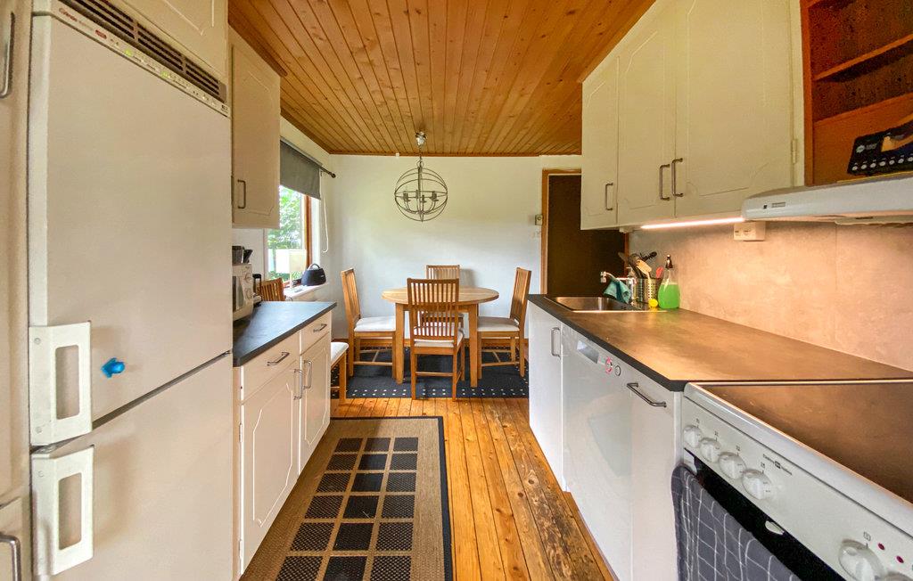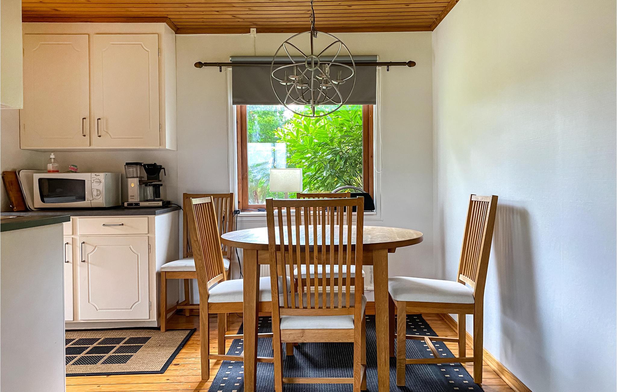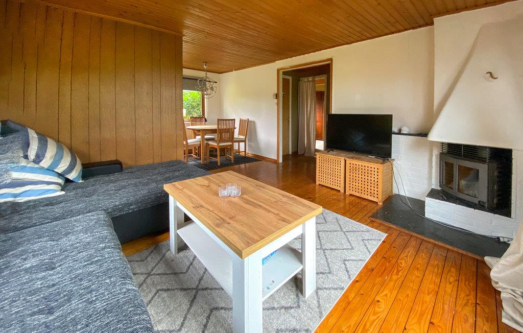 Det innbydende og komfortable huset ønsker deg velkommen i nærheten av gode bade- og fiskemuligheter midt i den vakre naturen. Nyt en avslappende ferie sammen med dem du er glad i i de moderne og svært hjemmekoselige rommene og den vakre utsikten over omgivelsene så snart du våkner. Gled dere til felles måltider eller underholdende spillkvelder, og etter en begivenhetsrik dag kan dere sitte lenge og godt sammen, legge føttene opp i sofaen, nyte utsikten og slå av en prat til den koselige knitringen fra flammene i peisen.