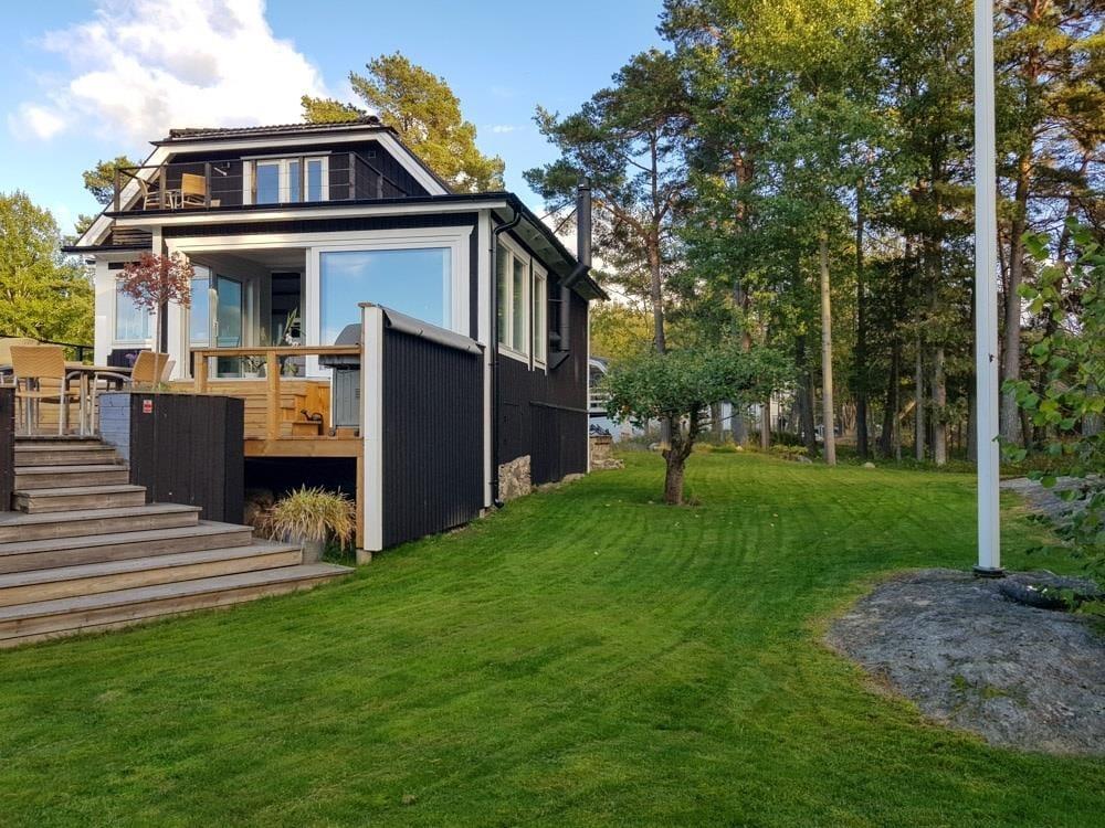 Nur 30 km vom Zentrum Stockholms entfernt liegt dieses großartige Haus auf der Schäreninsel Värmdö auf einem 1700 m² großen Naturgrundstück – idyllisch eingebettet in eine ruhige Wald- und Meereslandschaft. Die erste Bademöglichkeit im Meer erreichst du nach etwa 350 m, eine kinderfreundliche Badestelle nach etwa 700 m und den kommunalen Strand “Grisslinge Havsbad” nach etwa 1 km. Der nächste Nachbar ist 100 m und die Landstraße 90 m entfernt. Für kleinere Einkäufe fährst du etwa 700 m, weitere Einkaufsmöglichkeiten findest du am Stadtrand von Stockholm nach etwa 15 km.