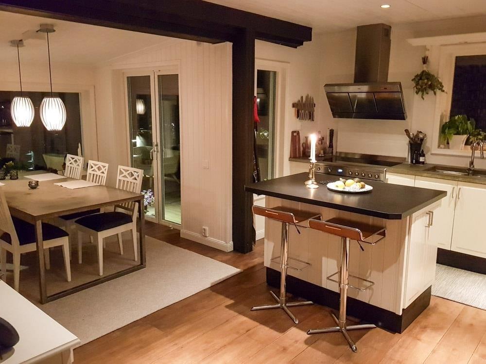 Das 1941 erbaute Ferienhaus bietet dir etwa 200 m² Wohnfläche mit 4 Schlafzimmern. Davon sind zwei ausgestattet mit großzügigen 180 cm breiten Doppelbetten, eines mit einem 140 cm breiten und das andere mit einem 120 cm breiten Bett. Die offen gestaltete Wohnküche ist ausgestattet mit einem 5-Platten-E-Herd, Backofen, Kühl-Gefrierkombination, Geschirrspüler, Mikrowelle und Kaffeemaschine. Vom Esstisch aus genießt ihr beim Essen den Blick aufs Wasser. Im angrenzenden Wohnbereich findest du eine Sitzecke, SAT-TV, ggf. DVD-Player und WLAN. Das größere Badezimmer ist mit WC, Badewanne und Fußbodenheizung ausgestattet, das kleinere bietet WC, Dusche und ebenfalls Fußbodenheizung. Zusätzlich gibt es einen Waschraum mit Waschmaschine und Trockner. Die etwa 100 m² große Veranda in Südlage bietet dir einen schönen Blick auf das Wasser. Im Außenbereich stehen dir Gartenmöbel, eine Grillküche mit Gas- und Kohlegrill und ein großes Naturgrundstück zum Spielen zur Verfügung. Auf Anfrage könnt ihr zwei Erwachsenenfahrräder ausleihen. Ein Parkplatz befindet sich direkt am Haus.