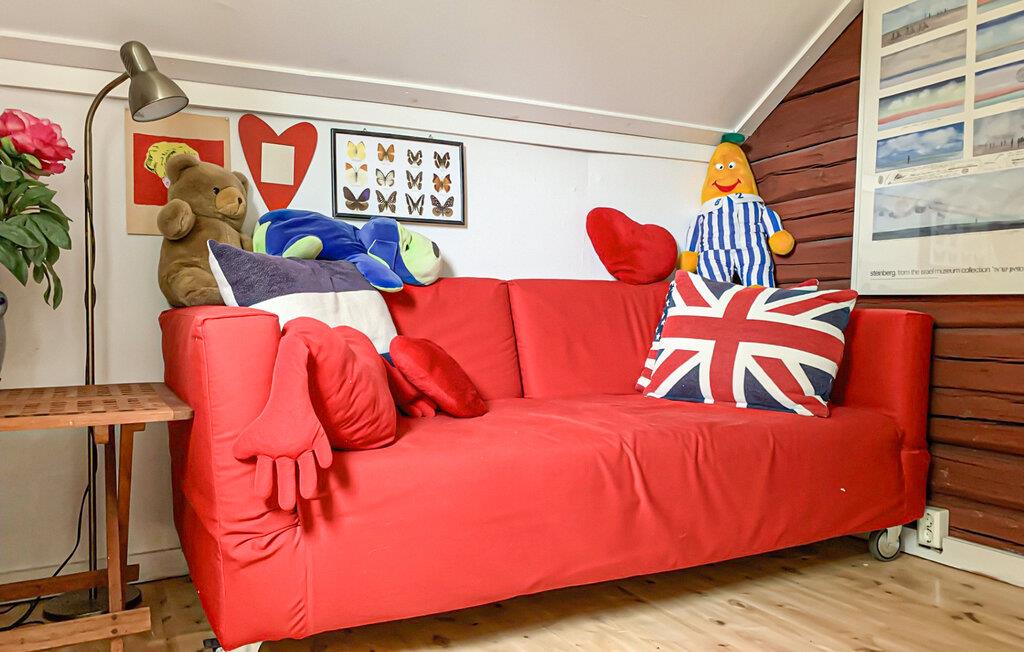 Opplev freden og roen i det svenske livet på landet. Dette huset ligger midt i den grønne naturen, og er det ideelle tilfluktsstedet for alle som ønsker avkobling, frisk luft og nærhet til skjærgårdskysten. I det koselige interiøret vil du umiddelbart føle den varme, personlige atmosfæren. Lag mat på det koselige kjøkkenet med rustikk benkeplate i tre. Kok morgenkaffen og nyt den på verandaen med utsikt over de grønne omgivelsene. Slapp av i stuen med sofa, kjærlig dekorerte vegger og sjarmerende detaljer som gir huset en munter, individuell karakter.