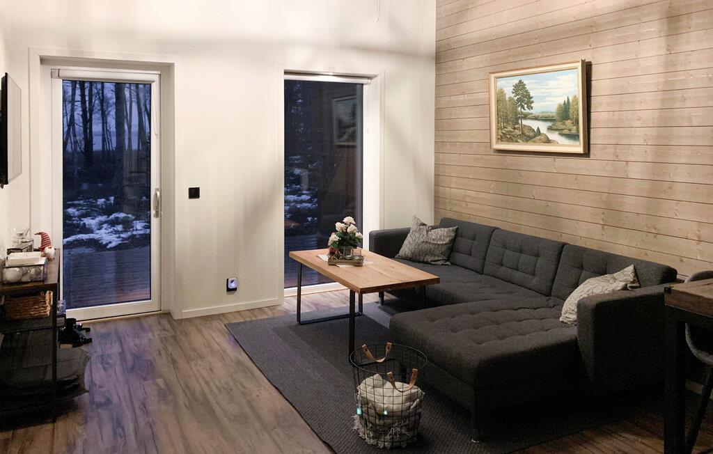 Etter en begivenhetsrik dag kan du sette deg godt til rette i den stilfullt innredede og fullt utstyrte hytta. Møblene innbyr til avslapping og velvære. Du kan også nyte utsikten over vannet fra stuen. Kos deg om kvelden med dine nærmeste med en film- eller spillkveld foran TV-en etter at du har tilberedt et deilig måltid på det stilfulle kjøkkenet.