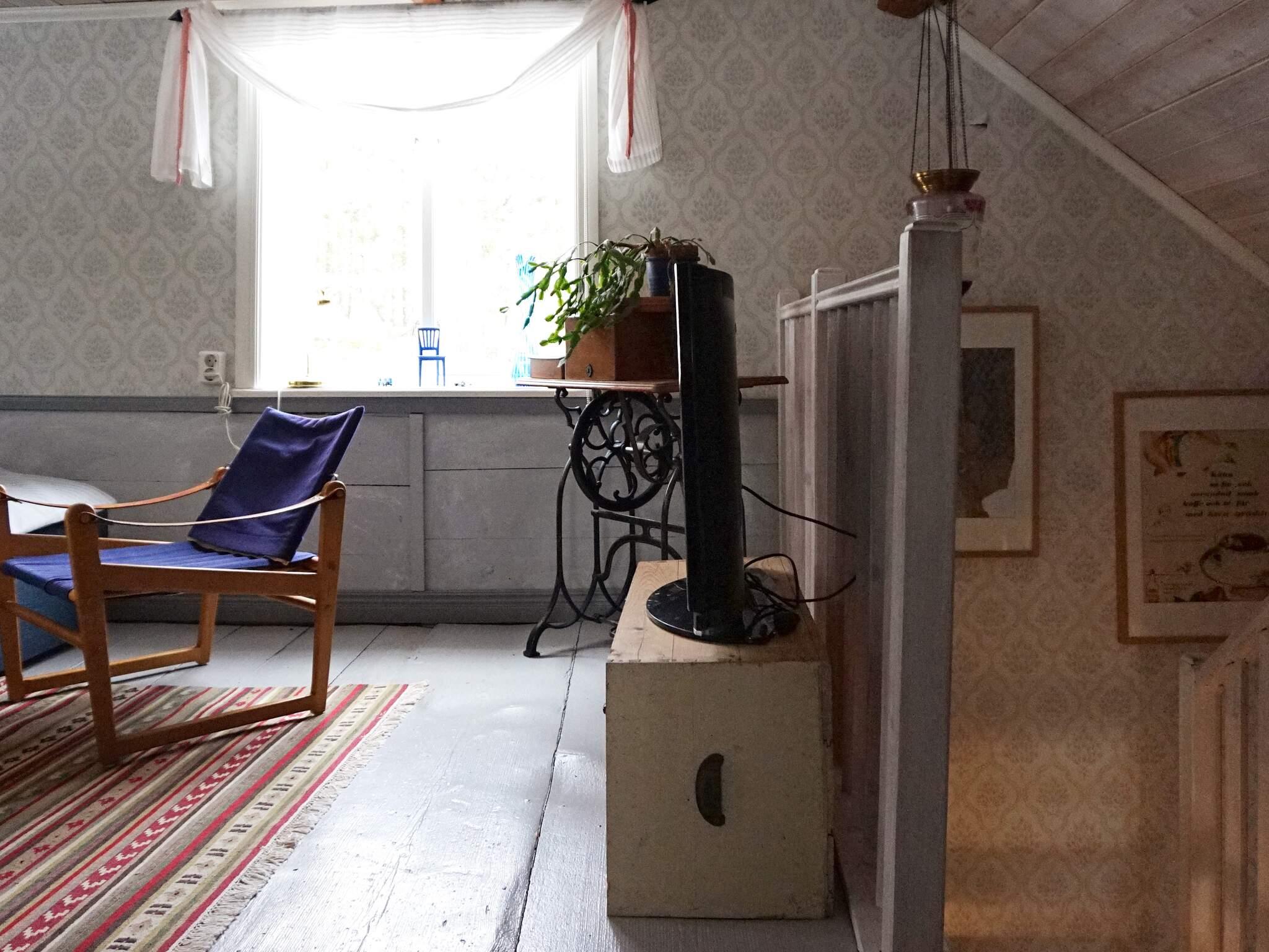 Huset har en gammal charm med både moderna och gamla detaljer, som i köket med en gammal järnspis som man kan elda i. I vardagsrummet på nedervåningen finns en braskamin, perfekt för om det blir kyliga dagar och en bäddsoffa med plats för 2 personer. På övervåningen finns det ett vardagsrum till med en bäddsoffa och även en TV. Intill ligger sovrummet med en dubbelsäng.