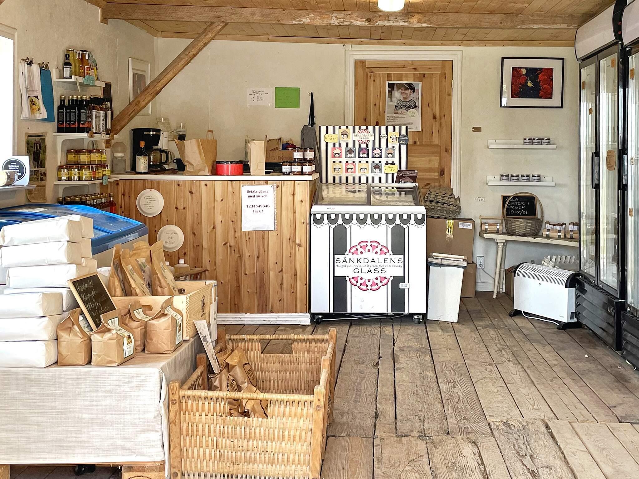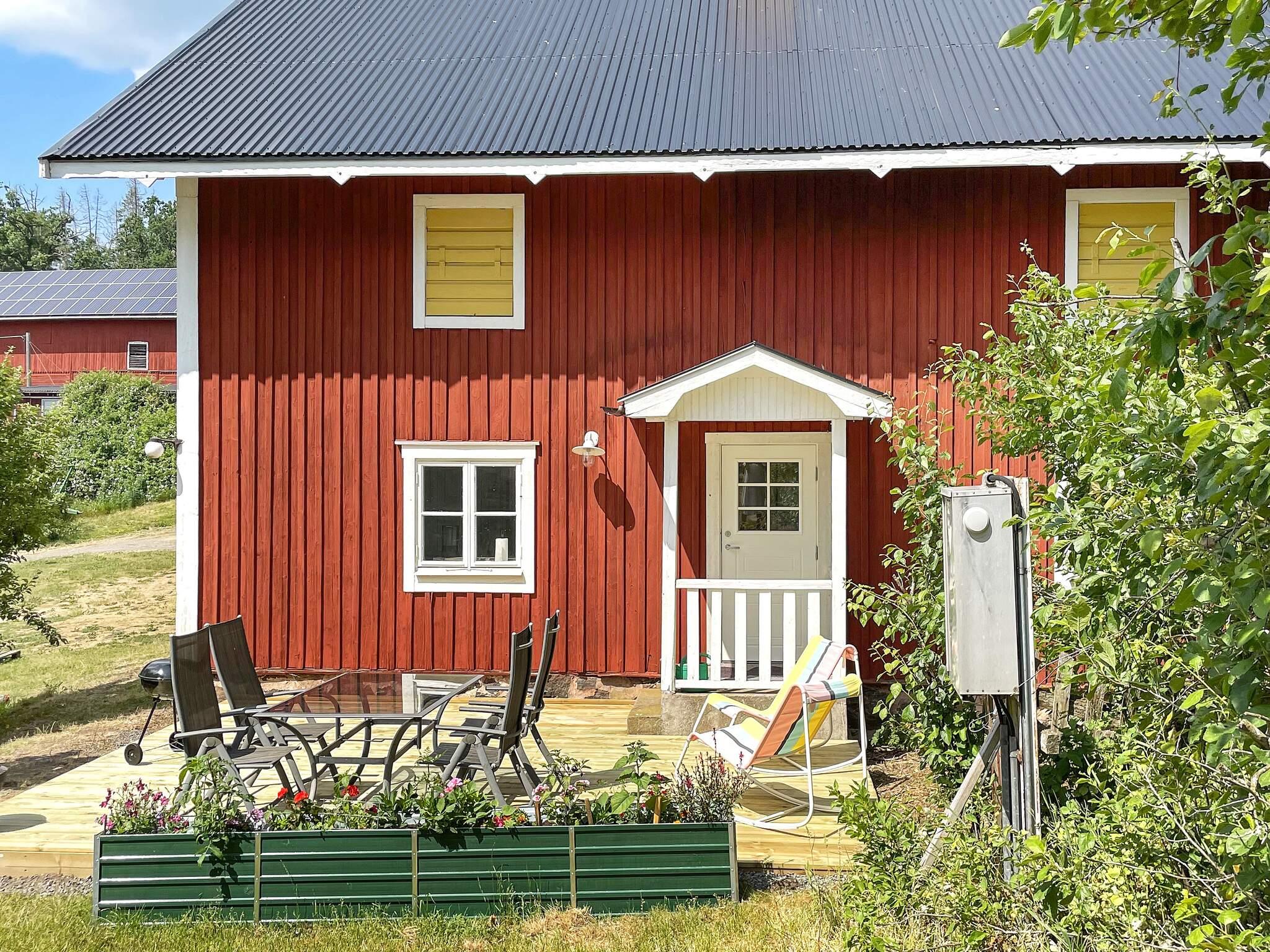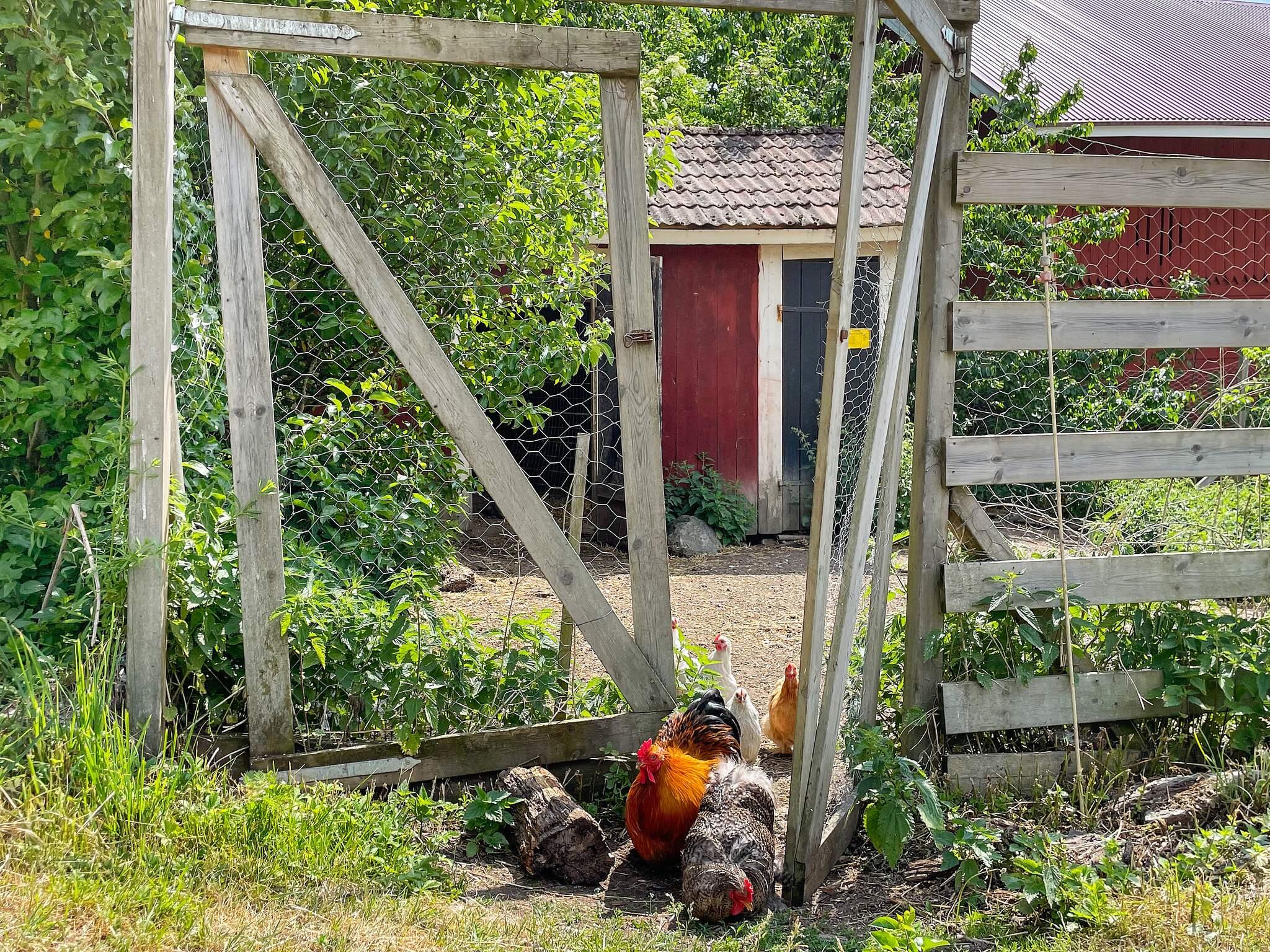 Ägarna bor längre upp på gården och driver flera verksamheter, det finns en gårdsbutik med lokalproducerade delikatesser som ägg, korv, honung, sylt mm. Godis, glass och dryck för den som vill ha det lilla extra. Trädgården är väl inramad vid ert boende med en egen altan och umgängesyta, hönsen går nedanför huset. Vid altanen finns det en odlingsbänk med kryddor, tomter, chili, paprika mm ät gärna och plocka direkt.