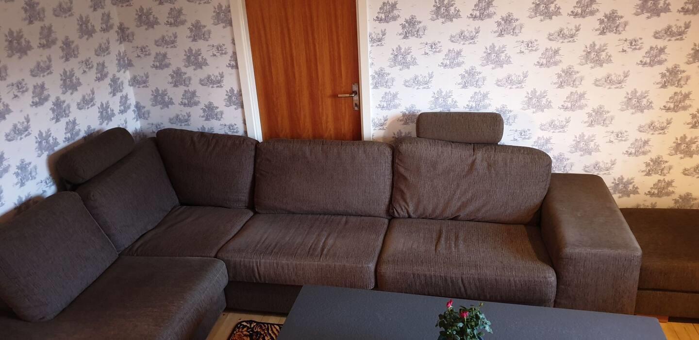 The large house consists of 2 apartments. There are a total of 5 bedrooms accommodating up to 15 people. There are 2 kitchens (the kitchen on the ground floor has a dishwasher), 2 bathrooms (one in each apartment). There is a TV lounge in the groundfloor as well as a living room on the upper floor. A washing machine is located in the basement.