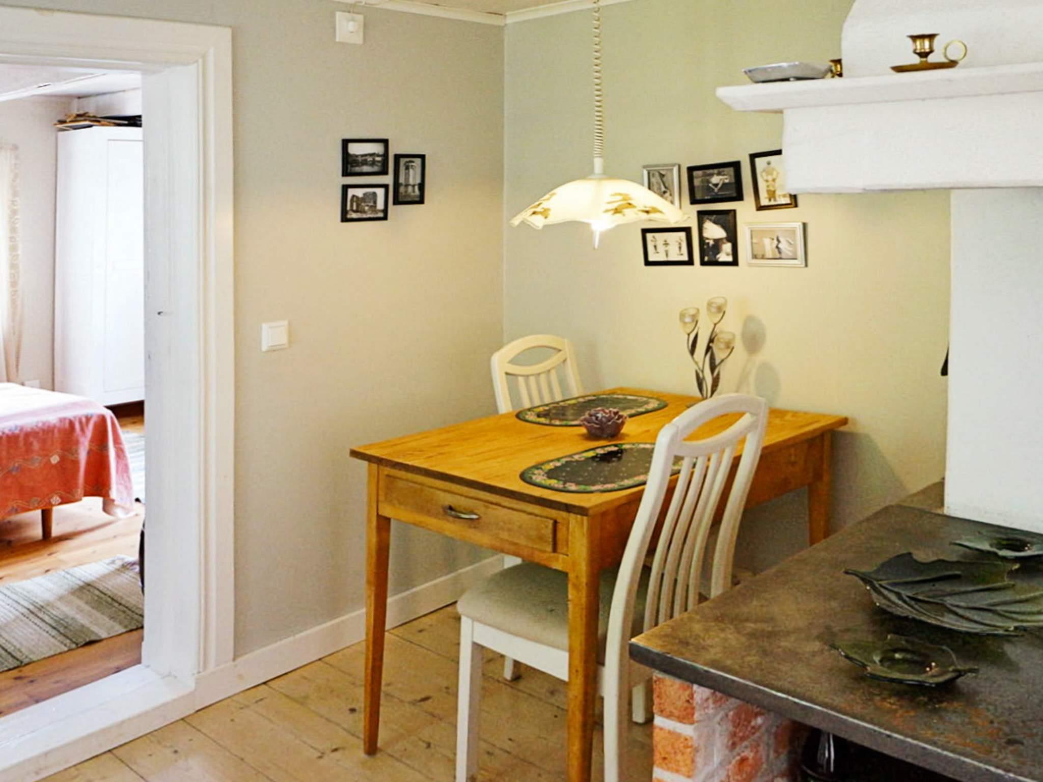 Trivsamt kök med moderna vitvaror och i anslutning finns ett litet sidokök som passar för en tidig kopp kaffe. Mer rejäl matplats för middagar finns i allrummet. Här finns även en stor fin sittgrupp med TV och DVD. Skulle någon dag kännas lite kylig så tänder man en skön brasa i den stora öppna spisen. Rejält sovrum med dubbelsäng och våningssäng. Fräscht WC/duschutrymme.