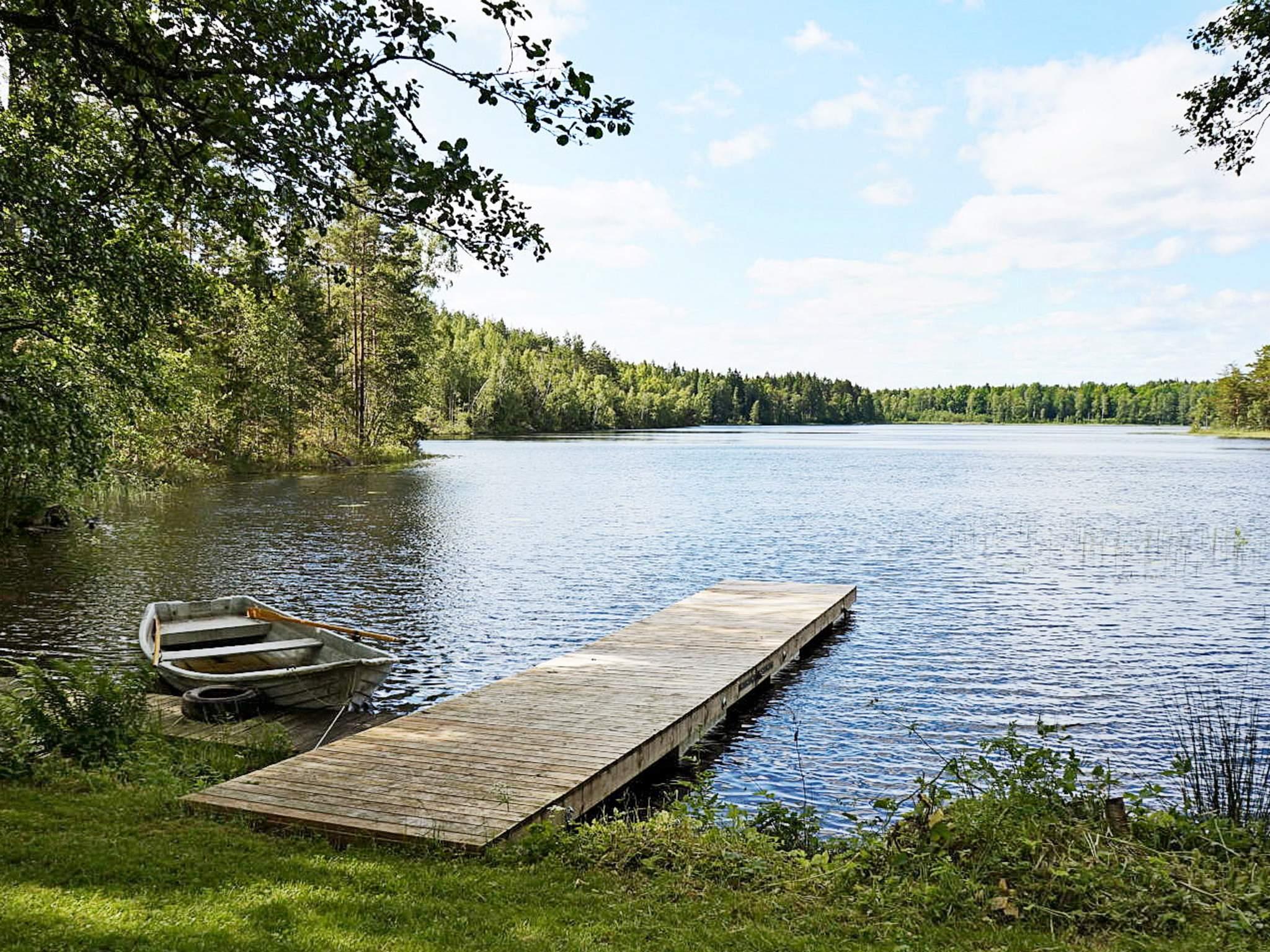Till stugan hör en roddbåt som ligger här vid stranden. Ta en avkopplande roddtur eller prova fiskelyckan efter abborre och gädda. Veckovis fiskekort kan köpas på orten.