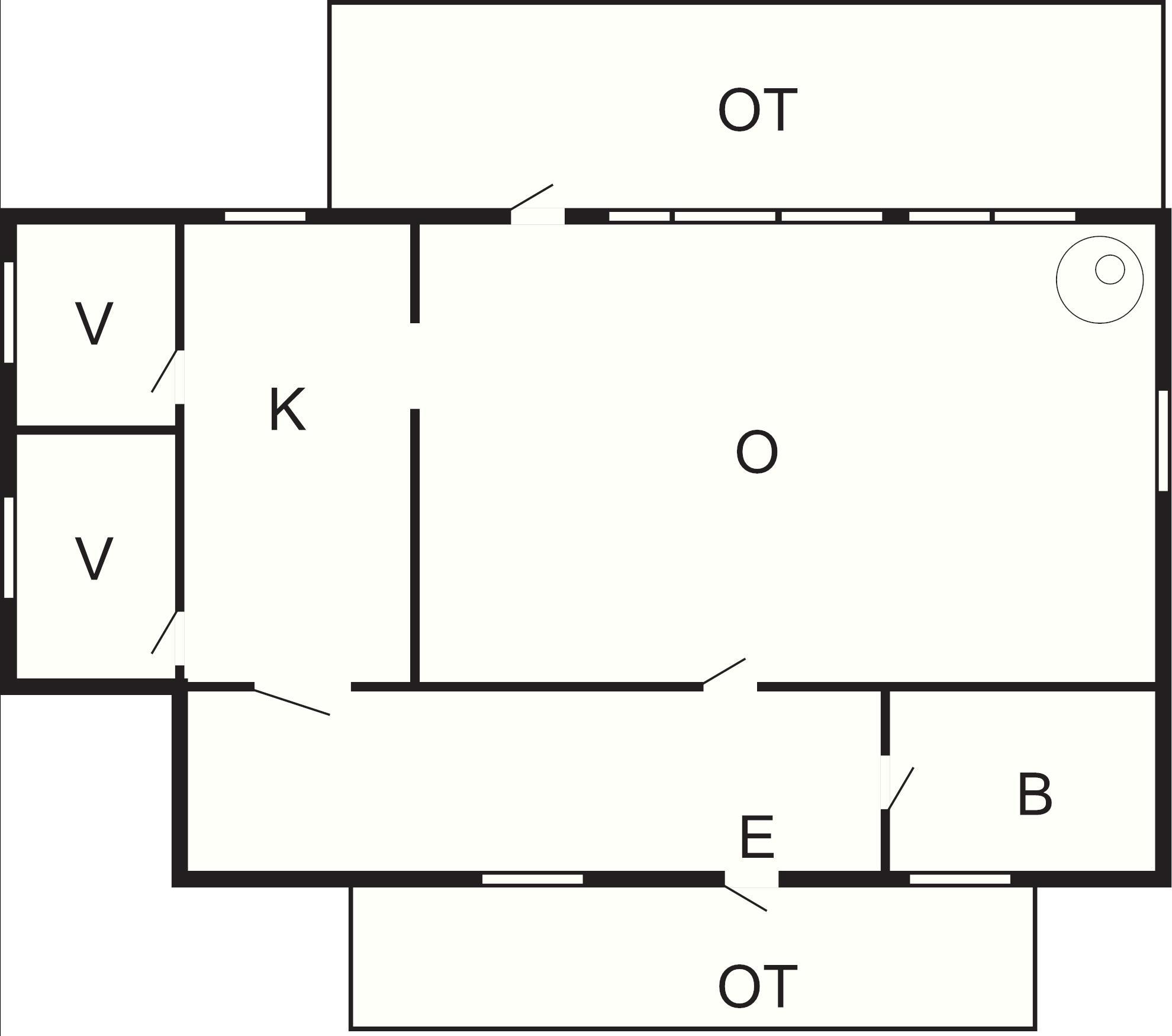 Stugan har två identiska sovrum med 4 sköna sängar, nyrenoverat badrum med dusch och stort vardagsrum med matplats. Mellan sovrummen och vardagsrummet ligger köket med en ytterligare matplats. En altan med tak, utemöbler och grill finns att tillgå.