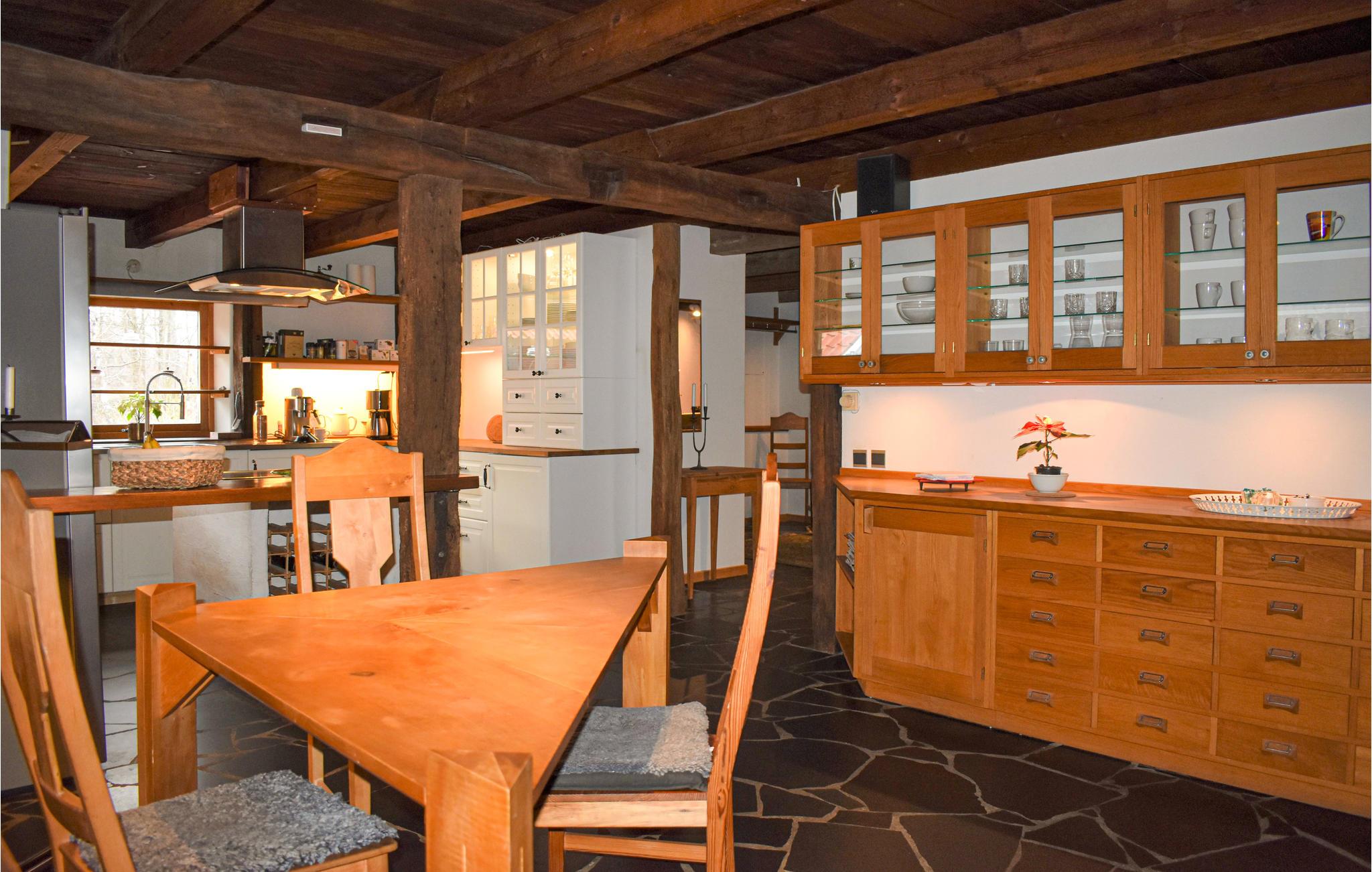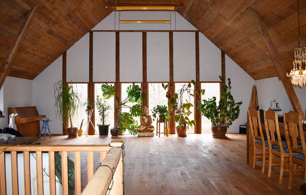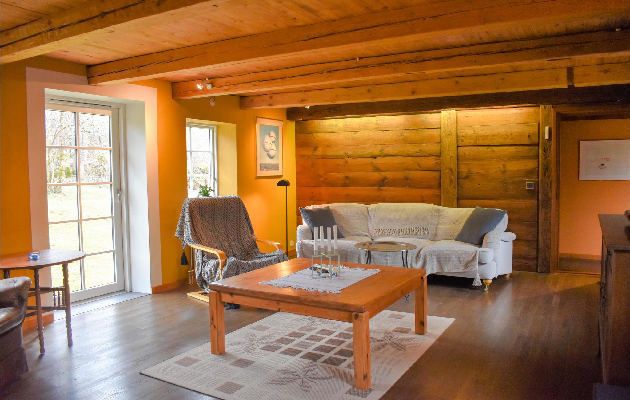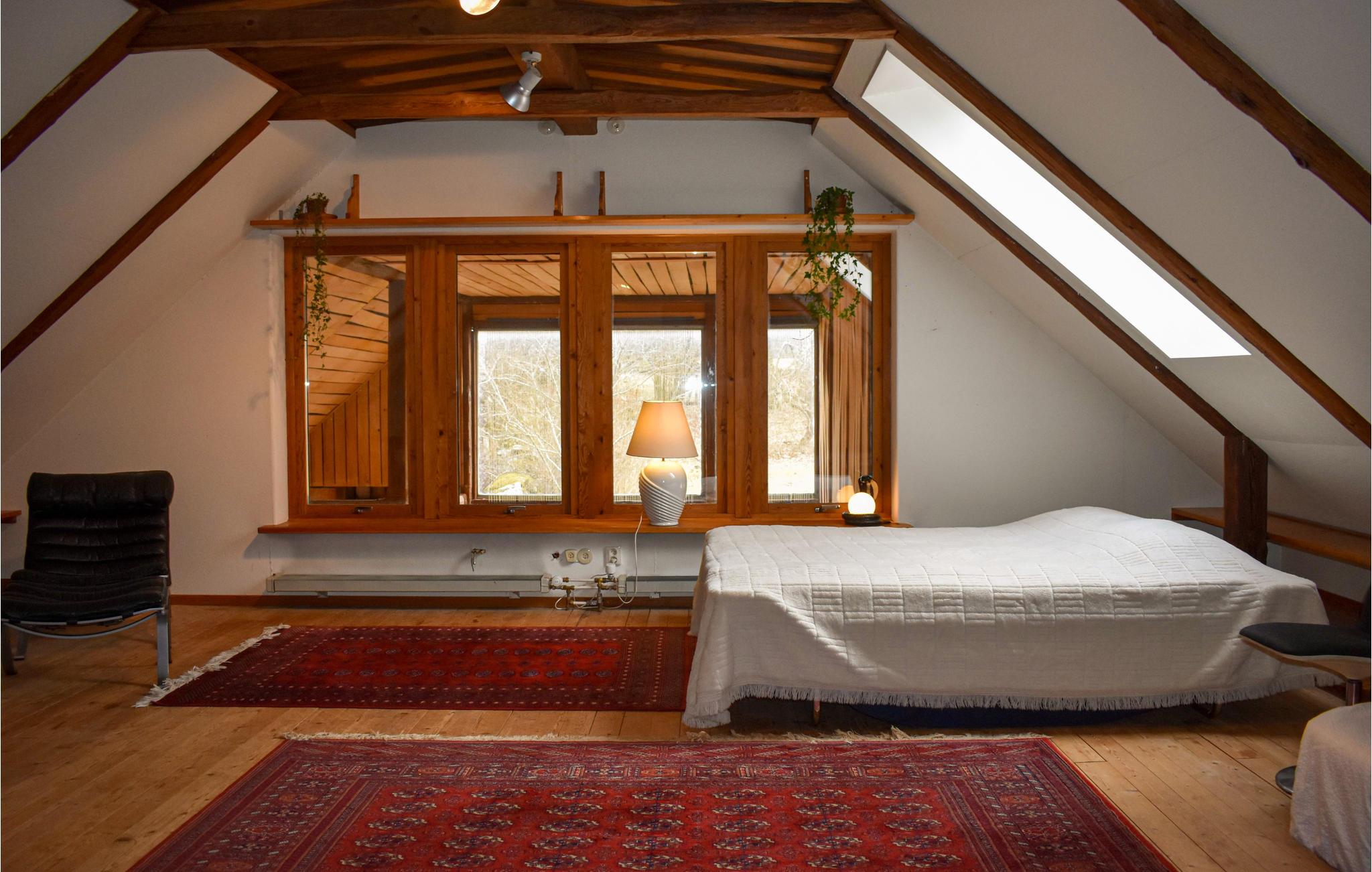 Her bor du midt i vakker natur med mange muligheter for utflukter til fots eller på sykkel. De umiddelbare omgivelsene er ganske ville, så du kan ofte ønske hjort velkommen i hagen. Huset tilbyr deg et eksepsjonelt vakkert interiør med mye tre og nydelige detaljer. Takket være en beamer med storskjerm er det også mulig med en hjemmekinokveld.