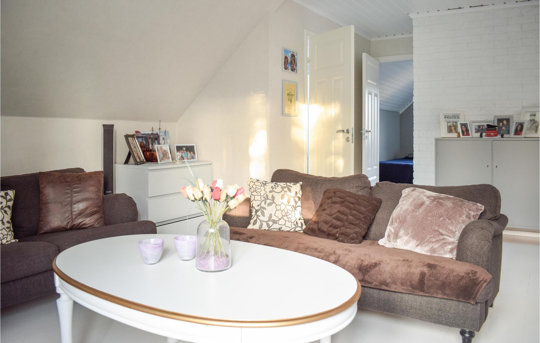 Det ønsker deg og din utvidede familie velkommen til dette vakre og romslige feriehuset. I de store rommene kan dere spre dere og tilbringe tid sammen med å leke, lage mat eller slappe av. Om natten kan du slappe av i soverommene og nyte privatlivet ditt. Om morgenen kan du stå på den vakre terrassen med en dampende kopp kaffe og se ut i hagen og lytte til fuglene som kvitrer. Om kveldene kan du tilberede en deilig grillmat her og nyte middagen med utsikt. Barna dine kan bevege seg fritt i den private hagen og leke på plenen.