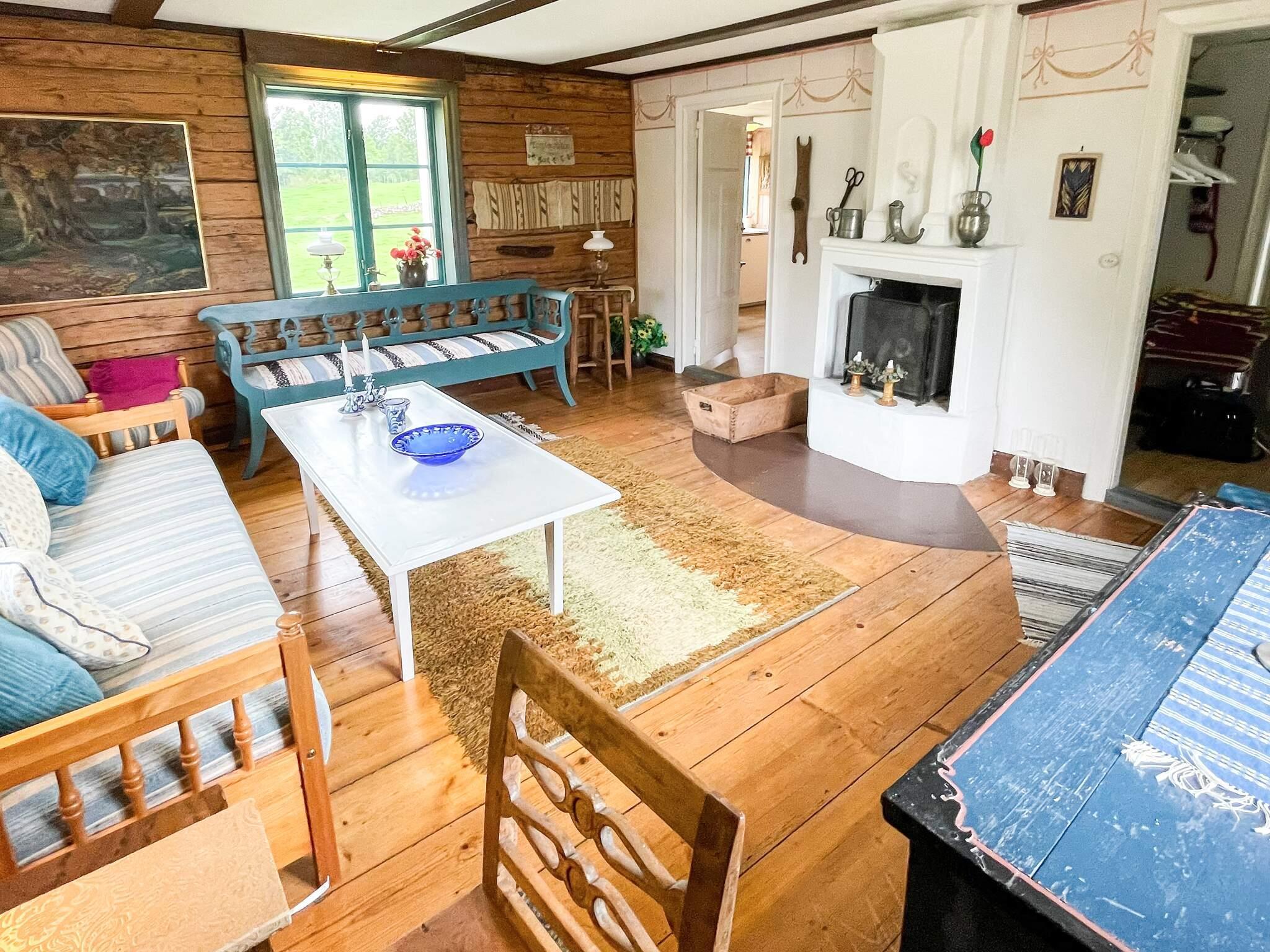 Husets inredning känns typisk Svensk med inspiration från Carl Larssons målningar och här är mycket trivsamt. Ni har ett stort vackert sällskapsrum med soffgrupp. I köket finns matplats samt det mesta ni kan komma att behöva.
