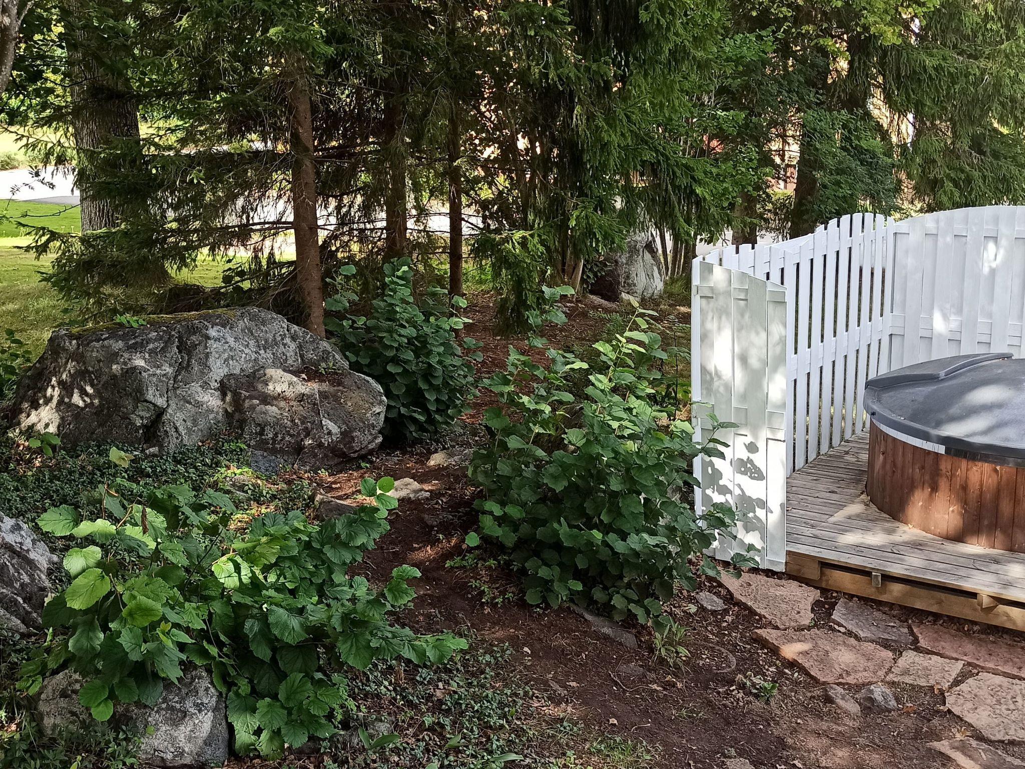 The outdoor area of the house invites you to linger and relax. An open terrace with garden furniture and an electric barbecue are available for cosy hours outdoors. The detached property is surrounded by large boulders that invite you to climb and offers a private garden as well as parking directly at the house. You can experience adventures on the nearby lake in the house's own canoe, which is available to you free of charge.