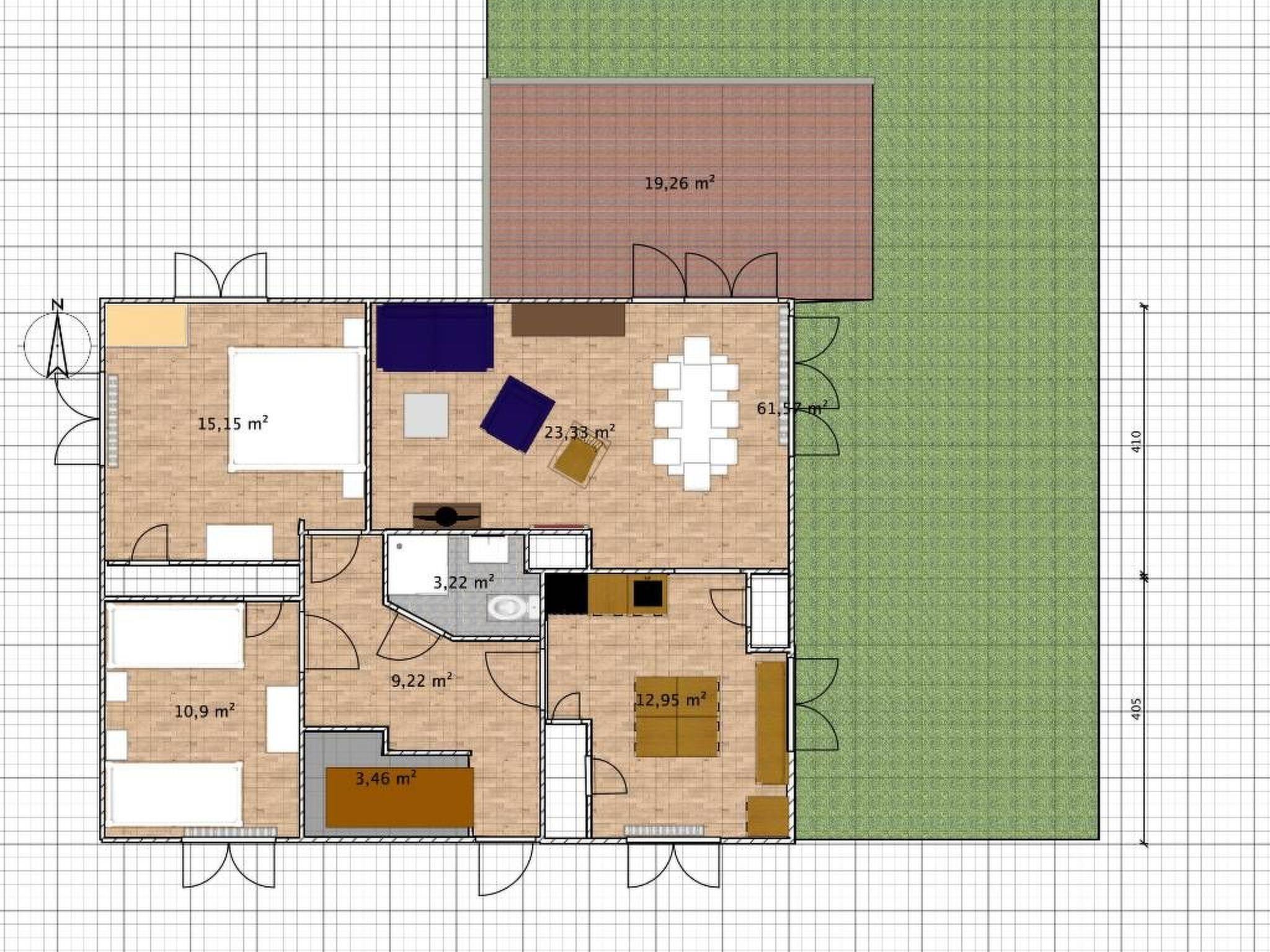 Inside the house, there is enough space for up to 8 people and a small child to enjoy a cosy retreat. The holiday home has four lovingly furnished bedrooms, a fully equipped kitchen that invites you to cook together, as well as a dining area with a view of the green garden. An extra bed for small children is available as well as a high chair. The central heating, a heat pump and a romantic fireplace in the living room provide cosy warmth on cooler days.