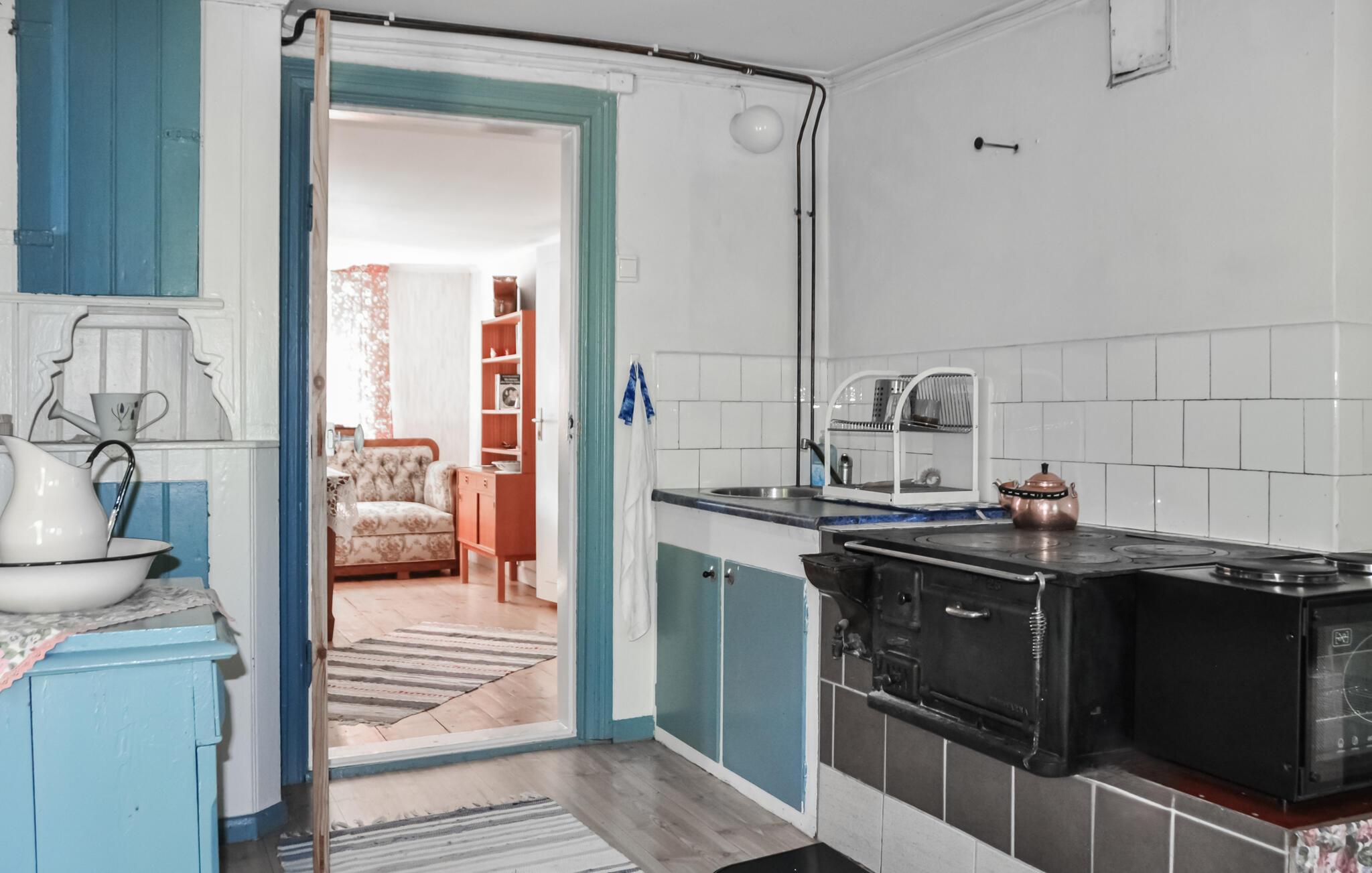 Dette koselige feriehuset lover deg en unik feriefølelse midt i den vakre naturen. Interiøret er kjærlig innredet og utstråler en varm atmosfære som er perfekt for avslappende dager. Her vil du oppleve et tilfluktssted fullt av hygge og nærhet til naturen. Det sjarmerende huset, omgitt av en stor, hyggelig hage, inviterer deg til å slappe av.