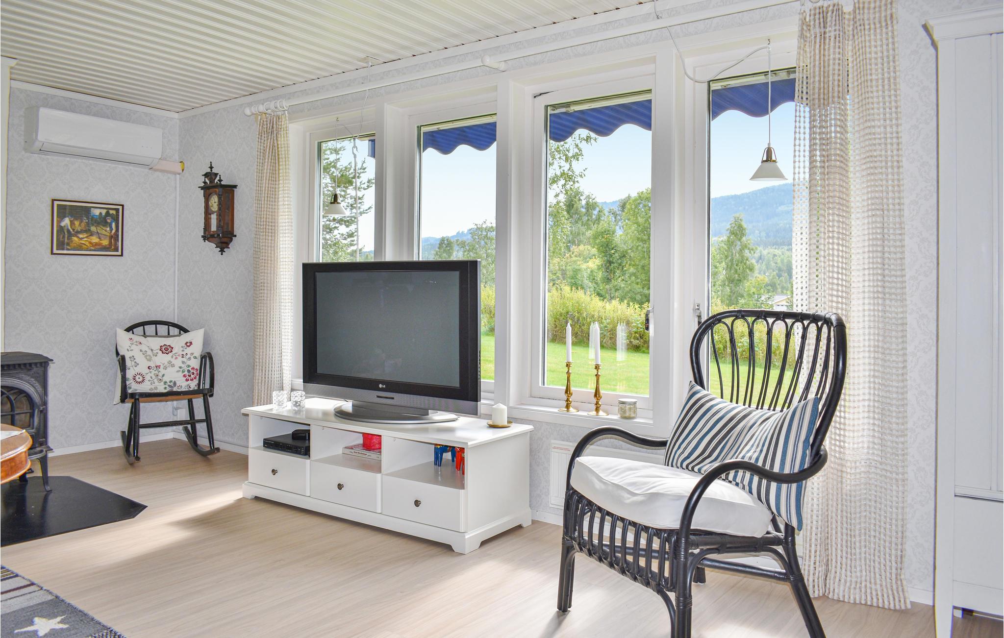 Fra den store tomten eller fra de to nydelige terrassene kan du nyte den vakre utsikten over landskapet. Godt bade- og fiskevann i nærheten. Nærmeste badeplass ligger ca. 2 km unna. Boligen har 2 soverom, hvorav ett med dobbeltseng og ett med køyeseng. Stuen og kjøkkenet er designet med en åpen planløsning. For underholdning er det wifi, en skjerm og Chromecast. Det er også et bad med toalett, dusj og vaskemaskin.