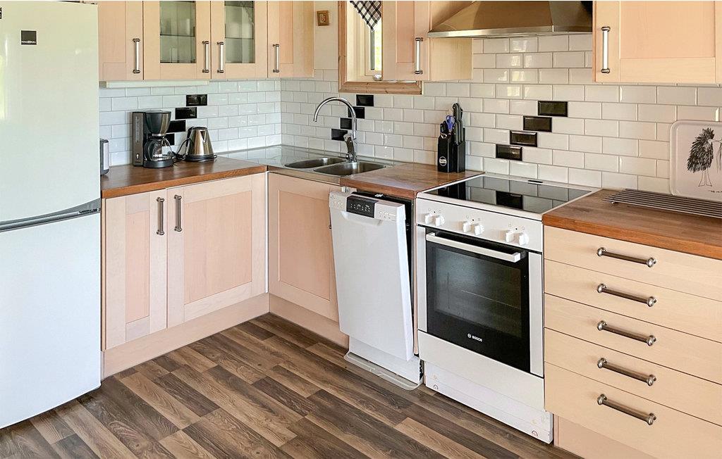Her kan du tilbringe en avslappende og fredelig ferie sammen med dine nærmeste i den vakre småländske naturen. Det sjarmerende huset i typisk svensk stil er det perfekte stedet å nyte familietiden og flykte fra den hektiske hverdagen. Kom sammen på kjøkkenet om morgenen, kok kaffe og lag en deilig frokost. Etterpå kan dere diskutere planene for dagen som ligger foran dere ved frokostbordet. Når dere kommer hjem om kvelden, kan dere sette dere godt til rette i sofaene i stuen med knitrende peis og spille brettspill, og på den overbygde terrassen kan dere ikke bare nyte måltidene utendørs, men også den vakre utsikten over innsjøen.