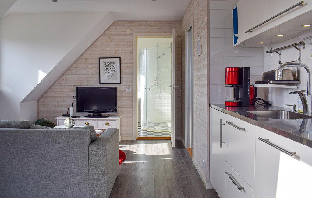 Denne leiligheten er perfekt for en avslappende pause fra hverdagen. Et moderne treutseende, en komfortabel sofagruppe og et praktisk kjøkken skaper en atmosfære der du raskt vil slappe av. Enten du lytter til en interessant podkast, ser på den nyeste serien eller tilbereder deilige måltider, her kan du selv bestemme tempoet på dagen.