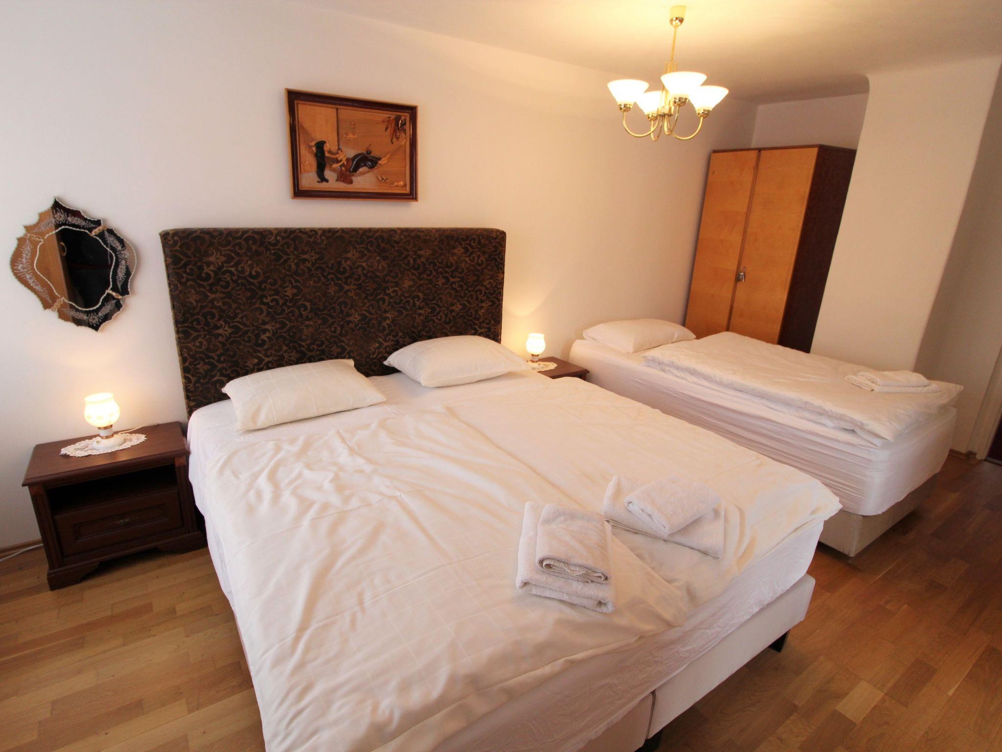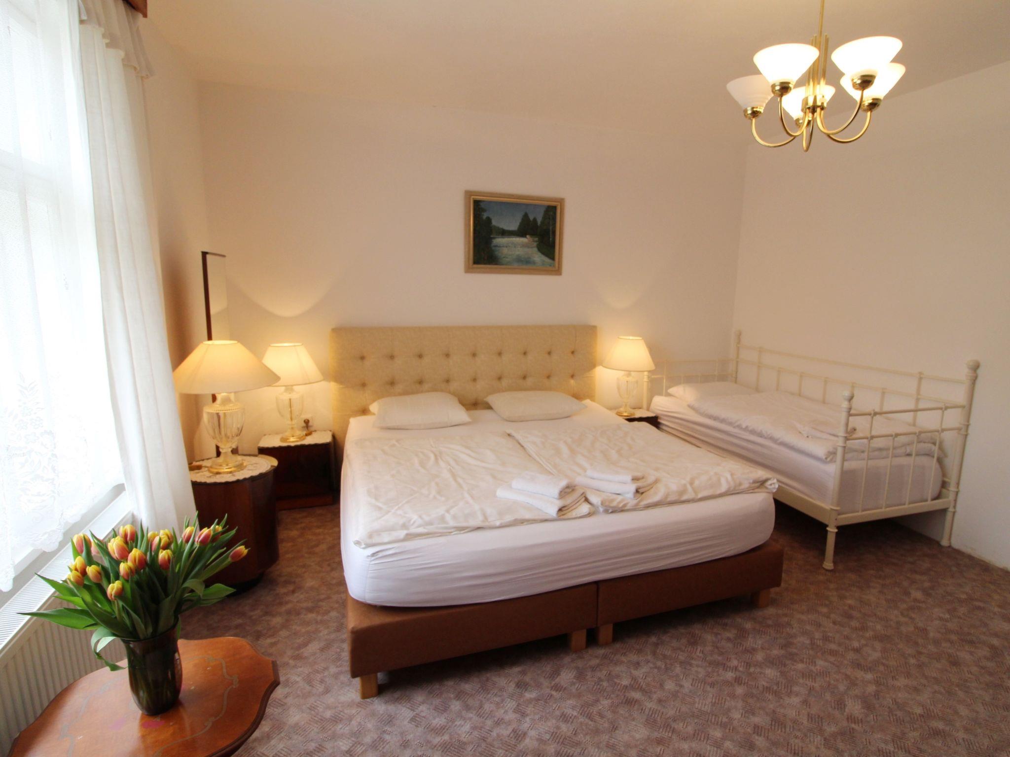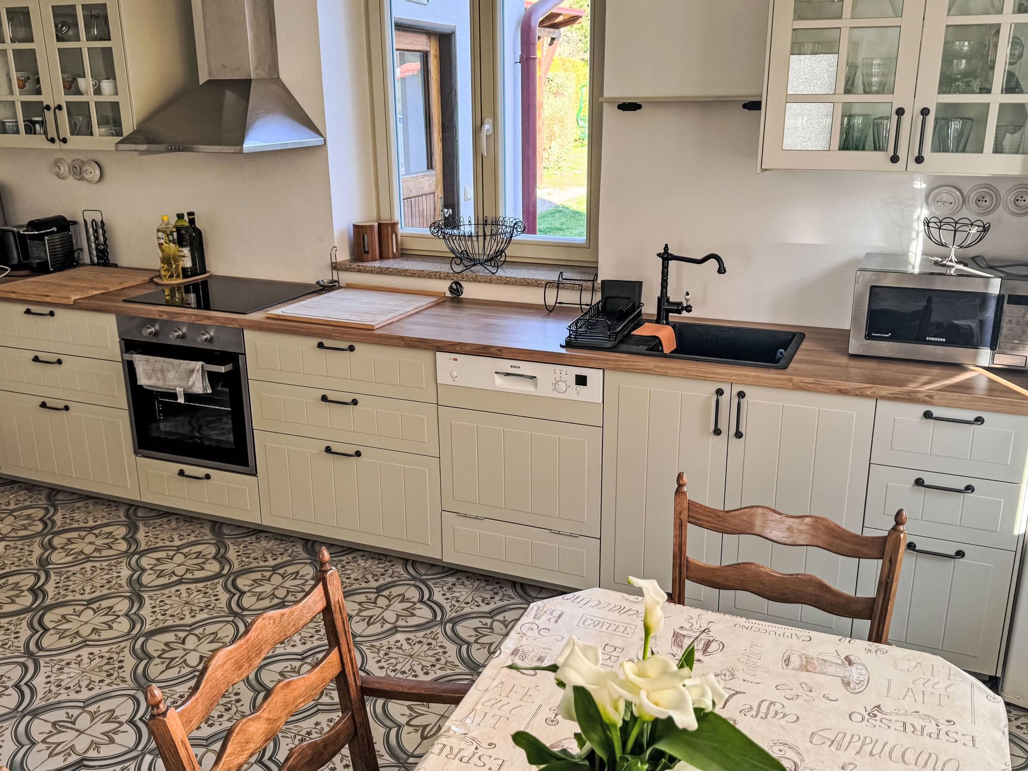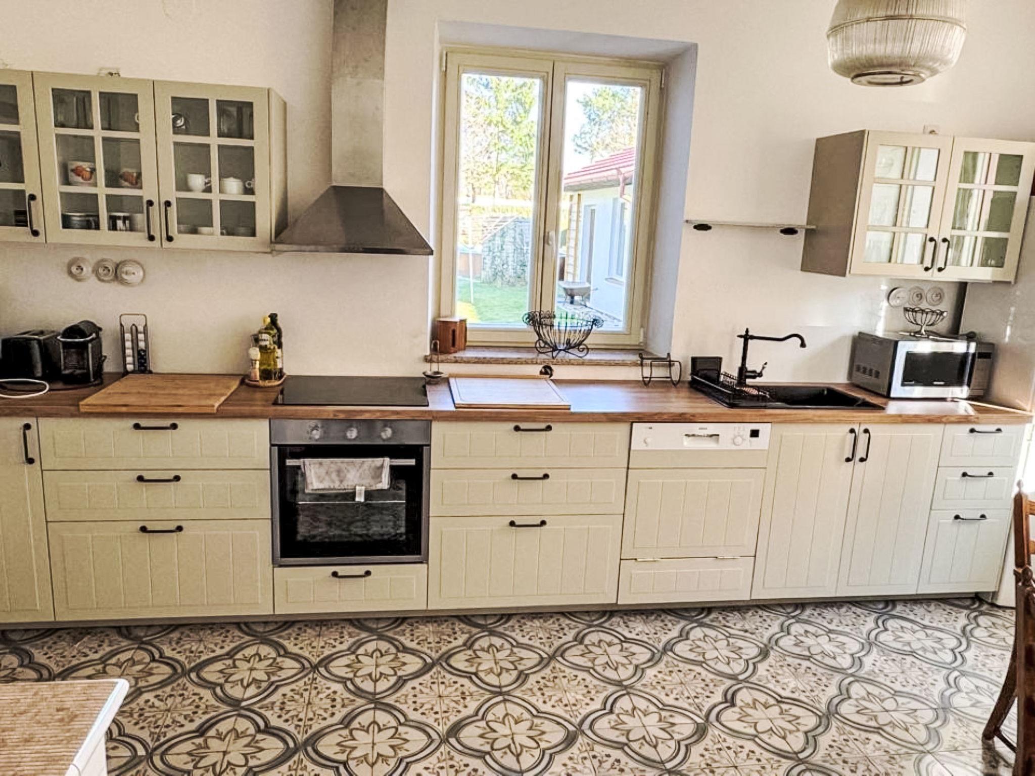 5-room house 200 m2 on 2 levels. Spacious, fully renovated in 2018, comfortable and beautiful furnishings: living room with TV (flat screen). 1 room with 1 bed and 1 double bed. Kitchen (oven, dishwasher, 4 ceramic glass hob hotplates, kettle, microwave, electric coffee machine) with tiled stove. Shower/WC, sep. WC. Gas heating. Upper floor: living room with sloping ceilings with TV (flat screen). Walk-through room with 1 bed and 1 double bed. 1 room with 2 beds. 1 room with sloping ceilings with 1 bed and 1 double bed. Shower/WC. Patio. Terrace furniture, barbecue, deck chairs. View of the garden. Facilities: washing machine, baby cot. Internet (WiFi, free). Please note: suitable for families. Non-smoking house. Maximum 2 pets/ dogs allowed.
