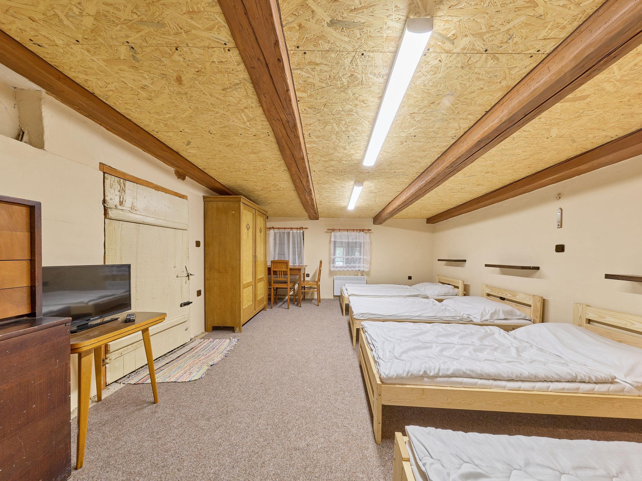 "U Tety Bystré", 3-room cottage. Living/dining room with 1 sofabed, dining table, kitchen corner and wood-burning stove. 1 room with 4 beds. 1 room with 2 beds. Kitchenette (oven, dishwasher, kettle, microwave, electric coffee machine). Shower/WC. Electric heating. Terrace furniture, barbecue. Facilities: washing machine, telephone. Internet (WiFi). Please note: non-smoking house. Maximum 1 pet/ dog allowed.