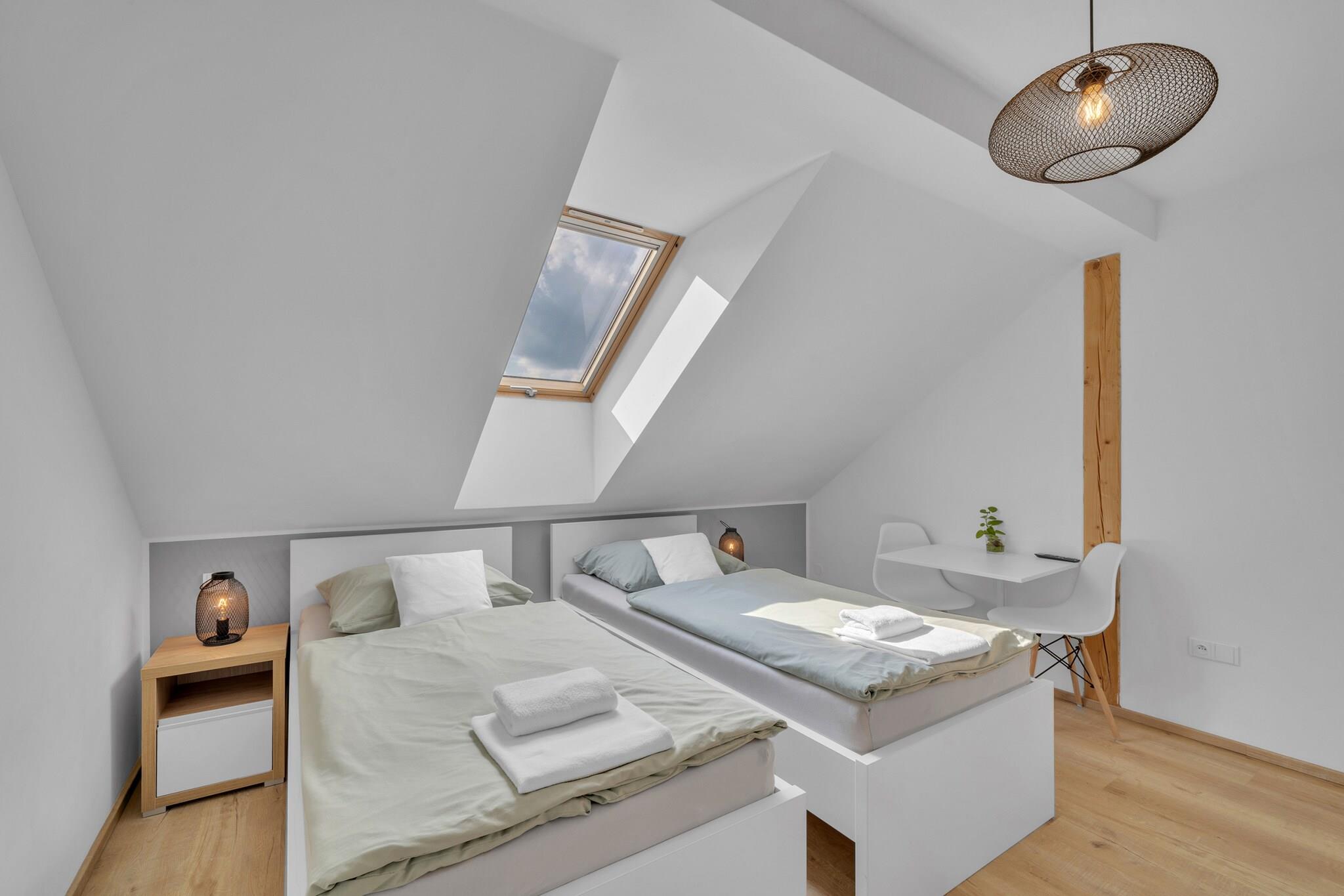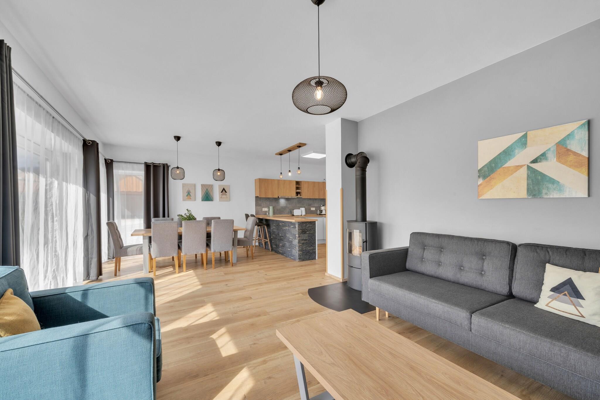 Denne vakre moderne villaen er det perfekte tilfluktsstedet for grupper på opptil 8 personer, og tilbyr fantastisk utsikt over de omkringliggende skogene og ligger ved foten av populære skiområder. Enten du er her for en vinterferie eller en avslappende sommerferie, er det god plass for alle å slappe av. Nyt de rolige omgivelsene fra hagen eller unn deg en avslappende badstue etter en dag med utendørs eventyr. Villaen har en ideell beliggenhet for å utforske regionen. Janske Lazne ligger bare 6 km unna, mens Trutnov ligger 20 km unna. Utforsk naturskjønne turstier i området, inkludert Krkonose Tree Top Walk, som ligger bare 3 km unna, eller takle Snezka-fjellet for en uforglemmelig utsikt. Om vinteren ligger skistedet Cerny Dul kun 500 meter unna, og skistedet Cerna Hora ligger 5 km unna, noe som gjør det til et perfekt reisemål for ski- og snowboardentusiaster. Med 3 komfortable soverom og god stue, sikrer denne villaen at alle har plass til å slappe av. Den romslige stuen har en sovesofa, og villaen er utstyrt med flere bad, hver med dusj, samt flere toaletter for enkelhets skyld. Det fullt utstyrte kjøkkenet er perfekt for å tilberede måltider for gruppen, med kjøleskap, fryser, stekeovn, mikrobølgeovn, oppvaskmaskin og alt nødvendig kjøkkenutstyr. For utendørs måltider, dra nytte av grillen, og nyt kveldssolen på terrassen mens du nyter den vakre utsikten.