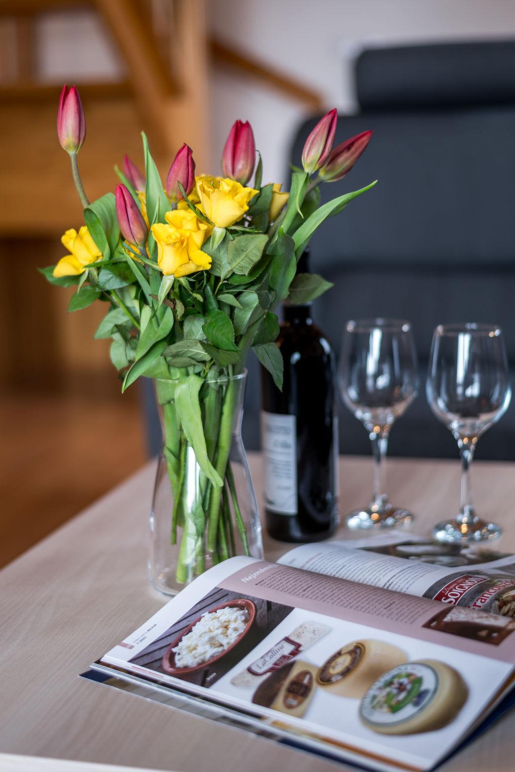 4-room house 100 m2 on 2 levels. Bright, comfortable and cosy furnishings: open living room with satellite TV. Exit to the terrace. Kitchen (oven, dishwasher, 4 induction hot plates, kettle, microwave, freezer, electric coffee machine) with dining table. Sep. WC. Upper floor: 3 rooms, each room with 2 beds. Bath/WC. Large terrace 19 m2. Terrace furniture, barbecue (portable). Facilities: washing machine, baby cot. Internet (WiFi, free). Please note: suitable for families. Non-smoking house. 1 small pet/ dog allowed.