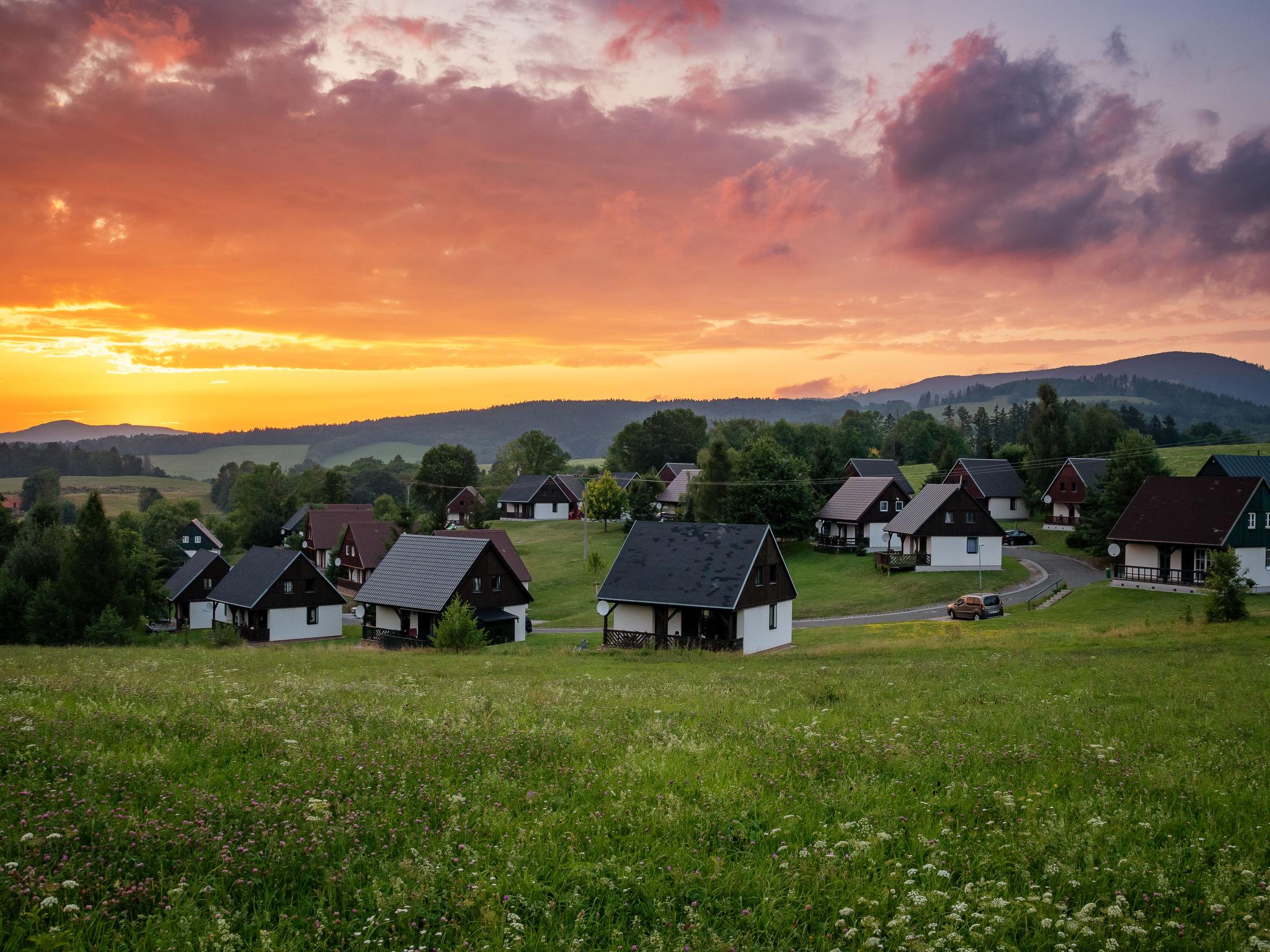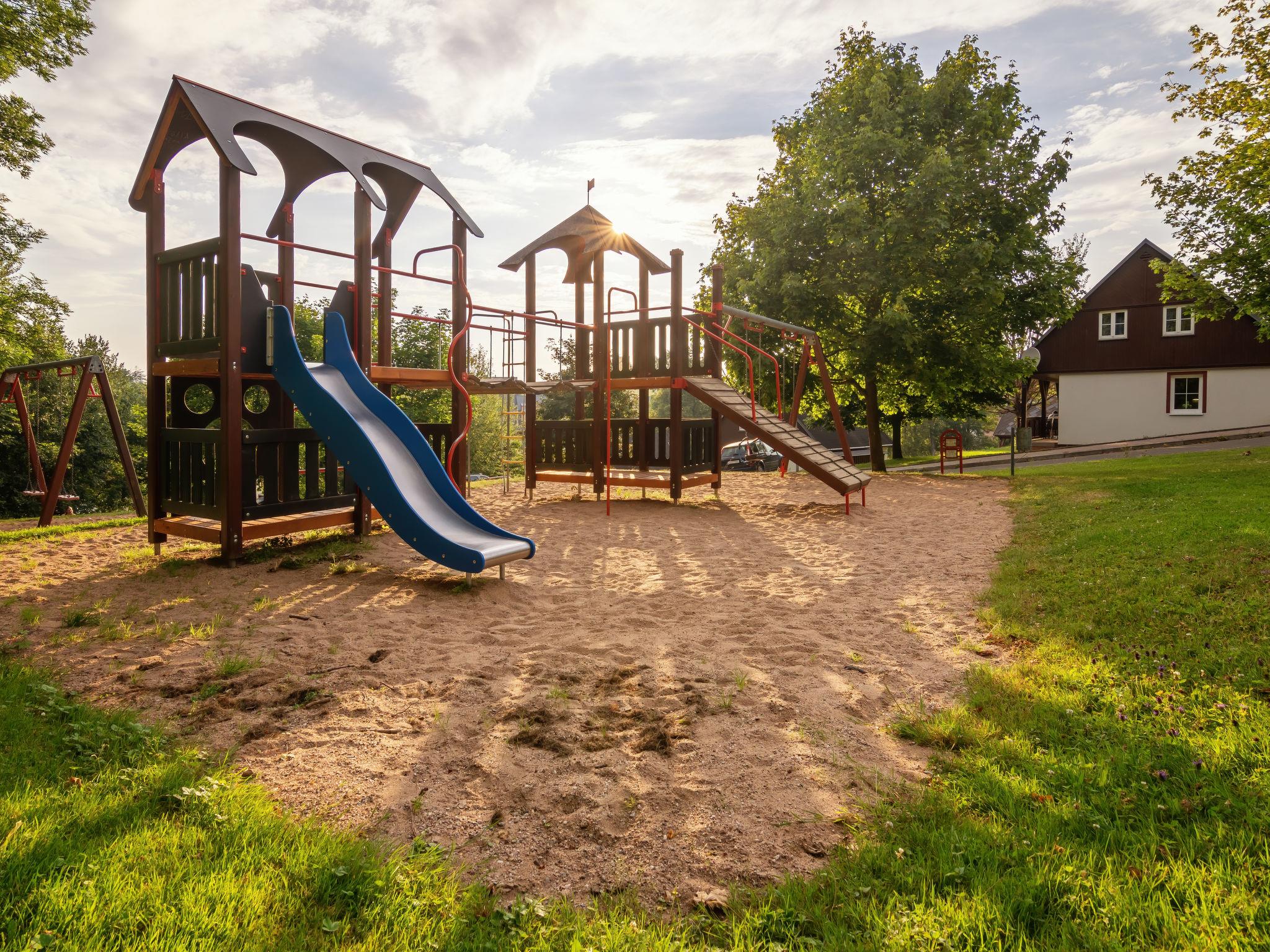 Cistá v Krkonoších 2 km from Cerný Dul: Child friendly, beautiful, comfortable holiday village "Holiday Hill 55", 500 m a.s.l., surrounded by trees and meadows. 43 houses in the resort. On the outskirts, in a secluded, quiet, sunny position, 1.5 km from the lake, 3 km from the skiing area, in the countryside. For shared use: property 6 ha, meadow, swimming pool heated (9 x 4 m, depth 120 cm, seasonal availability: 15.May. - 30.Sep. pool opening hours: 09:00-20:00). Shower/WC in the pool area, table tennis, children's playground (swing, sandbox). In the complex: reception, central heating system. Parking (for 2 cars) at the house. Shop 2.5 km, grocery 2.5 km, supermarket 7.5 km, restaurant 1.6 km, pub garden 400 m, bus stop "Cerný Dul, Cistá-pošta" 400 m, grass beach 1.5 km (small), indoor swimming pool 19 km. Golf course (18 hole) 14 km, tennis 2.5 km, sports centre 2.5 km, walking paths from the house 100 m, cycle lane, ski lift 3 km, chair lift 3 km, slopes 3 km, ski school 3 km, children's ski school 3 km, sled run 7 km, cross country ski track 100 m. Nearby attractions: Janské Lázne Spa 9 km, Vrchlabí 10 km, Aquapark Trutnov 25 km, Zoo Safari Dvur Králové 29 km, Bozkovské jeskyne 37 km, Adršpašské skály 44 km. Well-known ski regions can easily be reached: Cerný Dul 3 km, Herlíkovice 15 km, Pec pod Snežkou 22 km. Well-known lakes can easily be reached: Cistá 1.5 km, Vrchlabí 9 km. Hiking paths: Snežka 25 km.