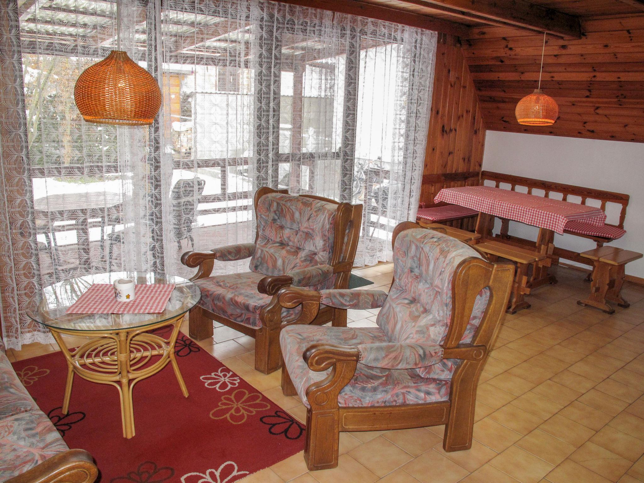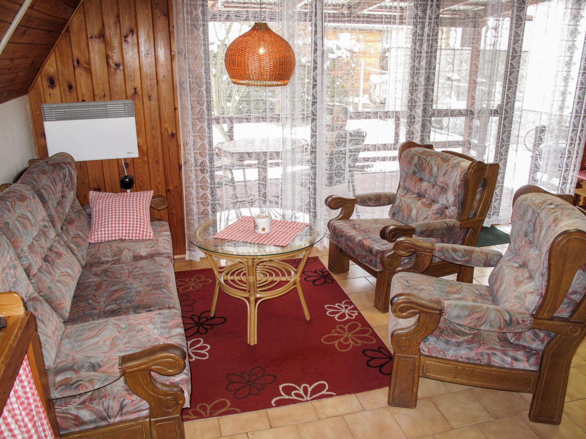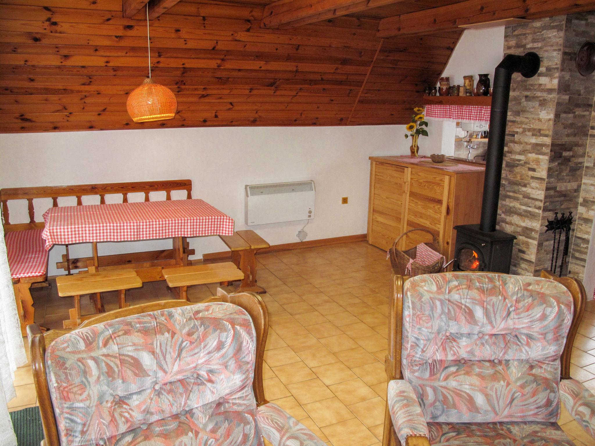 3-room chalet 60 m2. Cosy furnishings: living room with 1 sofabed, Scandinavian wood stove, dining table and satellite TV (flat screen). Exit to the garden, to the terrace. Kitchen (4 hot plates, oven, toaster, kettle, microwave, freezer, grill). Shower/WC. Electric heating, wood heating. Upper floor: (steep stair), 1 room with 1 double bed. 1 room with 2 beds. Terrace 15 m2. Terrace furniture, deck chairs. Facilities: Internet (WiFi, free). Suitable for families.