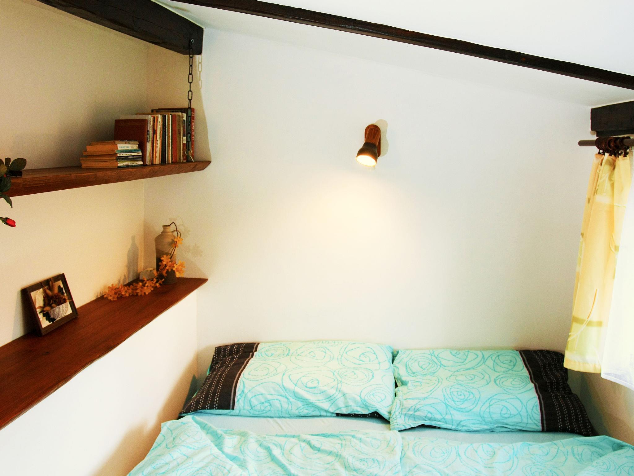 3-room house 60 m2 on 2 levels. Beautiful and rustic furnishings: living/dining room with dining table and satellite TV. Exit to the terrace. 1 room with 1 double bed. Open kitchen (2 hot plates, toaster, kettle, microwave, electric coffee machine). Shower/WC. Wood heating. Upper floor: (steep stair), 1 room with sloping ceilings with 1 bed and 1 double bed (150 cm). Terrace. Terrace furniture, barbecue. Facilities: children's high chair. Internet (WiFi, free). Please note: suitable for families. Non-smokers only. Maximum 1 small pet/ dog allowed.
