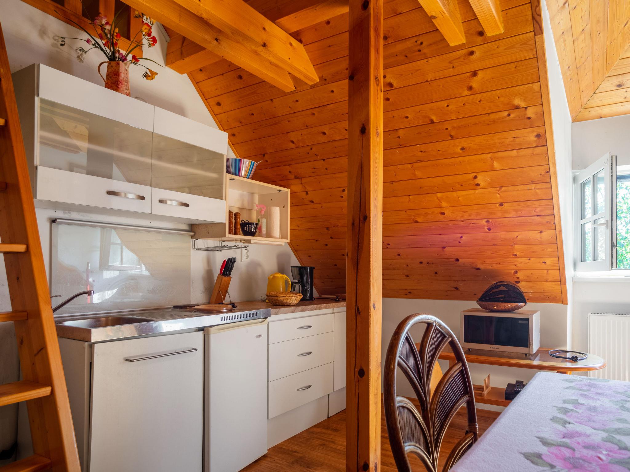 4-room semi-detached house 100 m2 on 3 levels. Renovated in 2006, beautiful and stylish furnishings: living/dining room with dining table, satellite TV and wood-burning stove. Upper floor: living/sleeping room with sloping ceilings with 1 double bed, dining table, satellite TV and air conditioning. Living/sleeping room with 1 double bed, dining table and satellite TV. 1 room with 2 beds and air conditioning. Kitchenette (2 hot plates, toaster, kettle, microwave, electric coffee machine). 2 showers/WC. Electric heating. Top floor: (ladder) gallery with sloping ceilings with 2 sleeping facilities (200 cm, length 240 cm). (ladder) gallery with 2 sleeping facilities (200 cm, length 240 cm). Kitchenette (2 hot plates, toaster, kettle, microwave, electric coffee machine). Patio. Barbecue, box-room. Facilities: washing machine, children's high chair, baby cot. Internet (WiFi, free). Please note: suitable for families. Non-smokers only. Private entrance. Instead of an enclosed bedroom, some sleeping areas are located in an open-plan area (gallery, alcove, etc.).
