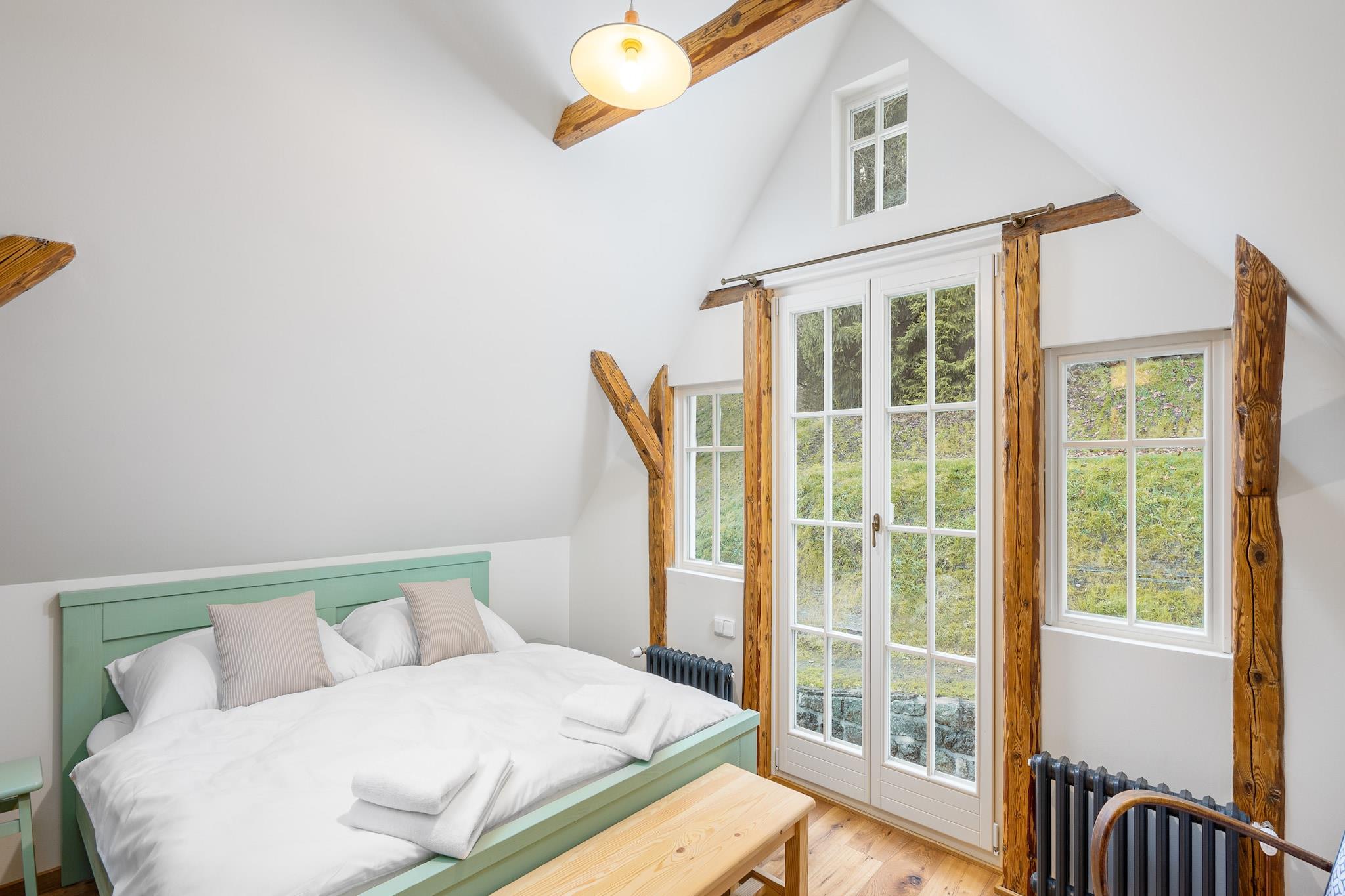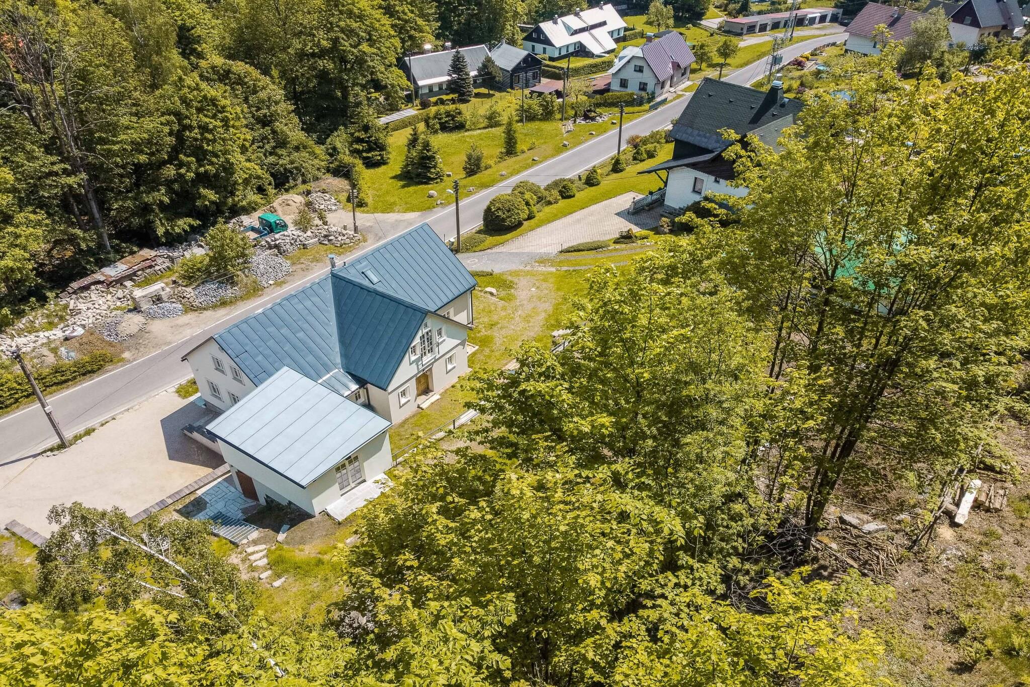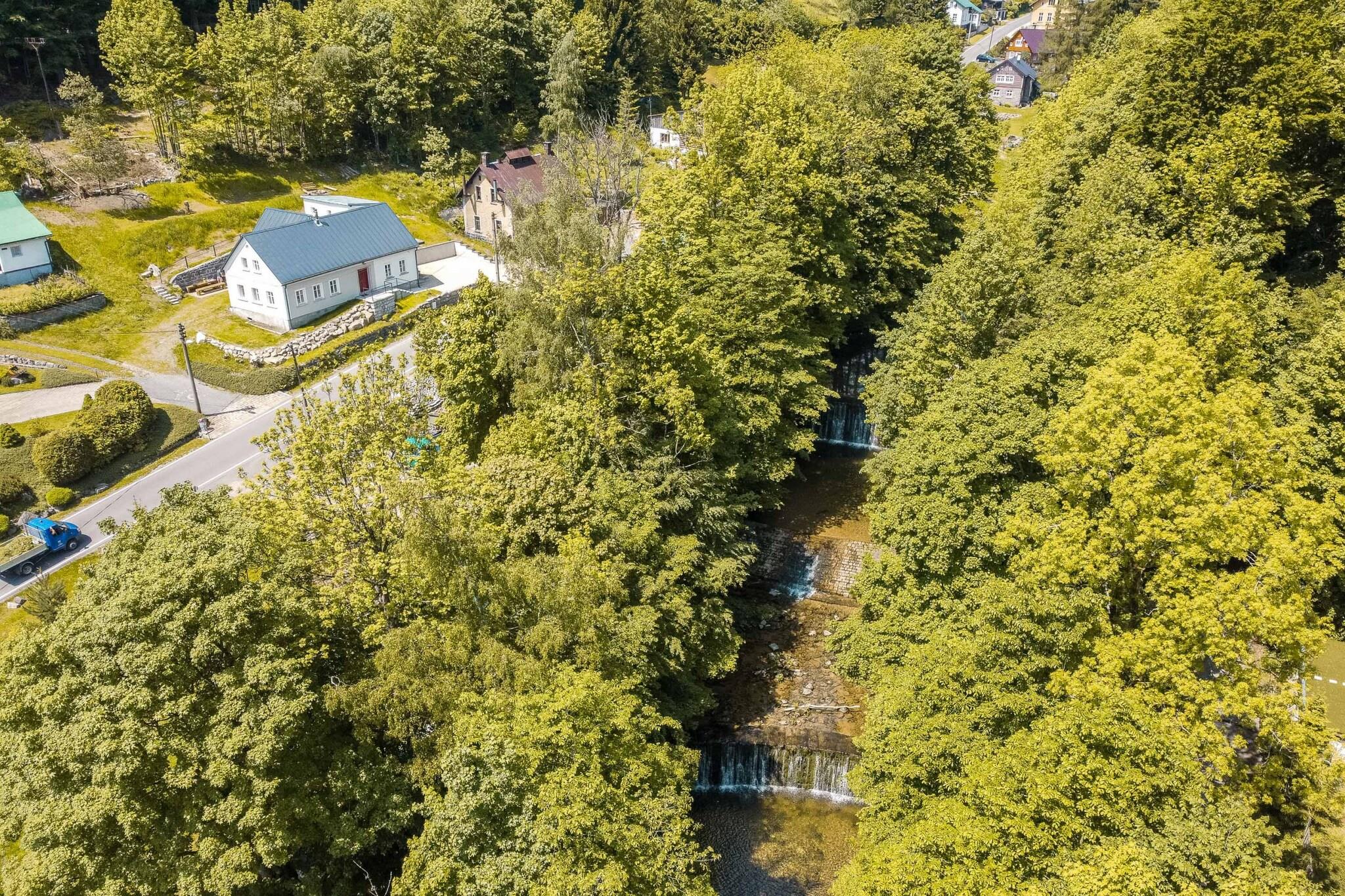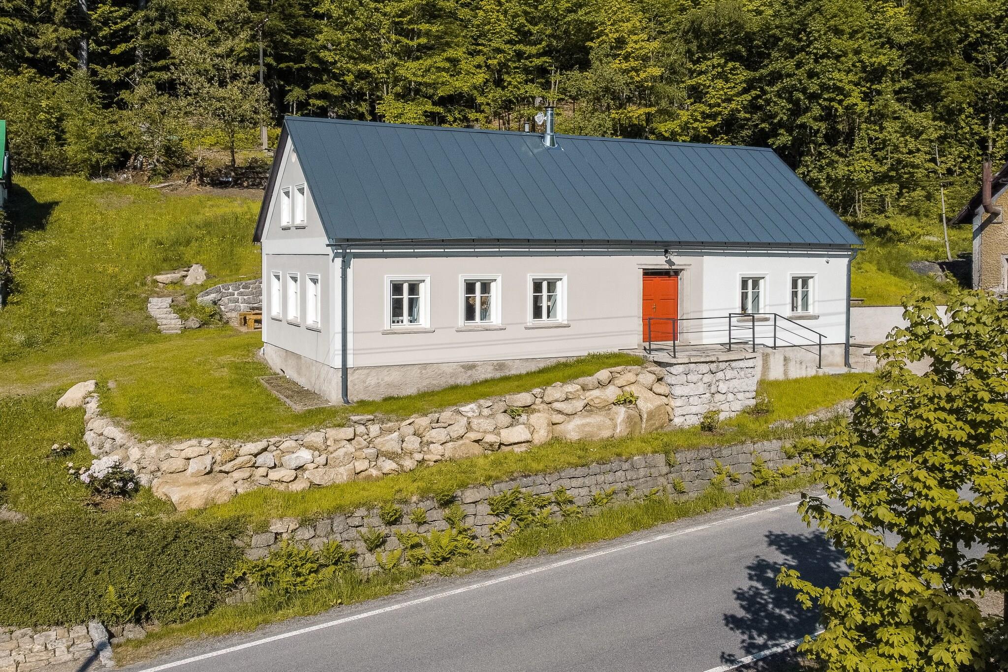 Denne sjarmerende tradisjonelle hytta, som ligger i hjertet av Jizera-fjellene, er perfekt for familier, vennegrupper og sportsentusiaster. Hytta har plass til opptil 8 voksne og 6 barn, med rom med dobbeltsenger og enkeltsenger, ideelt for familier eller små grupper. Nyt et fredelig tilfluktssted omgitt av natur, uten distraksjoner fra en TV, men med pålitelig WiFi. For ekstra luksus tilbyr vinkjelleren et utvalg av økologiske tsjekkiske viner og regionale produkter. Området rundt er perfekt for utendørsopplevelser. Hytta ligger kun 2 km fra Jizerská magistrála, en populær langrennsrute, og kun 4 km fra skistedet Tanvaldský Špicák. I de varmere månedene kan gjestene nyte tur- og sykkelstier, med Protržená-demningen 5 km unna og den pittoreske landsbyen Jizerka 10 km unna. Hytta er omgitt av en terrassehage som blander seg sømløst med skogen, og en bekk renner foran, perfekt for en forfriskende dukkert. Innvendig har hytta et luksuriøst stuekjøkken, et lekeområde for barn med brettspill og leker, og et velværeområde med en finsk badstue for 8 personer. Avslappende alternativer inkluderer også en massasjetjeneste mot en ekstra avgift. For de med elektriske kjøretøy, er det en 11kW lader tilgjengelig mot en avgift. I tillegg til hovedhuset er en stilig dupleksleilighet for to personer tilgjengelig i lavsesongen, med eget kjøkken og bad, ideelt for par som søker privatliv og komfort.