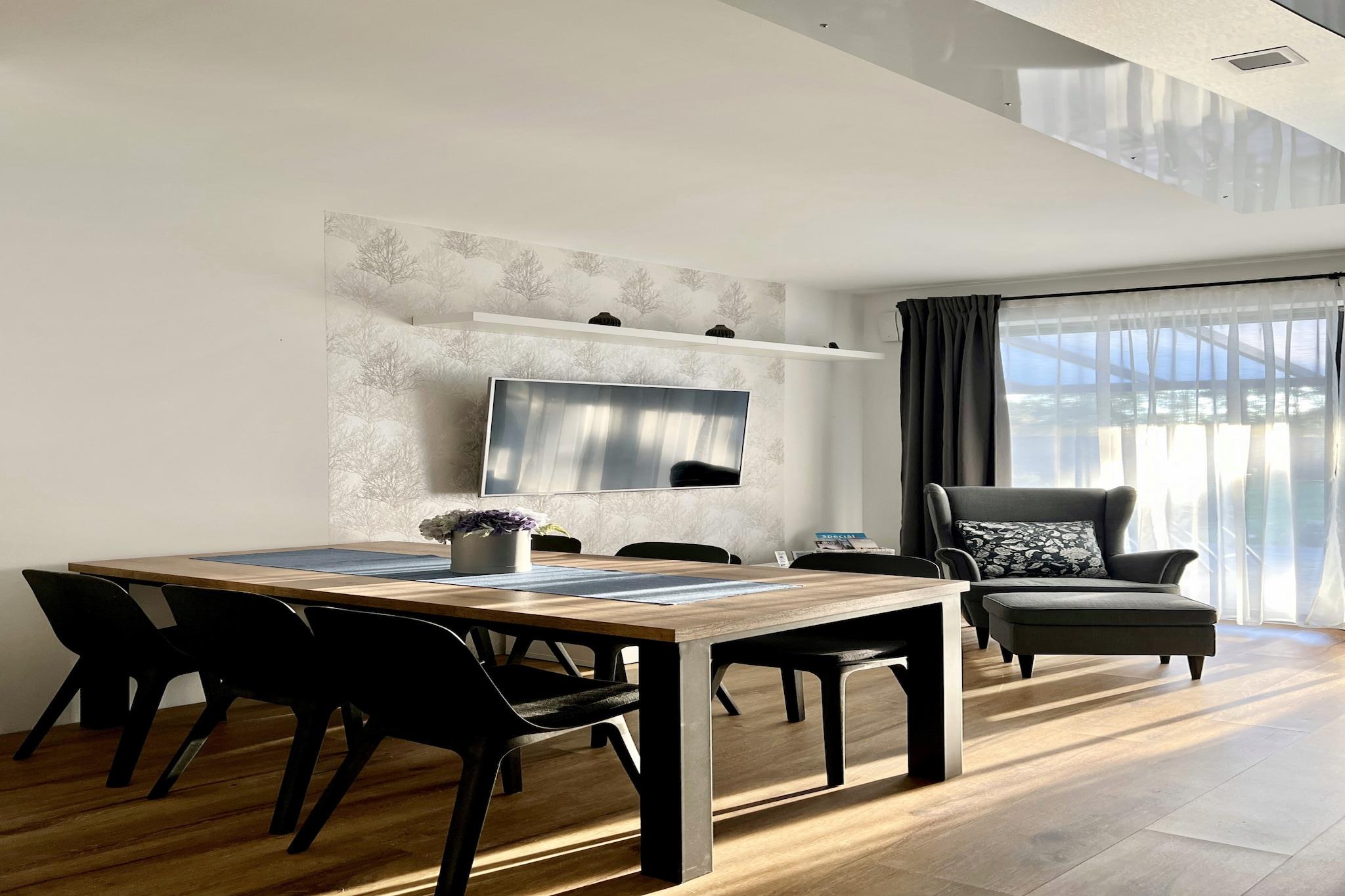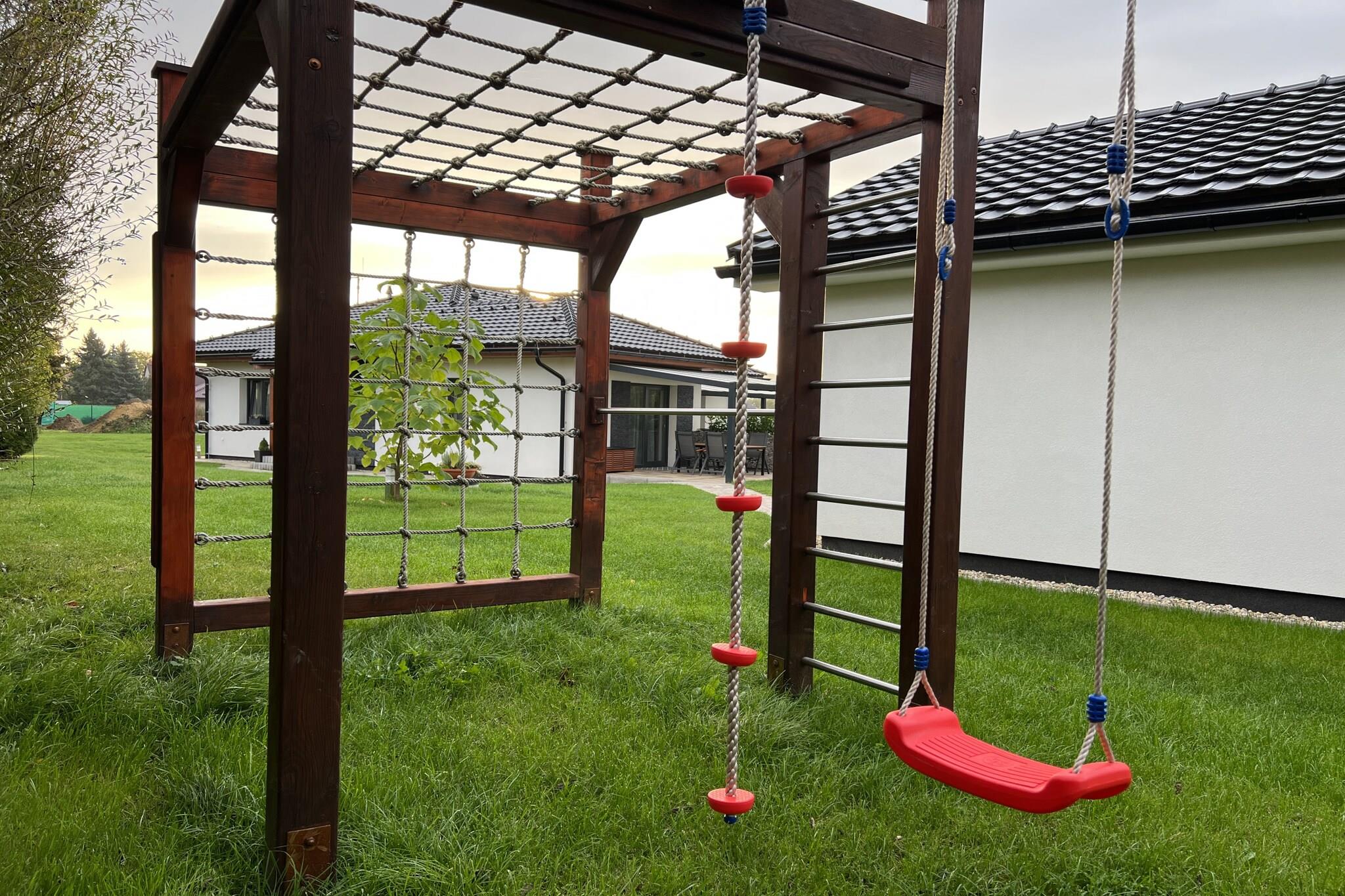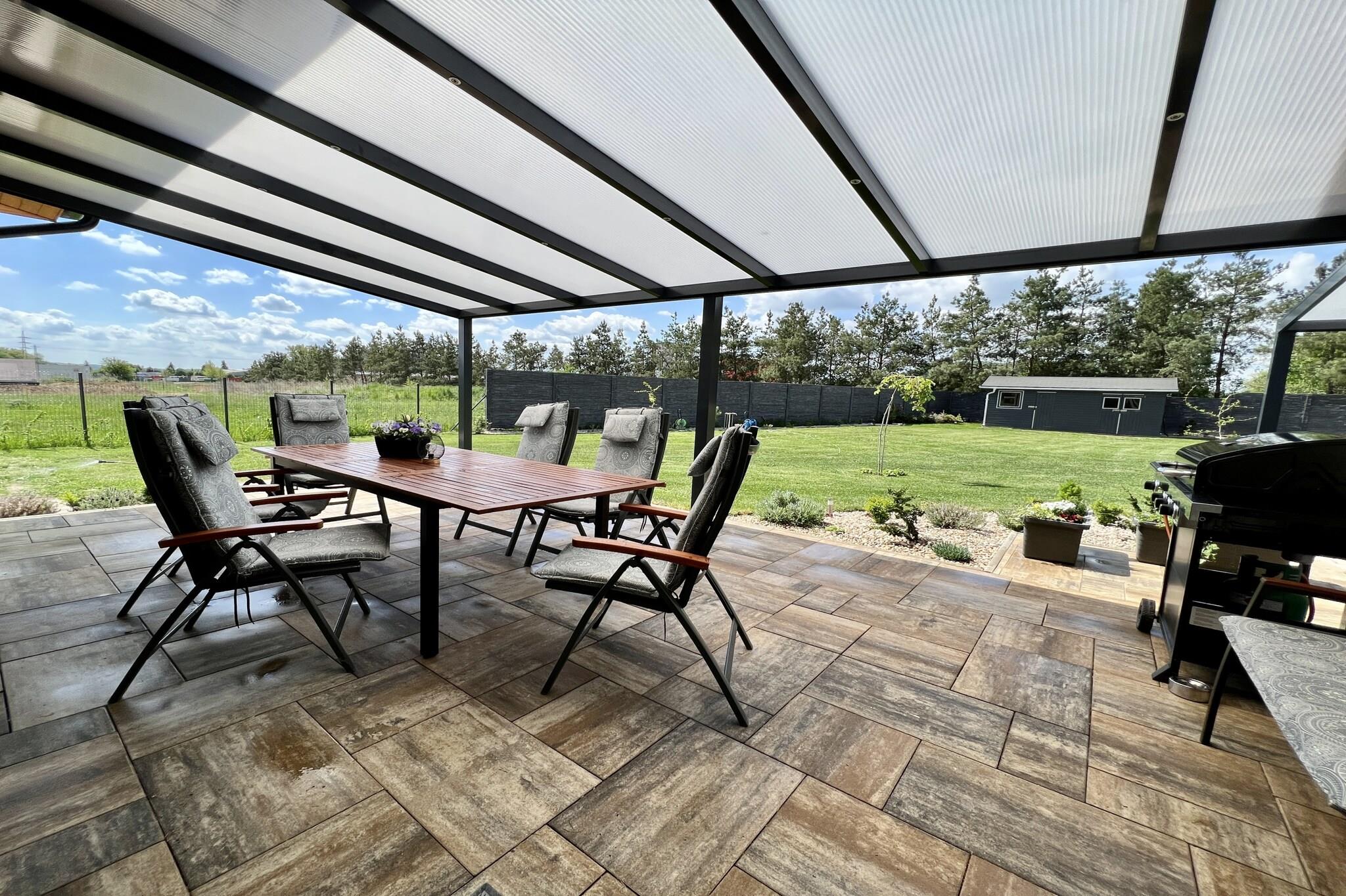 Omfavn roen i vår sjarmerende villa, designet for å huse opptil 6 gjester i komfort og stil. Villaen har 2 vakkert innredede soverom og et luksuriøst bad, og tilbyr et rolig tilfluktssted for familier eller små grupper. For yngre gjester gir sovesofa et koselig alternativ for to barn. Villaen er fullt utstyrt med moderne bekvemmeligheter, inkludert en stilig dusj for foryngende øyeblikk, og et kjøkken med kjøleskap, fryser, stekeovn, mikrobølgeovn og alt nødvendig kjøkkenutstyr for å tilberede herlige måltider. En oppvaskmaskin er inkludert for å gjøre opprydding uanstrengt, slik at du kan slappe av og nyte ferien uten bekymringer. Etter en dag med eventyr kan du slappe av i den komfortable villaen. Slapp av med en bok på den myke sofaen, nyt favorittprogrammene dine på smart-TVen, eller nyt en varm kopp te eller kaffe. For ekstra bekvemmelighet har villaen en vaskemaskin for å friske opp klærne dine. Gå ut til den innbydende terrassen og den vidstrakte hagen, perfekt for barn å leke fritt og kjæledyr å streife omkring. Villaen ligger kun 2 km fra den vakre Macha-sjøen og en kort 0,75 km spasertur til Doksy jernbanestasjon, og tilbyr enkel tilgang til de beste lokale attraksjonene. Den pulserende byen Doksy ligger i nærheten, og eventyr venter med fornøyelsesparker innen 3 til 14 km. Naturelskere kan utforske naturreservatet Böhmen Sveits, kun 50 km unna. Villaen er delt inn i to private rom, hver med sin egen terrasse og hage, noe som sikrer fred og privatliv for alle gjester.