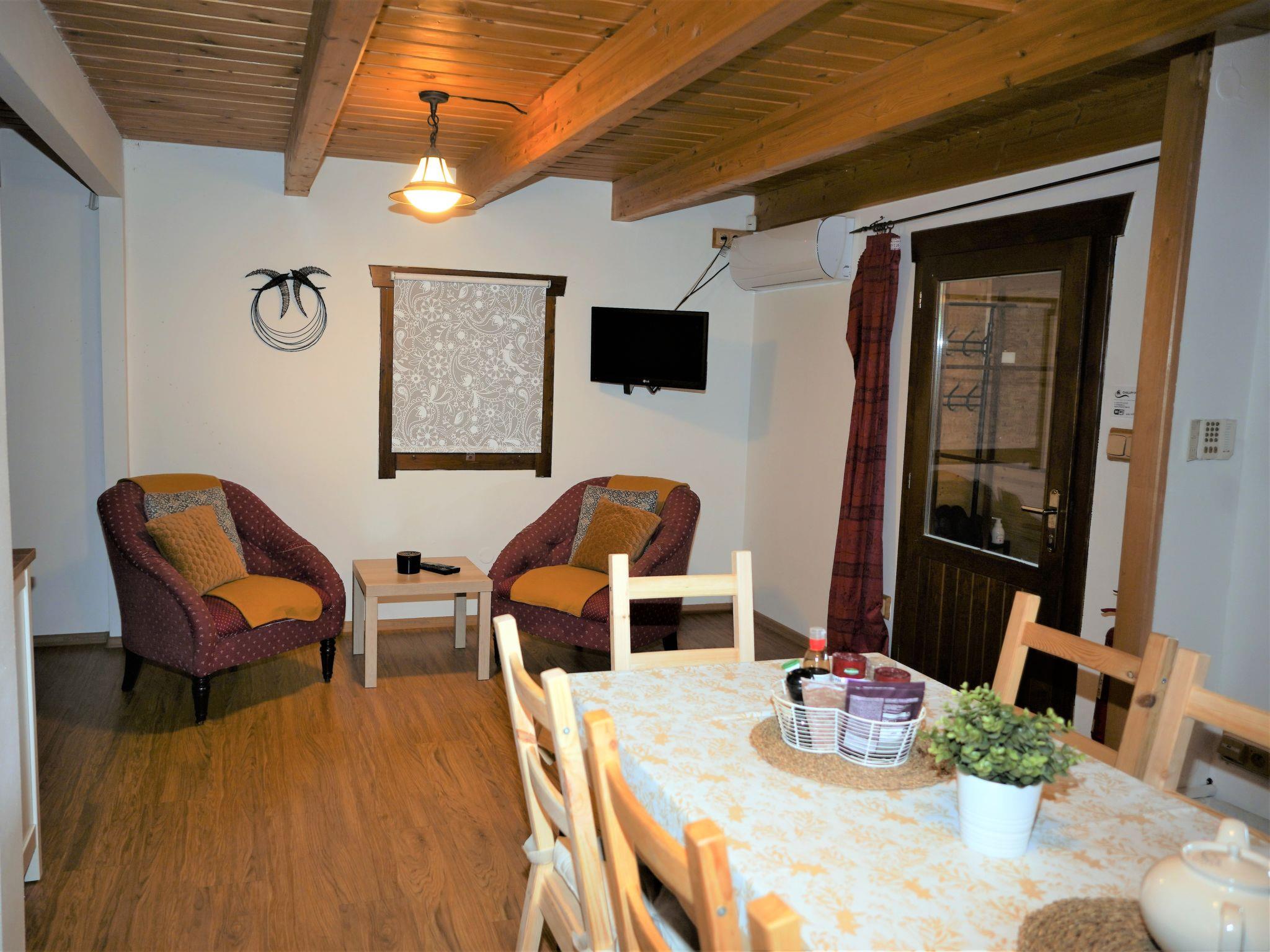"Pod Lišcím kopcem 4+4", 3-room house on 2 levels. Cosy furnishings: living room with TV. Exit to the terrace. Kitchenette (2 ceramic glass hob hotplates, kettle, microwave) with dining table. Bath/WC. Upper floor: 1 room with 1 double sofabed and 1 double bed. 1 room with 1 double sofabed and 1 double bed. Sep. WC. Terrace. Terrace furniture. Facilities: Internet (WiFi, free). Please note: suitable for families. Non-smoking house. Maximum 1 pet/ dog allowed.