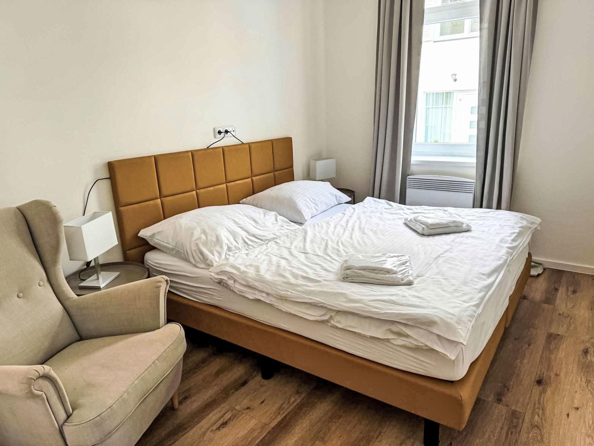 "Lakeside Village 18", 3-room apartment 52 m2 on 1st floor. Comfortable and cosy furnishings: living room. 1 room with 1 double bed. 1 room with 2 beds. Kitchenette (4 hot plates, oven, dishwasher, toaster, kettle, microwave, electric coffee machine) with dining table, satellite TV. Shower/WC. Floor heating. Balcony. Terrace furniture. Facilities: Internet (WiFi, free). Suitable for families.