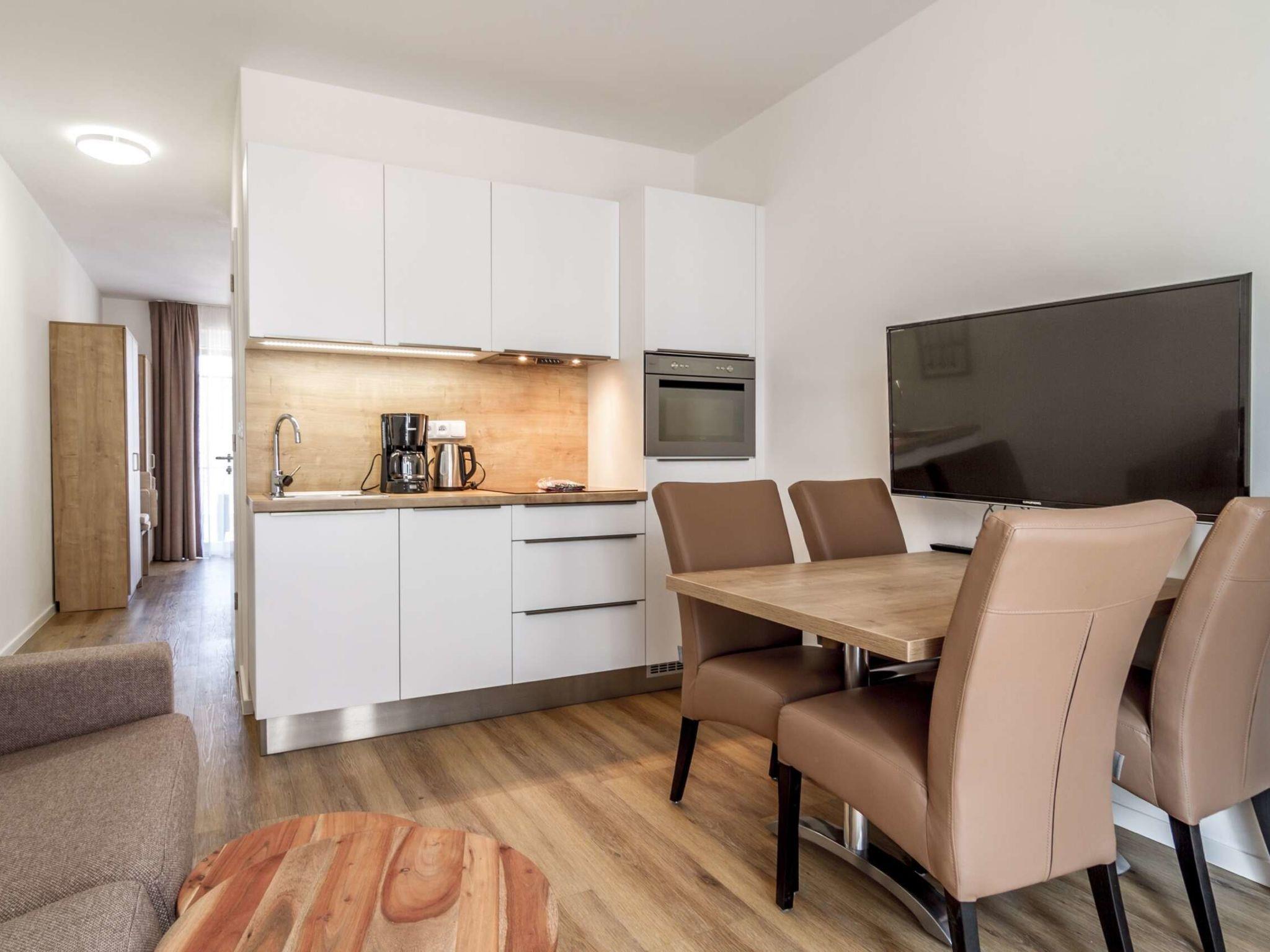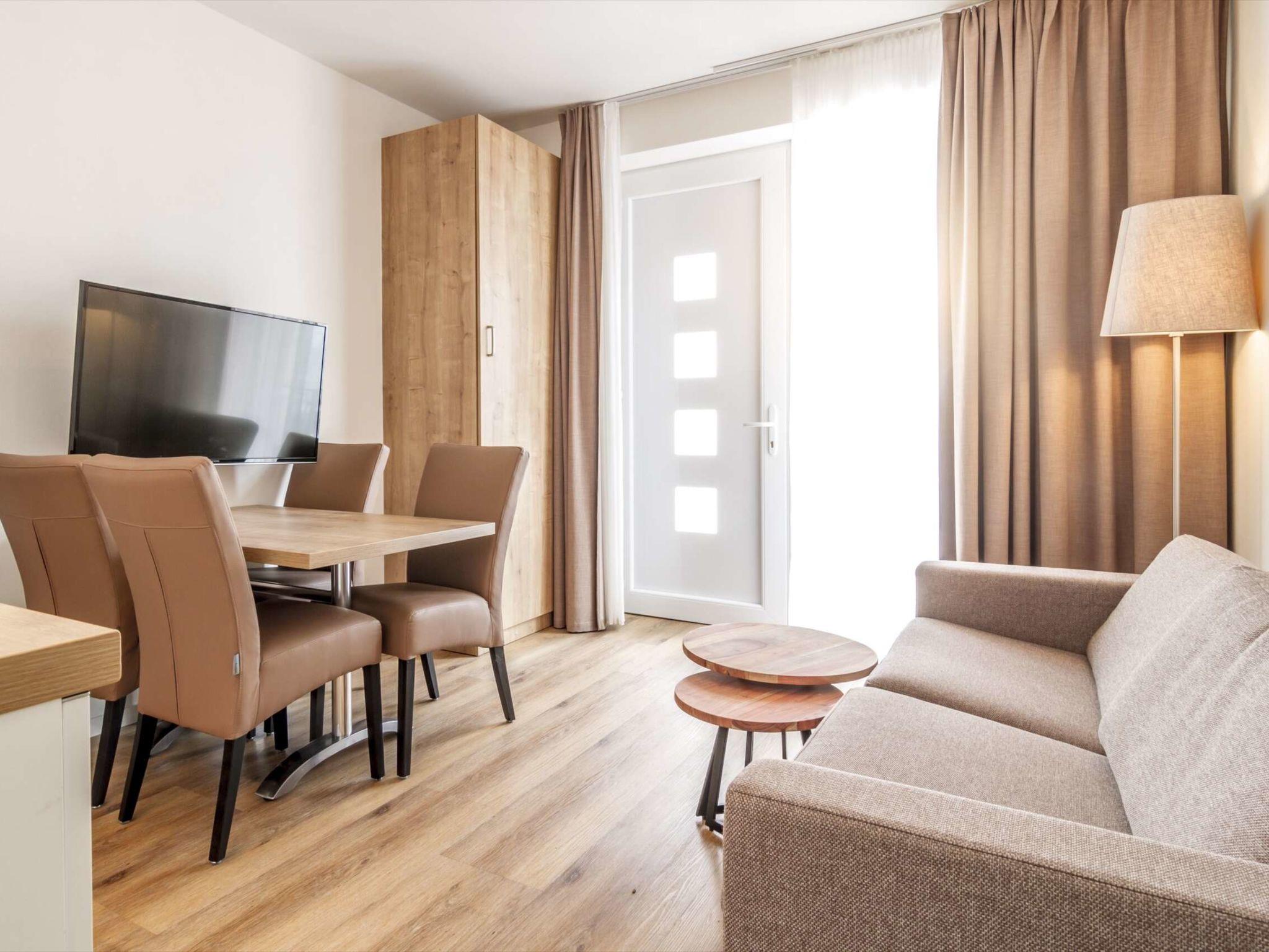 "Lakeside Village 3", 1-room studio 32 m2, on the ground floor. Object suitable for 2 adults + 2 children. Comfortable and cosy furnishings: living/sleeping room with 1 double sofabed and 1 double bed. Kitchenette (4 hot plates, oven, dishwasher, kettle, microwave, electric coffee machine) with dining table, satellite TV. Shower/WC. Floor heating. Terrace. Terrace furniture. Partial view of the lake. Facilities: Internet (WiFi, free). Suitable for families. Maximum 1 pet/ dog allowed.