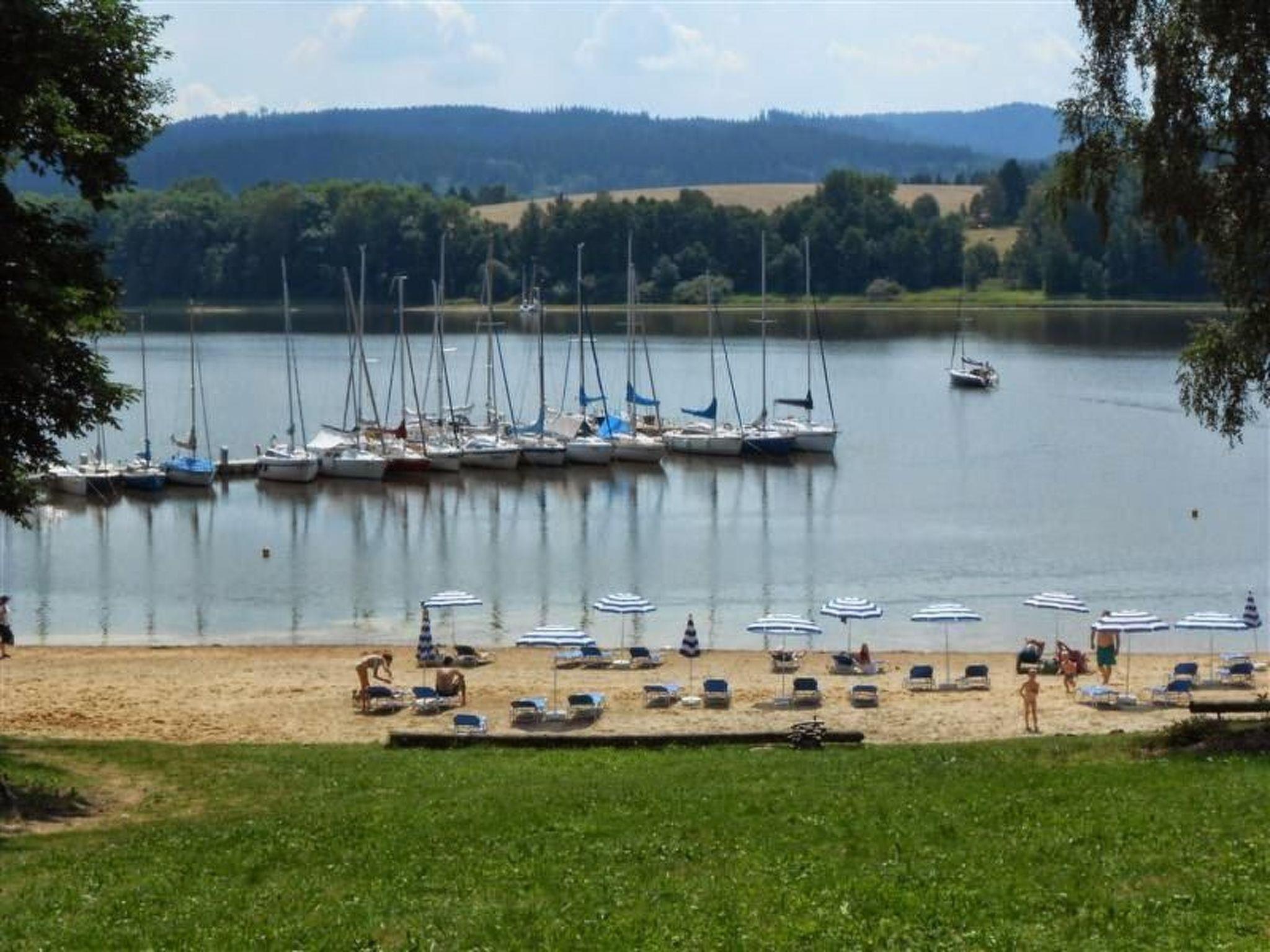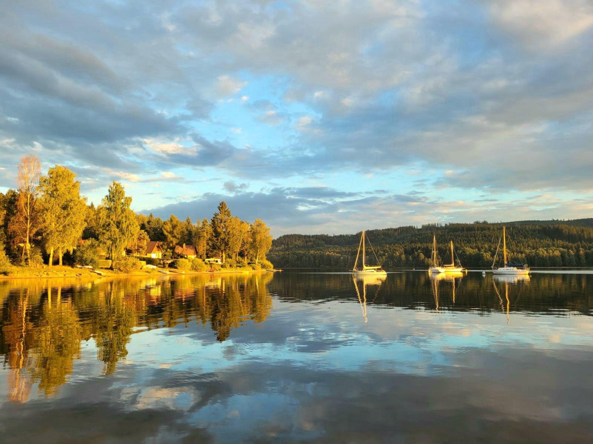 The holiday home, built in 2006, is located on the edge of a small, idyllic holiday home settlement outside the lively village of Frymburk.