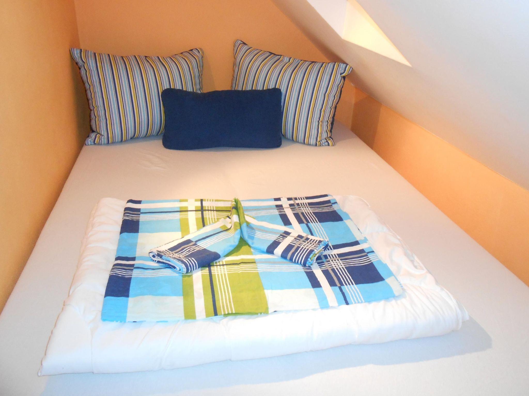 A lovingly designed staircase leads to the attic rooms on the upper floor, in which there are two separate bedrooms (2 single beds, which can also be used as a double bed if required, 1x futon bed), both rooms again with lake view, a further bathroom - with corner bath and also towel dryer, a separate WC, and a small, cosy "Koje" are accommodated. The bunk can be used as a play area or as an additional bedroom for two smaller children or one adult (sofa bed can be pulled out).