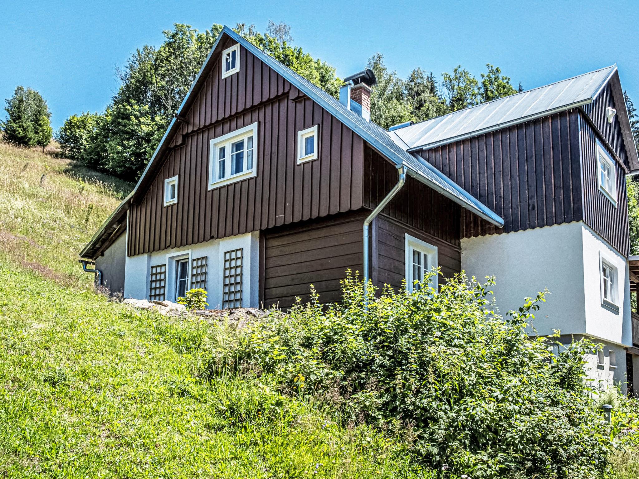 Na Stráni: Very beautiful cottage "Na Stráni", 2 storeys, renovated in 2017. 500 m from the centre of Jablonec nad Jizerou, in a quiet, sunny, elevated position on a slope, 2 km from the skiing area. For shared use: property 20'000 m2, natural garden, beautiful garden to relax. Private: natural garden, swimming pool (seasonal availability: 01.Jun. and - 31.Sep.). Hot tub, terrace, garden furniture, barbecue, parking (for 5 cars) at the house at 30 m. Supermarket 1.2 km, bakery 1.2 km, café 850 m, bus stop "Jablonec nad Jizerou" 1.2 km, railway station "Jablonec nad Jizerou" 750 m, outdoor swimming pool 1.8 km. Golf course (9 hole) 15 km, ski lift 2 km, ski rental 2 km, children's ski school 2 km. Nearby attractions: Rozhledna U Borovice 12 km, Stráž 5 km, Hutský vodopád 10 km, Paseky nad Jizerou 8 km, Bozkovské jeskyne 18 km. Well-known ski regions can easily be reached: Paseky nad Jizerou 8 km, Jablonec nad Jizerou 2 km, Vysoké nad Jizerou 6 km. Hiking paths: Krkonoše 25 km, Jizerské hory 30 km. Please note: suitable for families. The owner does not accept any groups.