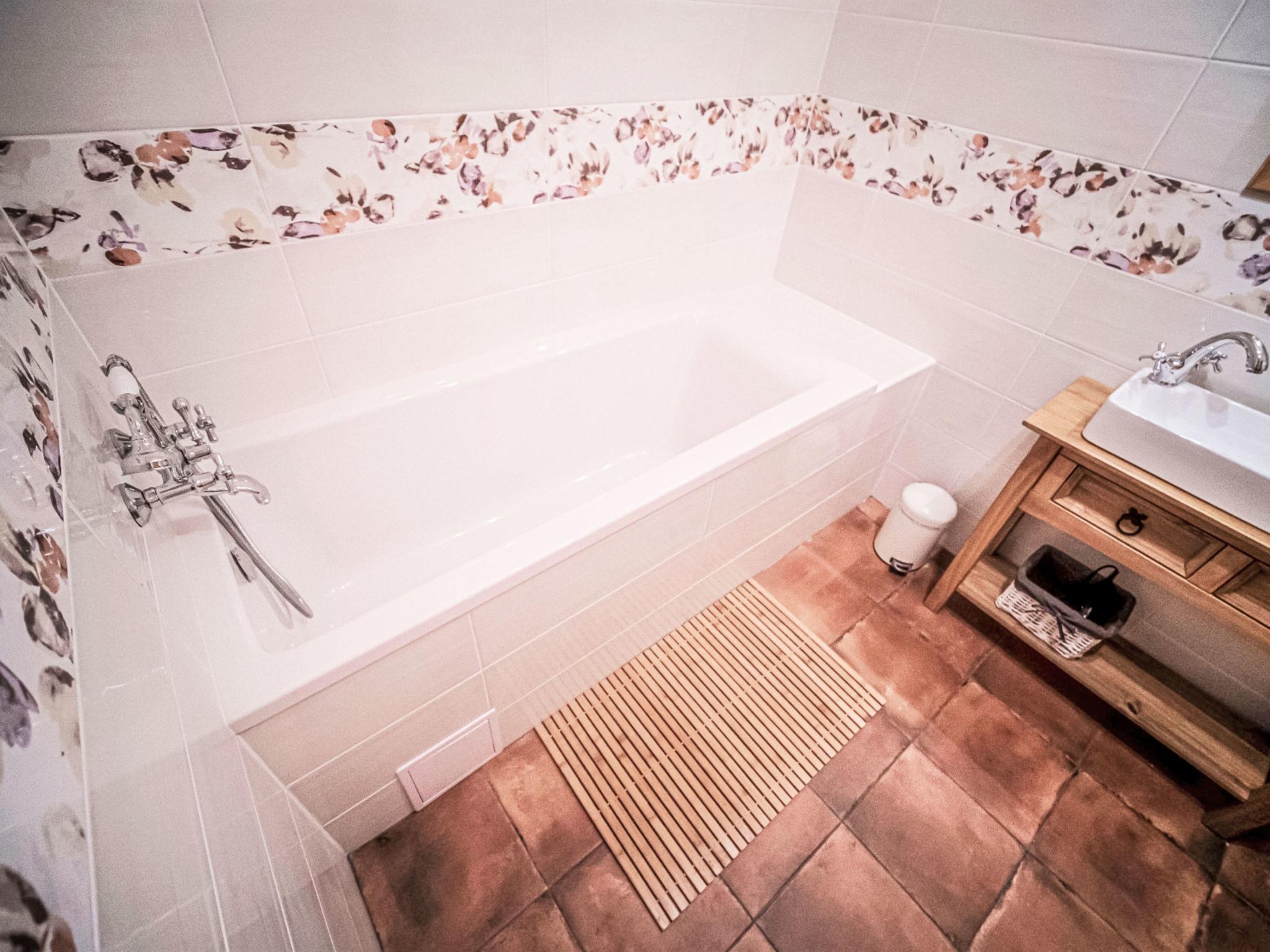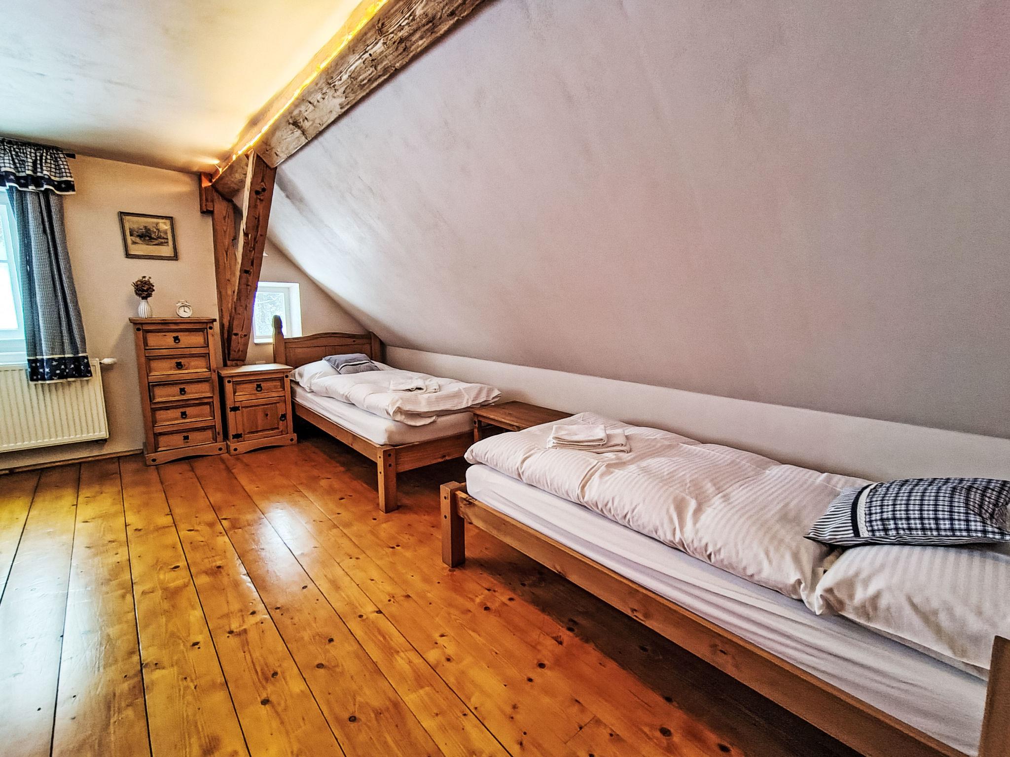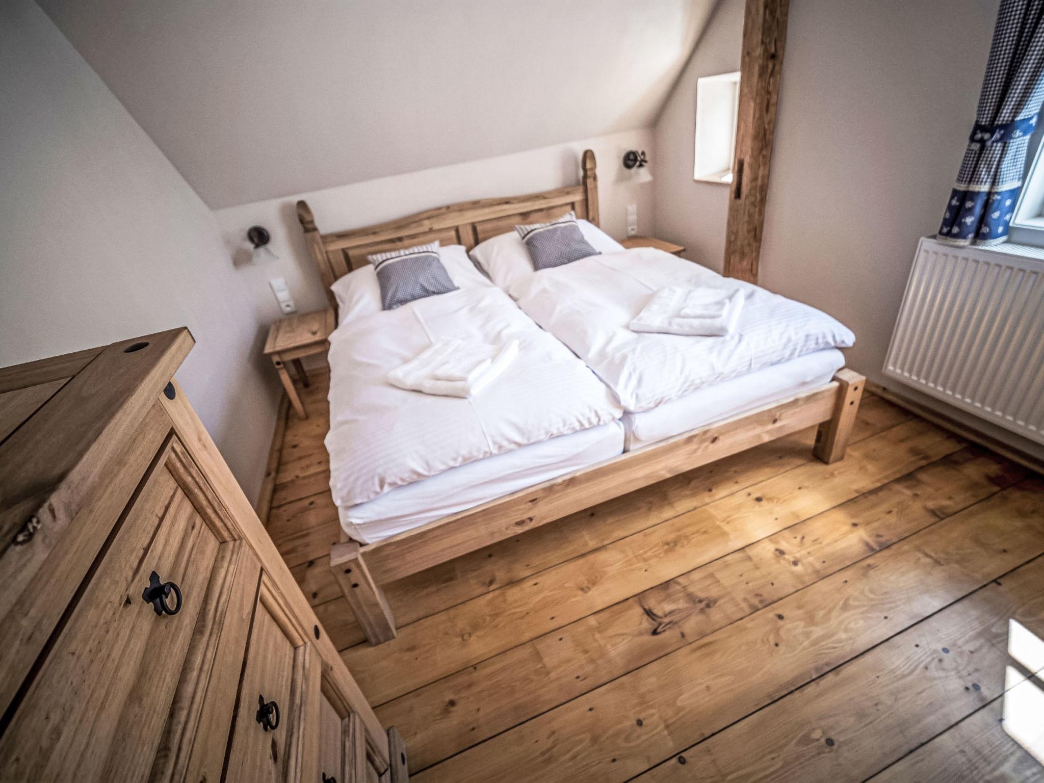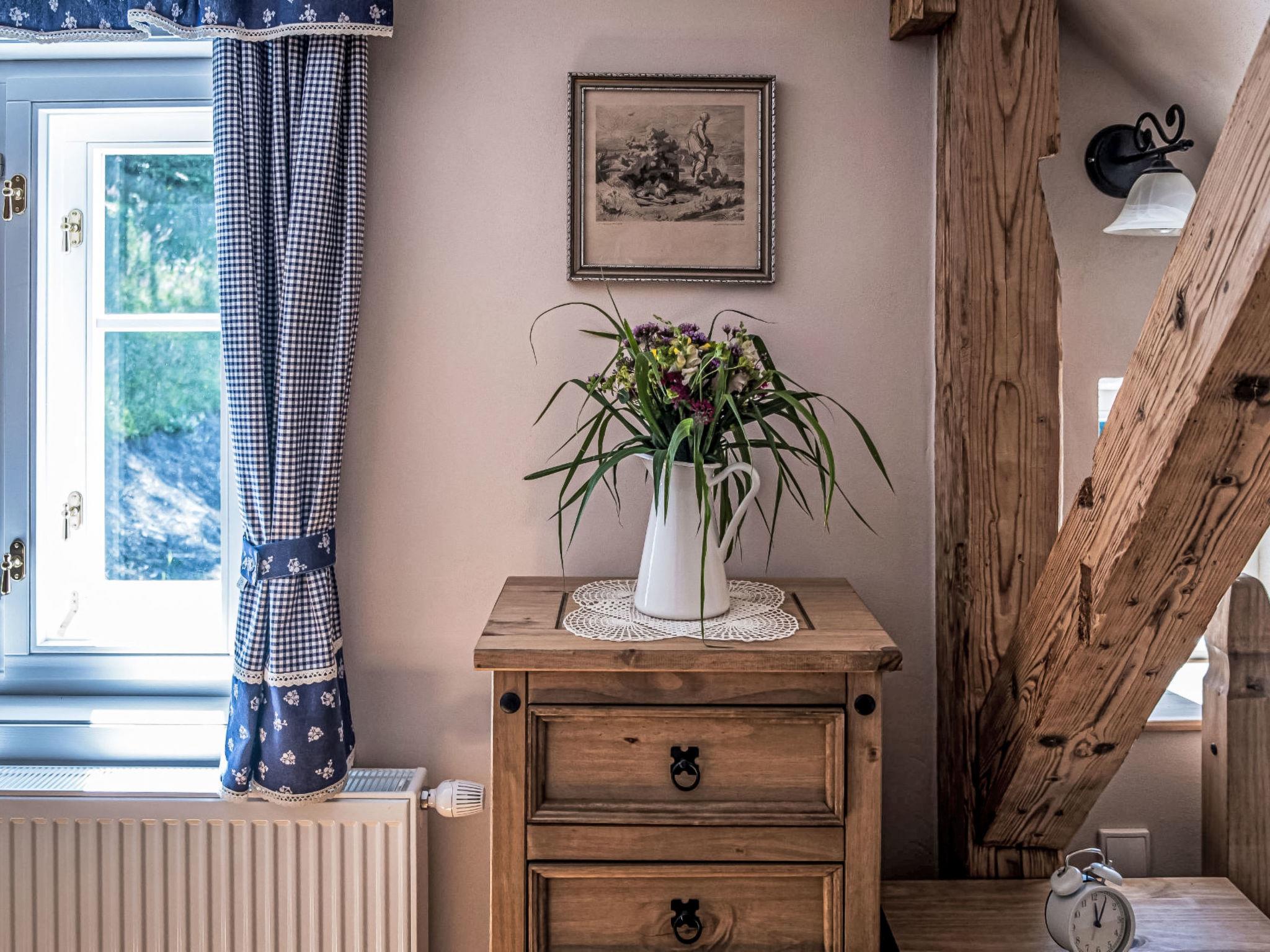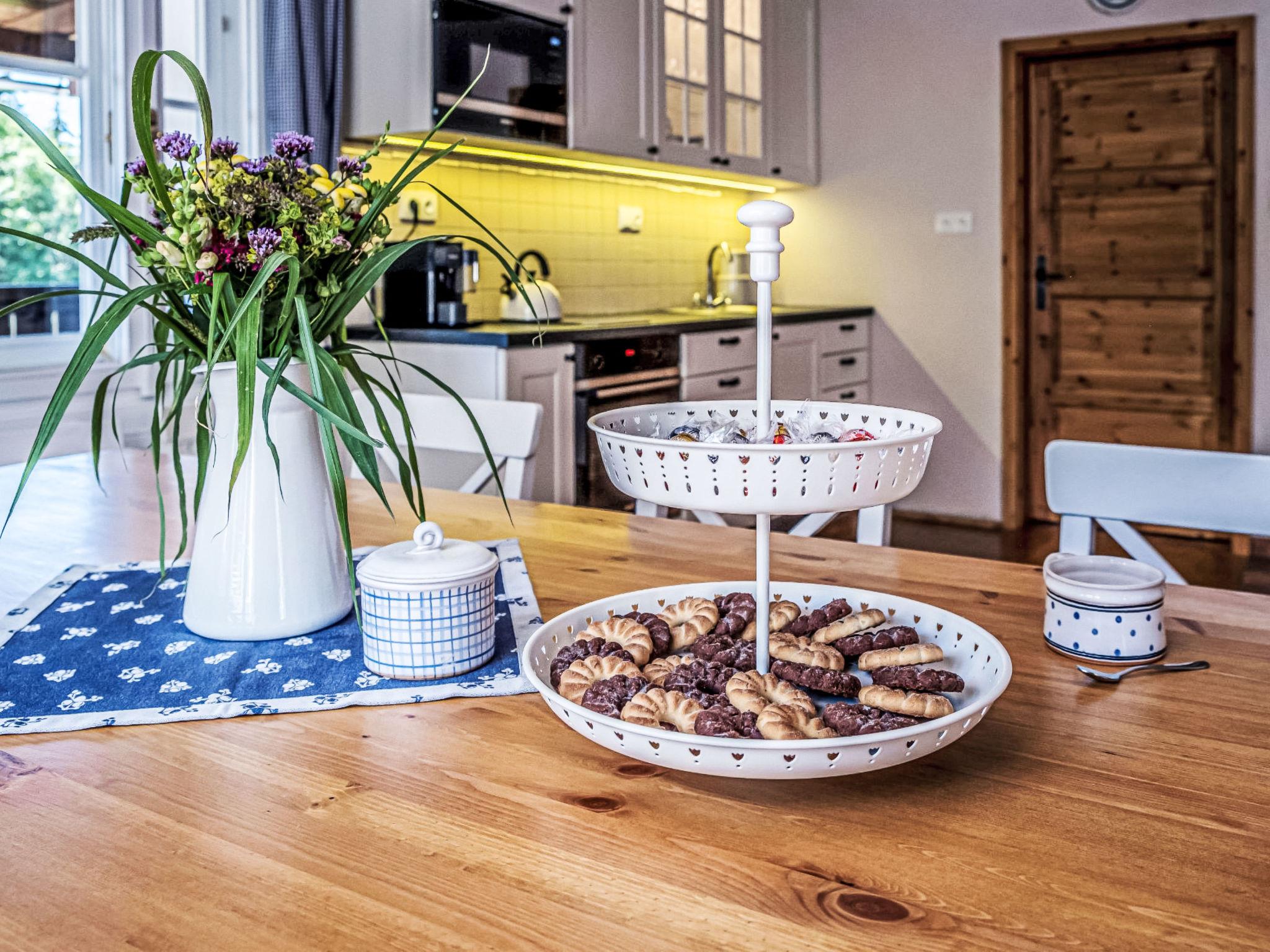5-room cottage 200 m2. Very beautiful and rustic furnishings: entrance hall with separate WC. Exit to the veranda. Open large living/dining room with 1 sofabed and dining table. Large, open kitchen (oven, dishwasher, 4 ceramic glass hob hotplates, toaster, kettle, microwave, freezer, electric coffee machine, Capsules for coffee machine (Nespresso)) with electric heating and tiled stove. Sep. WC, Sauna. 2nd upper floor: 1 room with 2 beds, 1 double bed and shower/WC. 1 room with 1 double bed and shower/WC. 1 room with 1 double bed and shower/WC. 1 room with 2 beds, 1 double bed and bath/WC. Wooden floors. Terrace furniture. View of the mountains, the garden and the forest. Facilities: washing machine, sauna, children's high chair, baby cot, hair dryer. Internet (WiFi, free). Please note: suitable for families. Non-smokers only. 1 pet/ dog allowed.