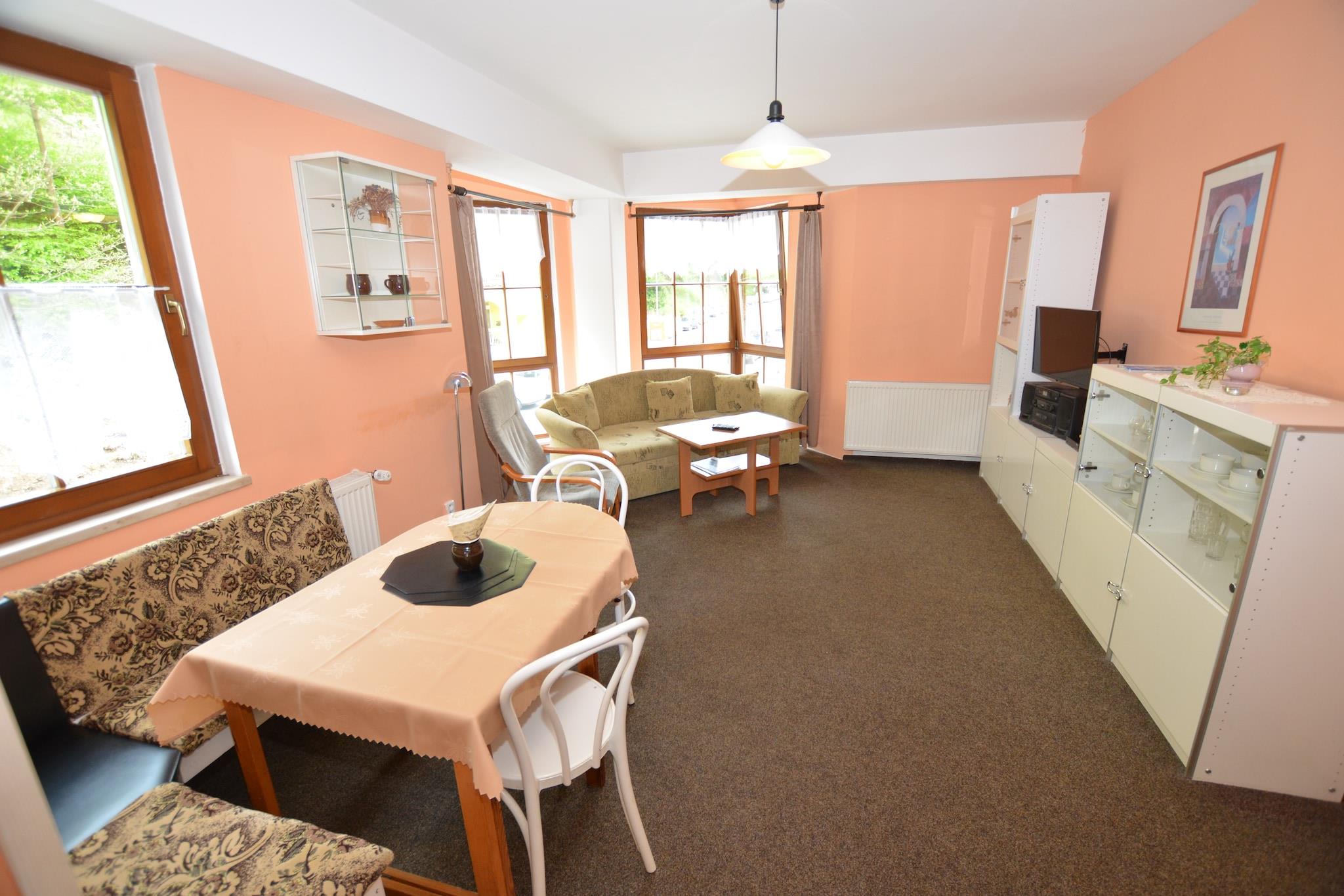 Ski & City Escape Denne kjæledyrvennlige leiligheten i Jáchymov har plass til opptil fire gjester på ett soverom, noe som gjør den ideell for par, små familier eller venner. Stuen har rikelig med sitteplasser for sammenkomster, mens det åpne kjøkkenet er fullt utstyrt for hjemmelagde måltider. Sentralvarme holder plassen koselig, og praktiske fasiliteter inkluderer en lagringsenhet, heis og parkering på stedet. Gratis Wi-Fi er tilgjengelig for å holde deg tilkoblet under oppholdet. Nærliggende attraksjoner og spisesteder Vinterentusiaster kan dra nytte av skibussen kun 50 meter unna, med Klínovec-skiheisen kun 2 km fra leiligheten. Utforsk byen Jáchymov med butikker, restauranter og generelle forsyninger innen 100 meter. Et offentlig innendørsbasseng ligger bare 200 meter unna, og tilbyr et flott alternativ for avslapning eller familiemoro. Leilighetens sentrale beliggenhet gjør det enkelt å nyte både skieventyr og lokale matopplevelser. Dyrevennlige aktiviteter Kjæledyr er velkomne, slik at du kan ta med deg din pelskledde følgesvenn. Ta naturskjønne spaserturer sammen rundt de omkringliggende fjellene, nyt friskluftsturer gjennom byen, eller utforsk nærliggende skogsstier. Etter utendørseventyr kan du slappe av i den komfortable stuen eller tilberede et måltid på det fullt utstyrte kjøkkenet. Med sin kombinasjon av bekvemmelighet, nærhet til skianlegg og kjæledyrvennlige alternativer, tilbyr denne leiligheten en minneverdig base for en vinterferie eller utforsking året rundt i Jáchymov.