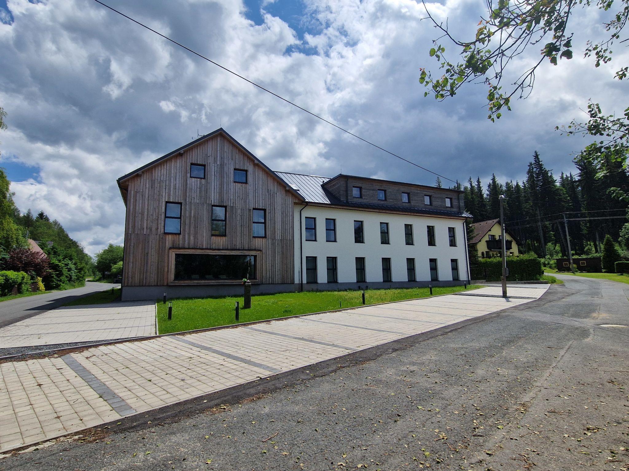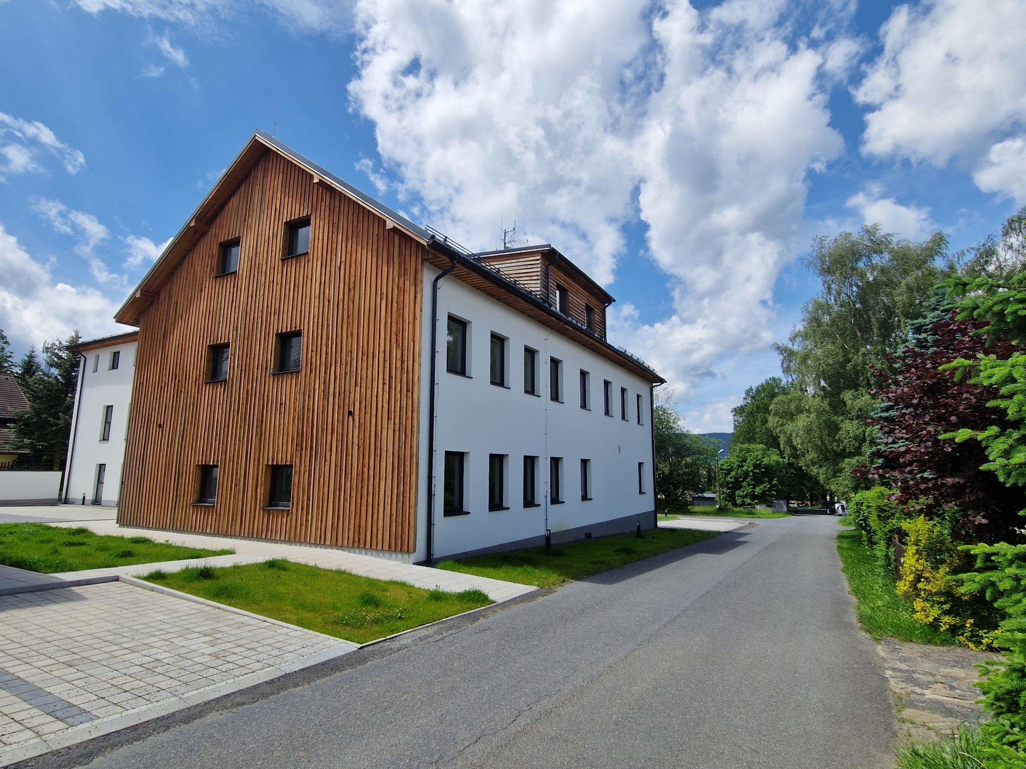 Javorná 7 km from Cachrov: Modern apartment block, 3 storeys, renovated in 2022. 1.5 km from the skiing area. For shared use: property. In the house: storage room for bicycles, storage room for skis, central heating system. Parking at the house. Grocery 500 m, restaurant 1.5 km, bus stop "Cachrov, Javorná, prodejna" 1.3 km. Walking paths from the house 100 m, cycle lane 100 m, ski lift 1.5 km, slopes 1.5 km, ski rental 1.5 km, ski school 1.5 km, cross country ski track 500 m, children's playground 1.5 km. Nearby attractions: Muzeum Šumavy, lanové centrum 15 km, Localbahnmuseum Bayerisch Eisenstein 18 km, Rozhledna Špicák 19 km, Hojsova Stráž 26 km, Prášily 25 km, Vodopád Bílá strž 27 km, Velhartice 15 km, Klatovy, Sušice, 28 km, hrady Kašperk 30 km, Kašperské Hory 35 km. Well-known ski regions can easily be reached: Javorná 1.5 km, areál Samoty, Belveder, Pancír, Špicák 14 km, Grosser Arber/Velký Javor (DE) 25 km. Well-known lakes can easily be reached: Certovo jezero 18 km, Cerné jezero 18 km, Vodní nádrž Nýrsko 25 km. Hiking paths: Národní park Šumava, Národní park Bavorský les (DE).