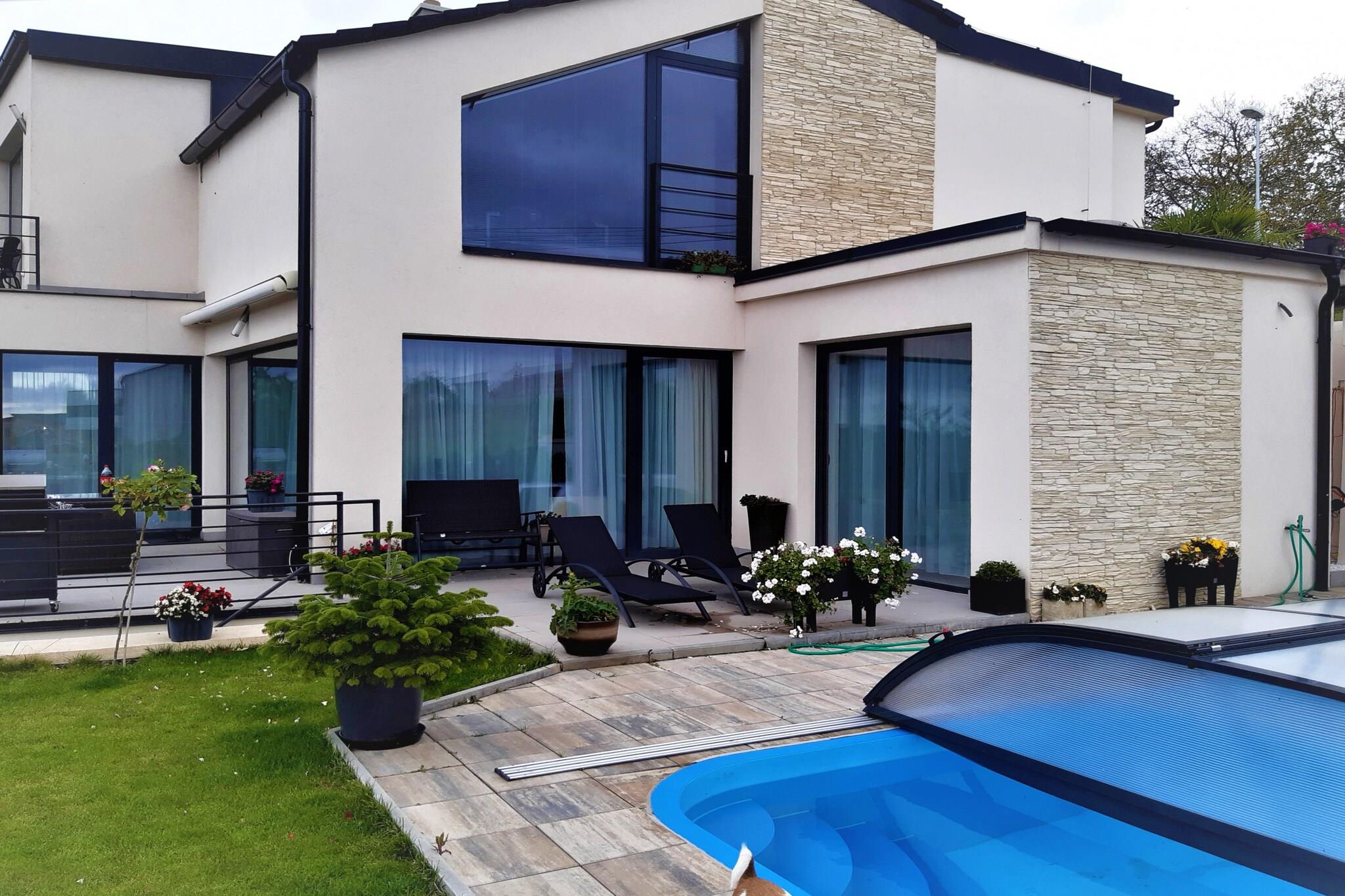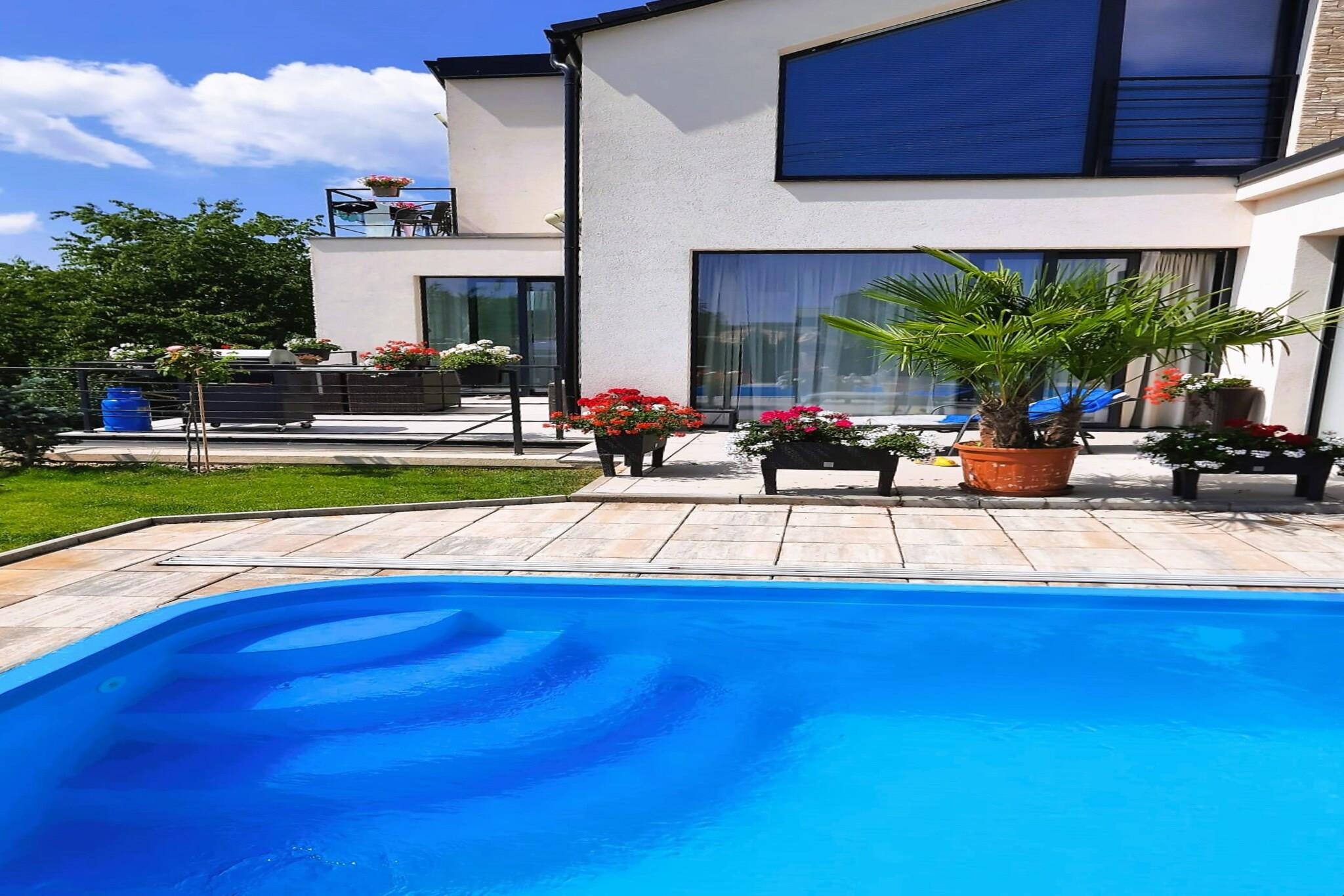 Dette feriehuset har 1 soverom og plass til 5 personer (maks. 4 voksne). Innkvartering på 55 m² smakfullt innredet og moderne, har hage.. Den er utstyrt med alt du kan ønske deg for en avslappende og komfortabel ferie: med oppvaskmaskin, mikrobølgeovn, stekeovn, badekar, parabol og selvfølgelig gratis Wi-Fi. Fi, du vil føle deg like komfortabel som hjemme her. Prikken over i-en på dette feriehuset er det private 18 m? svømmebassenget med en stor terrasse og solsenger. Huset er bygget på en høyde, fra terrassen og bassenget kan du overse hele området. Dette huset er ideelt for folk som leter etter fred og ro, men ikke ønsker å være fullstendig isolert fra den bebodde verden. Praha ligger mindre enn 45 minutter unna, og den nærmeste butikken er lett tilgjengelig til fots. For en god tsjekkisk restaurant trenger du bare å gå 800 meter. Her har du egen garasje til bilen, inngjerdet hage, terrasse med hagemøbler og en fin balkong hvor du kan nyte frokosten eller en god kopp kaffe. Dette huset har en praktisk beliggenhet hvis du ønsker å komme til Tsjekkia med fly, da det kun er 34 kilometer fra flyplassen. Det er nok å gjøre for alle i umiddelbar nærhet av dette feriehuset med svømmebasseng. Fotturer, sykling, klatring, lek eller en dagstur til Praha, for eksempel. Men du kan ikke bare bade i ditt eget svømmebasseng! 7 kilometer unna er det mulighet for å bade i en elv og litt lenger, 12 kilometer unna, er det et veldig fint utendørs svømmebasseng. Nærmeste by er Kladno.