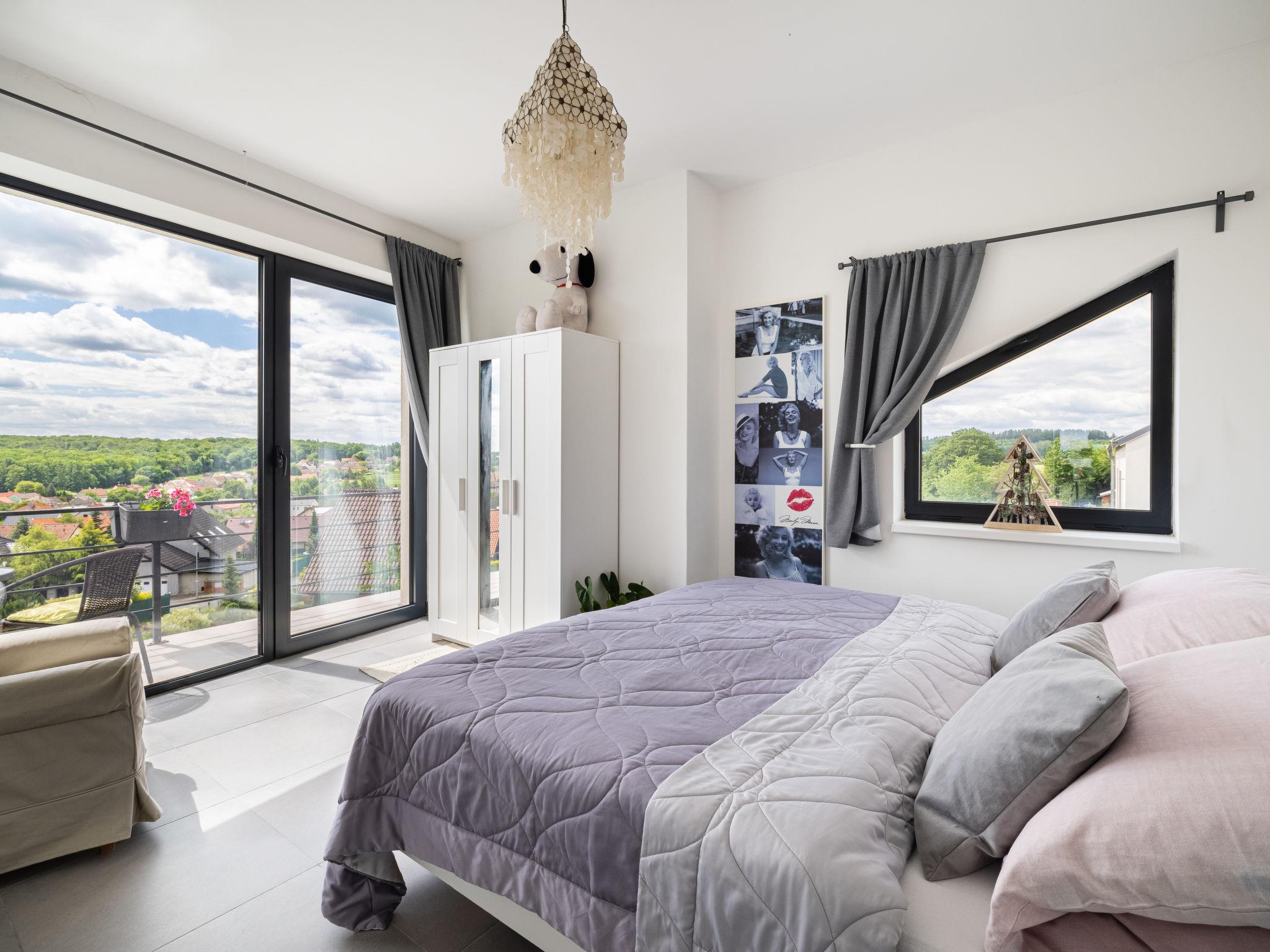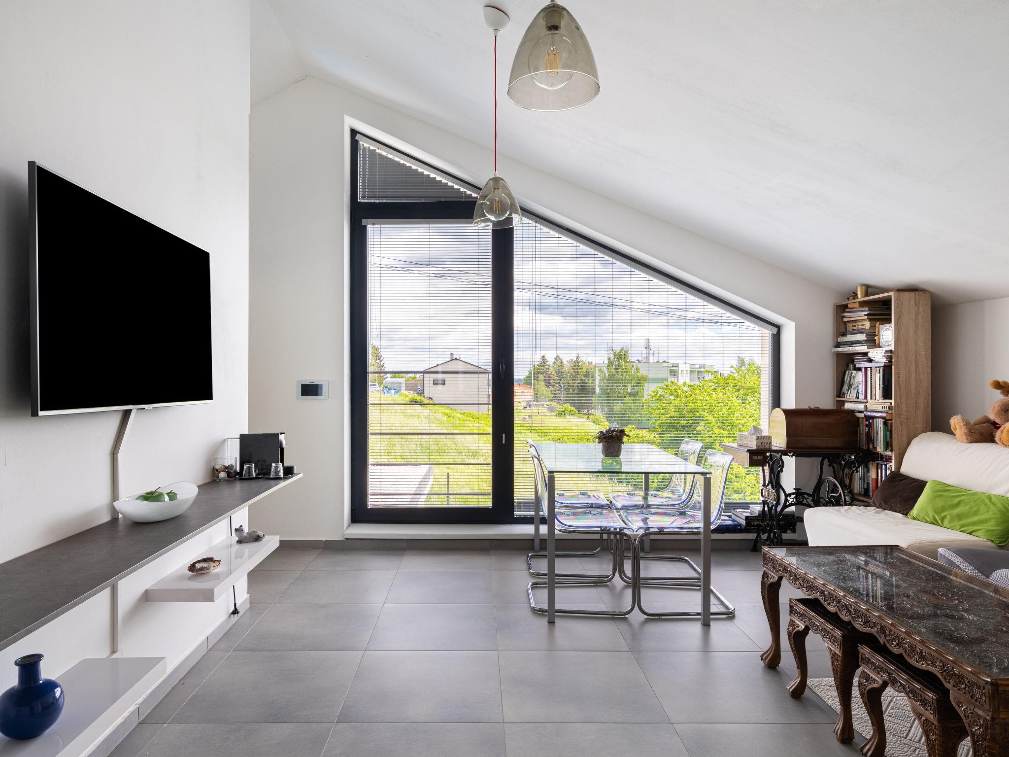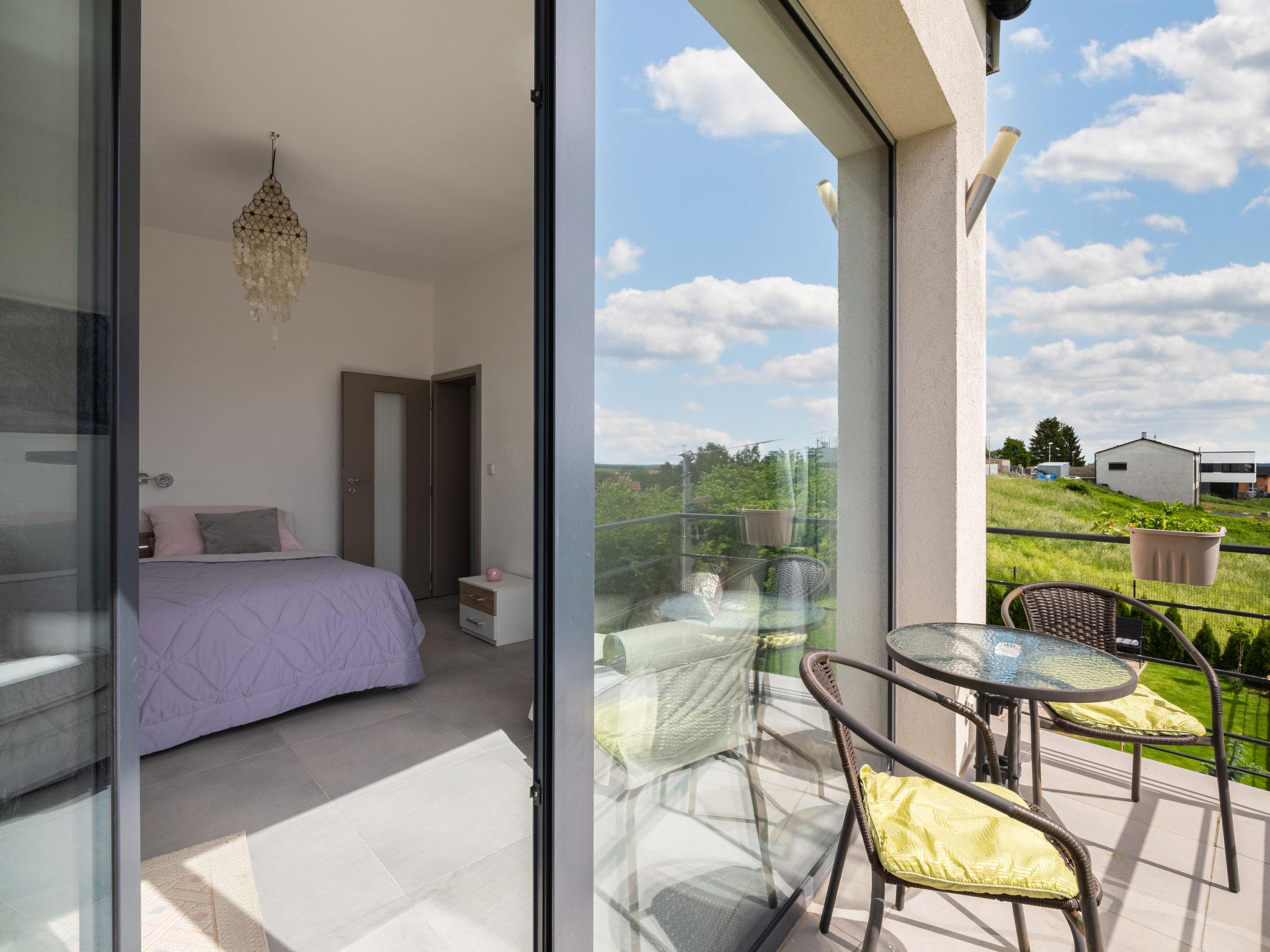"Lány", 2-room apartment 53 m2 on 1st floor. Modern and cosy furnishings: living room with 1 double sofabed, TV and DVD. 1 room with 1 double bed. Exit to the balcony. Kitchen (dishwasher, 4 ceramic glass hob hotplates, toaster, kettle, microwave, freezer, electric coffee machine). Bath/shower/WC. Floor heating. Balcony. Balcony furniture. Beautiful view of the countryside and the city. Facilities: washing machine. Internet (WiFi, free). Garage. Please note: suitable for families. Non-smokers only. Smoke alarm, fire extinguisher.