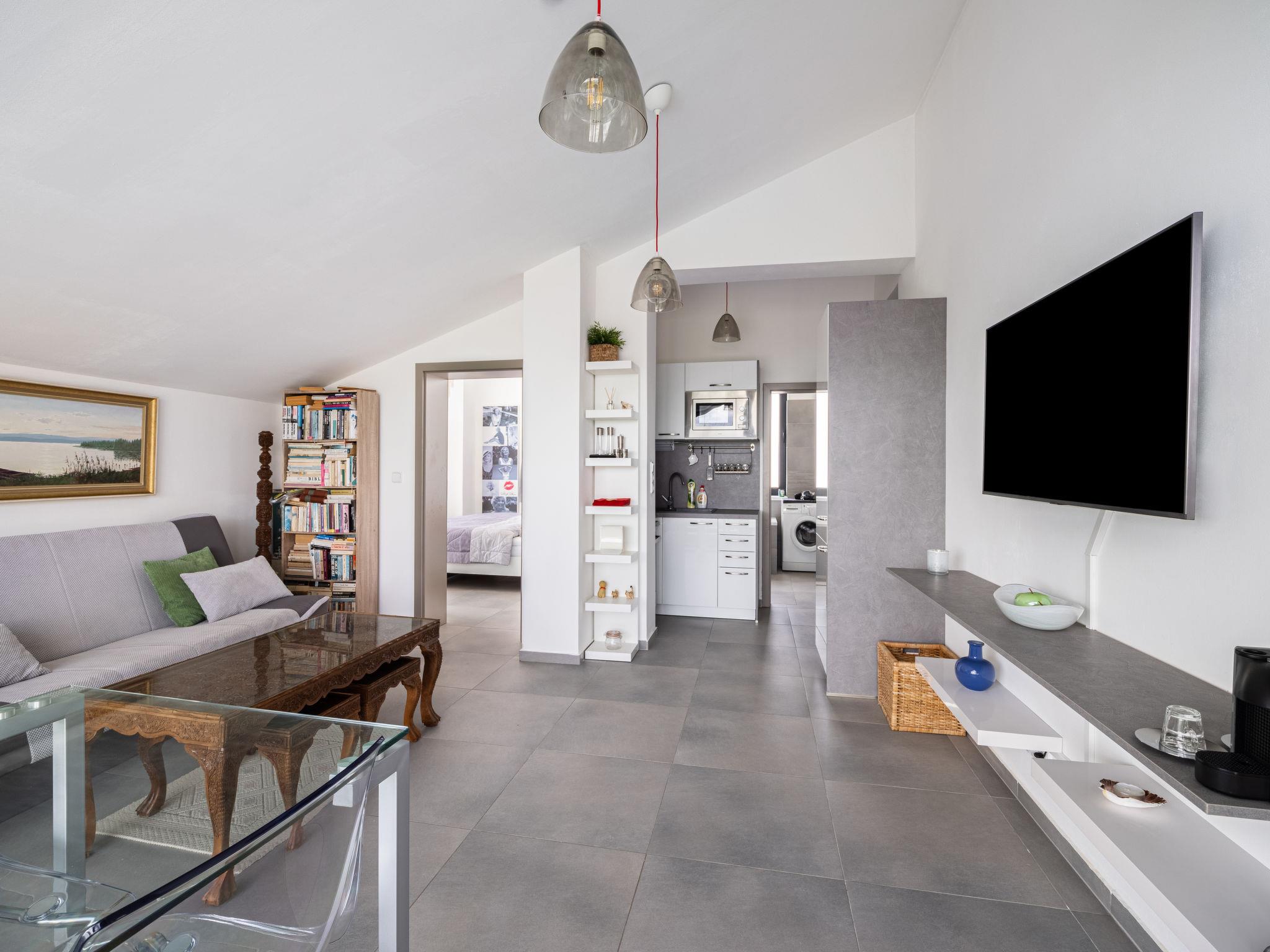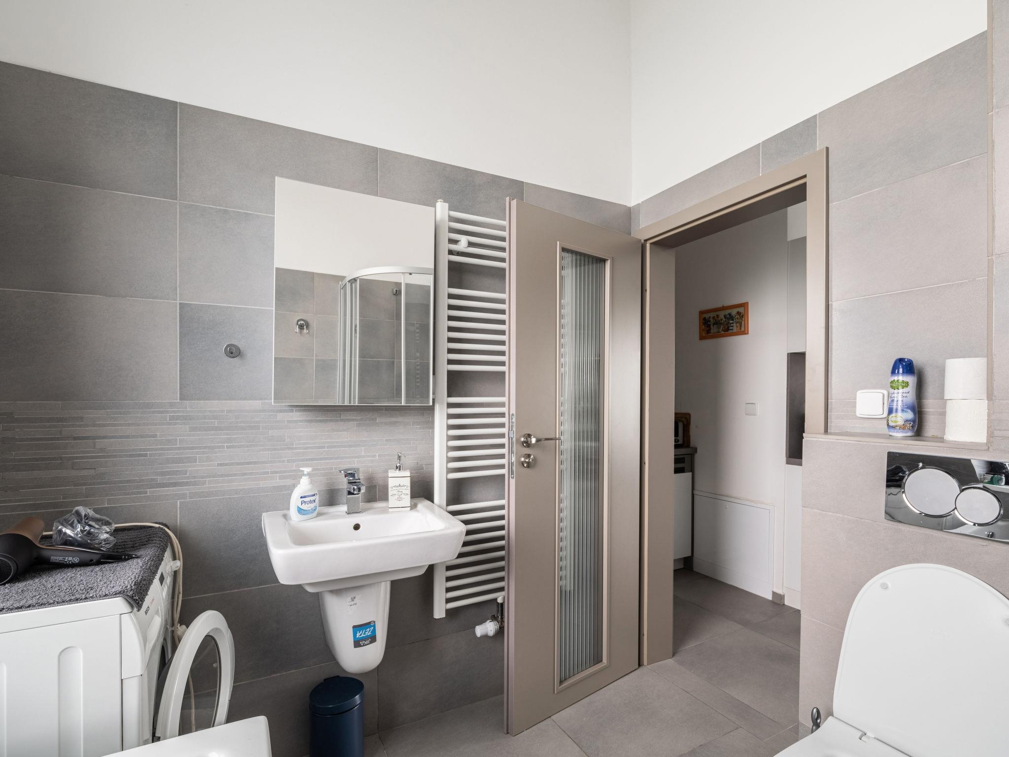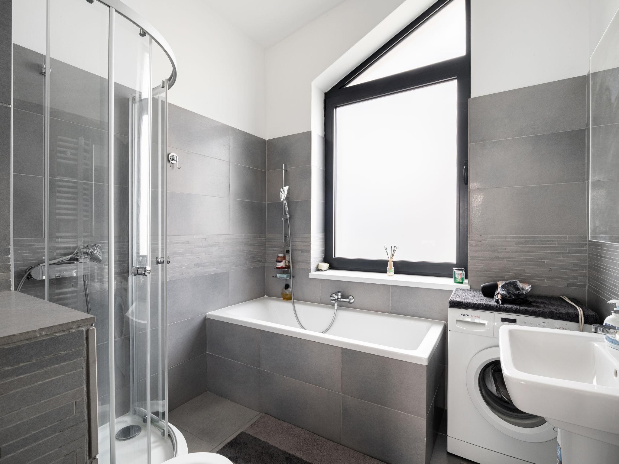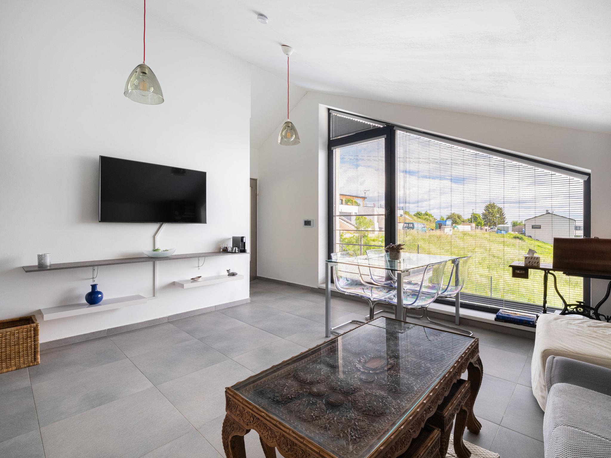 "Lány", 2-room apartment 53 m2 on 1st floor. Modern and cosy furnishings: living room with 1 double sofabed, TV and DVD. 1 room with 1 double bed. Exit to the balcony. Kitchen (dishwasher, 4 ceramic glass hob hotplates, toaster, kettle, microwave, freezer, electric coffee machine). Bath/shower/WC. Floor heating. Balcony. Balcony furniture. Beautiful view of the countryside and the city. Facilities: washing machine. Internet (WiFi, free). Garage. Please note: suitable for families. Non-smokers only. Smoke alarm, fire extinguisher.