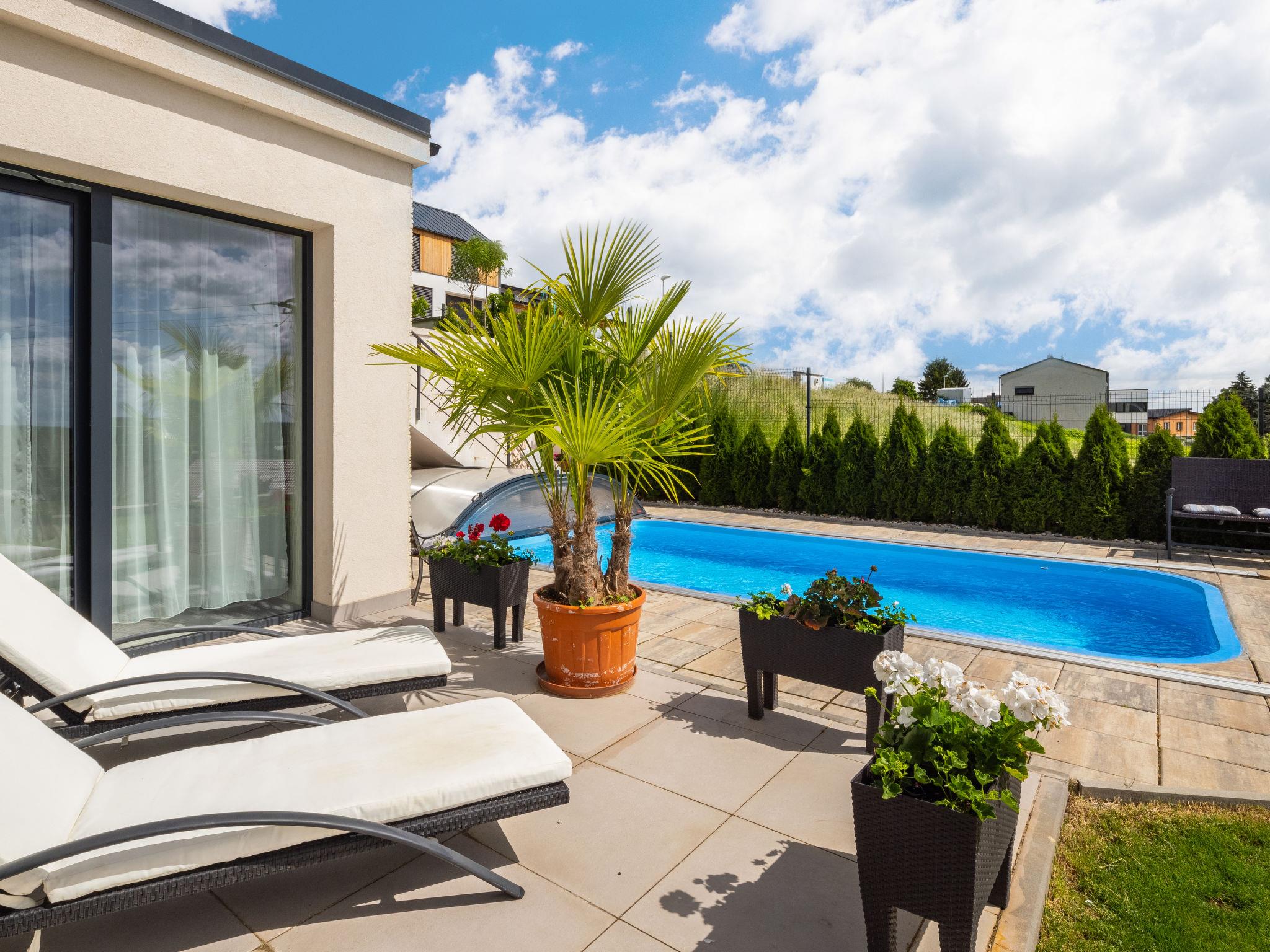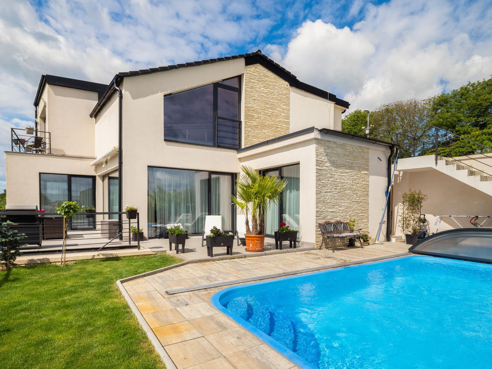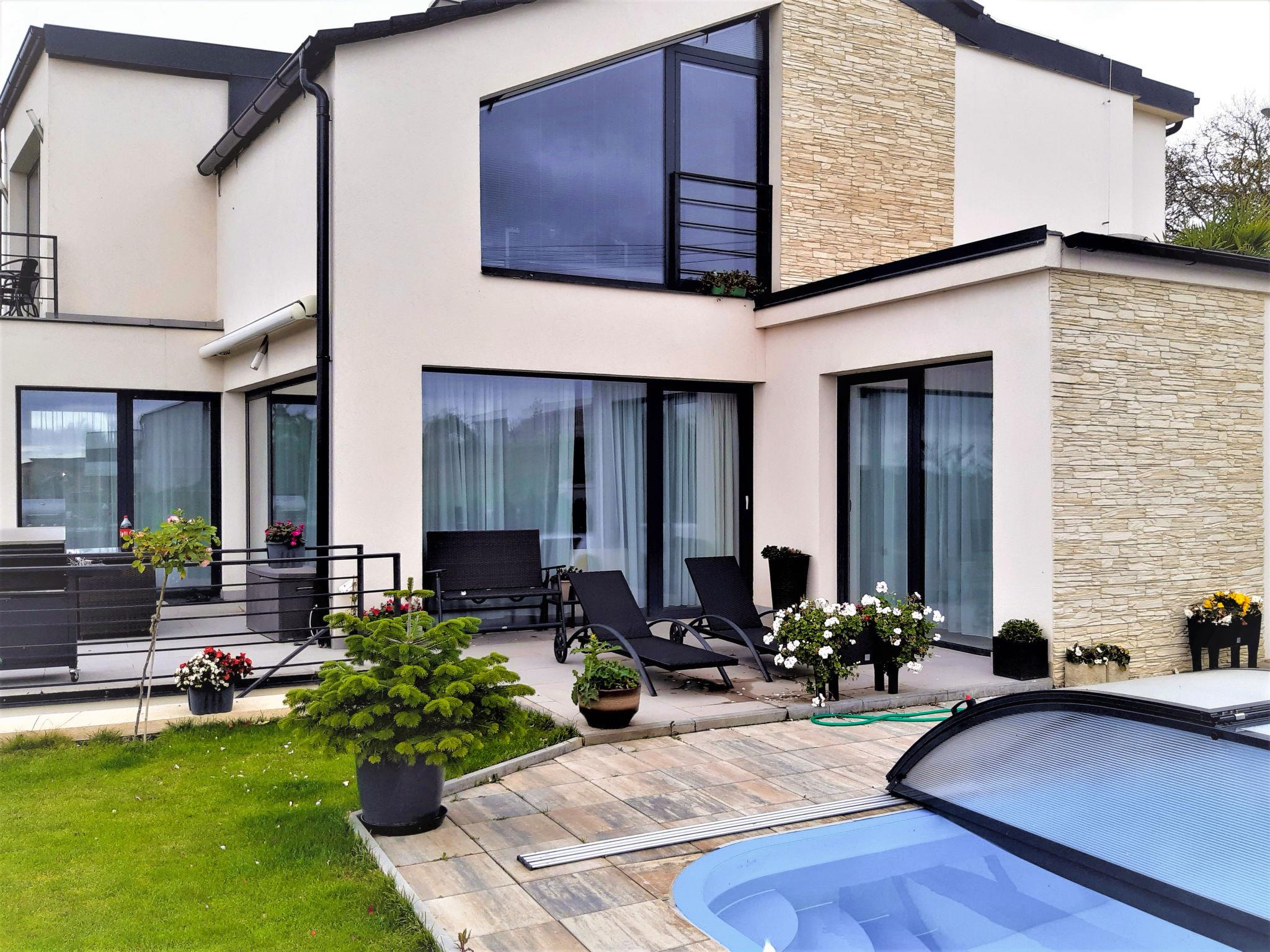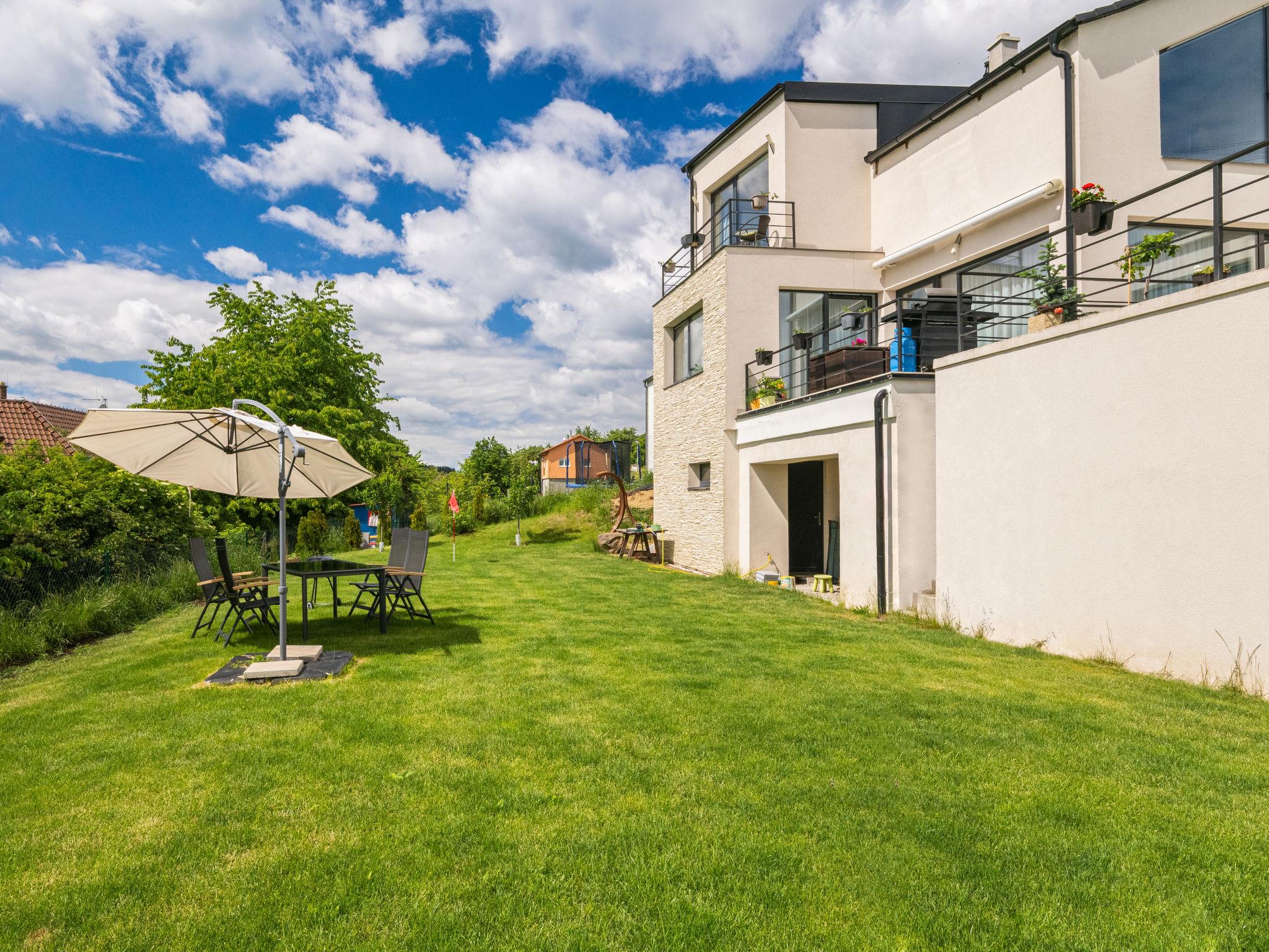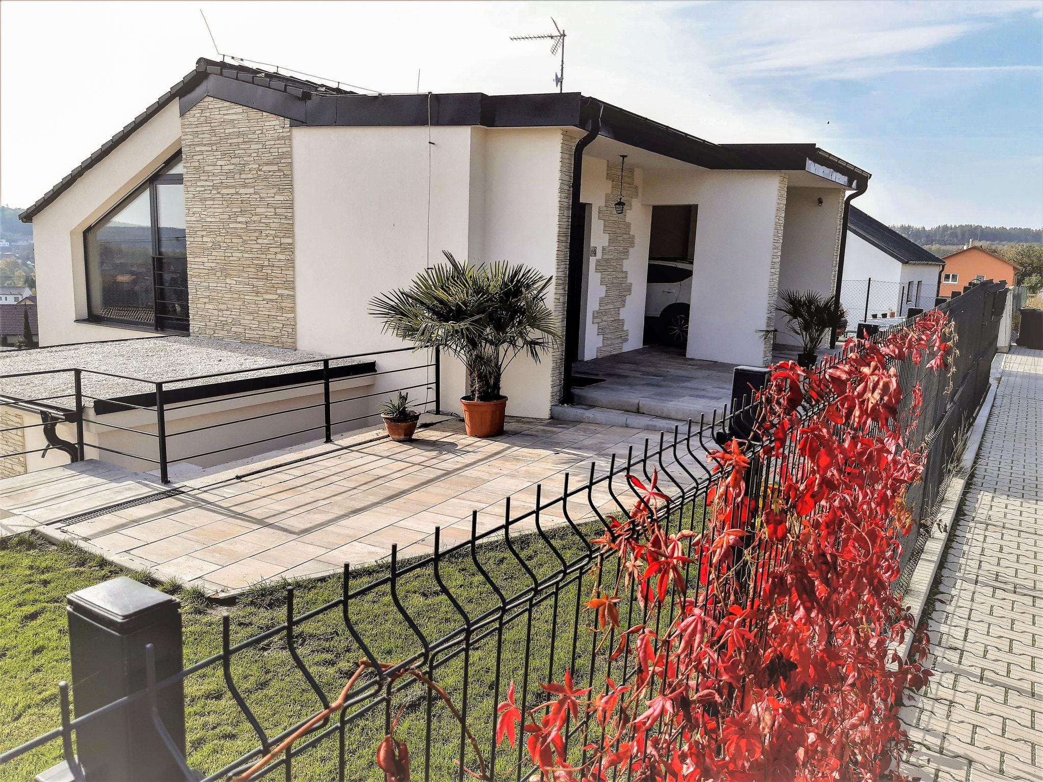 Comfortable villa, built in 2018. On the outskirts Lány, in a quiet, sunny, elevated position. For shared use: property, garden, swimming pool (6 x 3 m, depth 150 cm, seasonal availability: 01.May. - 30.Sep.). Garden furniture. In the house: central heating system. Single garage. Shop 500 m, restaurant 800 m, bus stop "U hrbitova" 450 m, railway station "Stochov-Slovanka" 2 km, outdoor swimming pool 12 km, indoor swimming pool 4 km. Nearby attractions: Zámek Lány, Lánská obora 1 km, Muzeum T. G. Masaryka 1.2 km, Hrad Krivoklát 16 km. The owner does not accept any youth groups. Please note: the owner lives in the same residence.