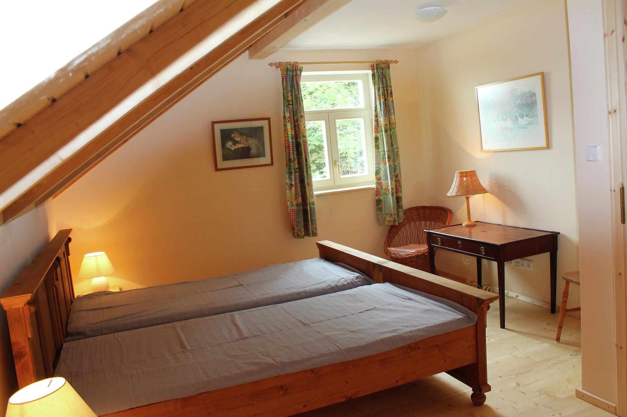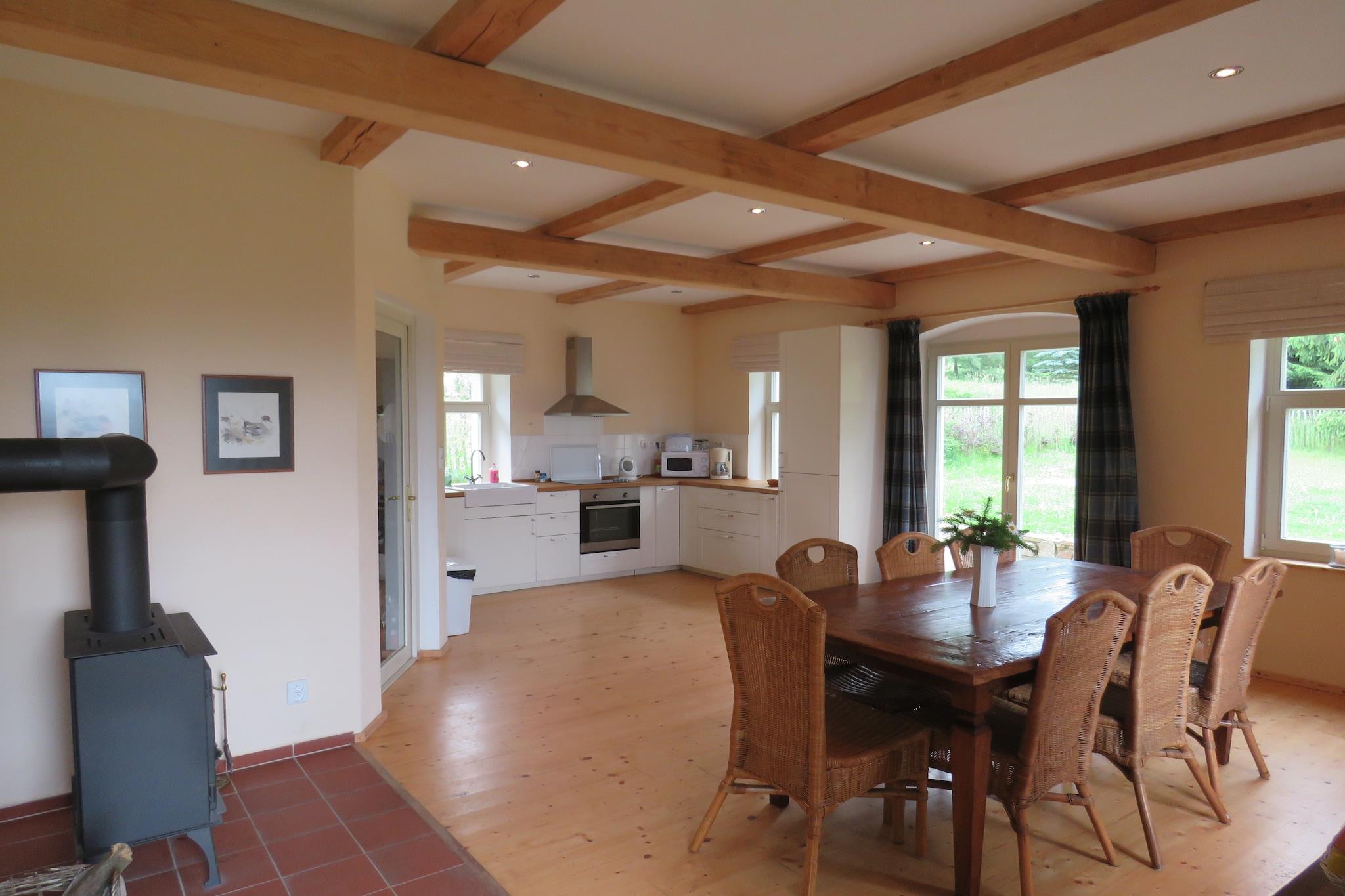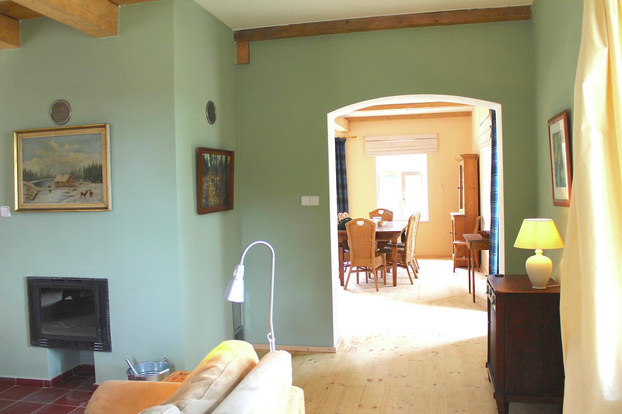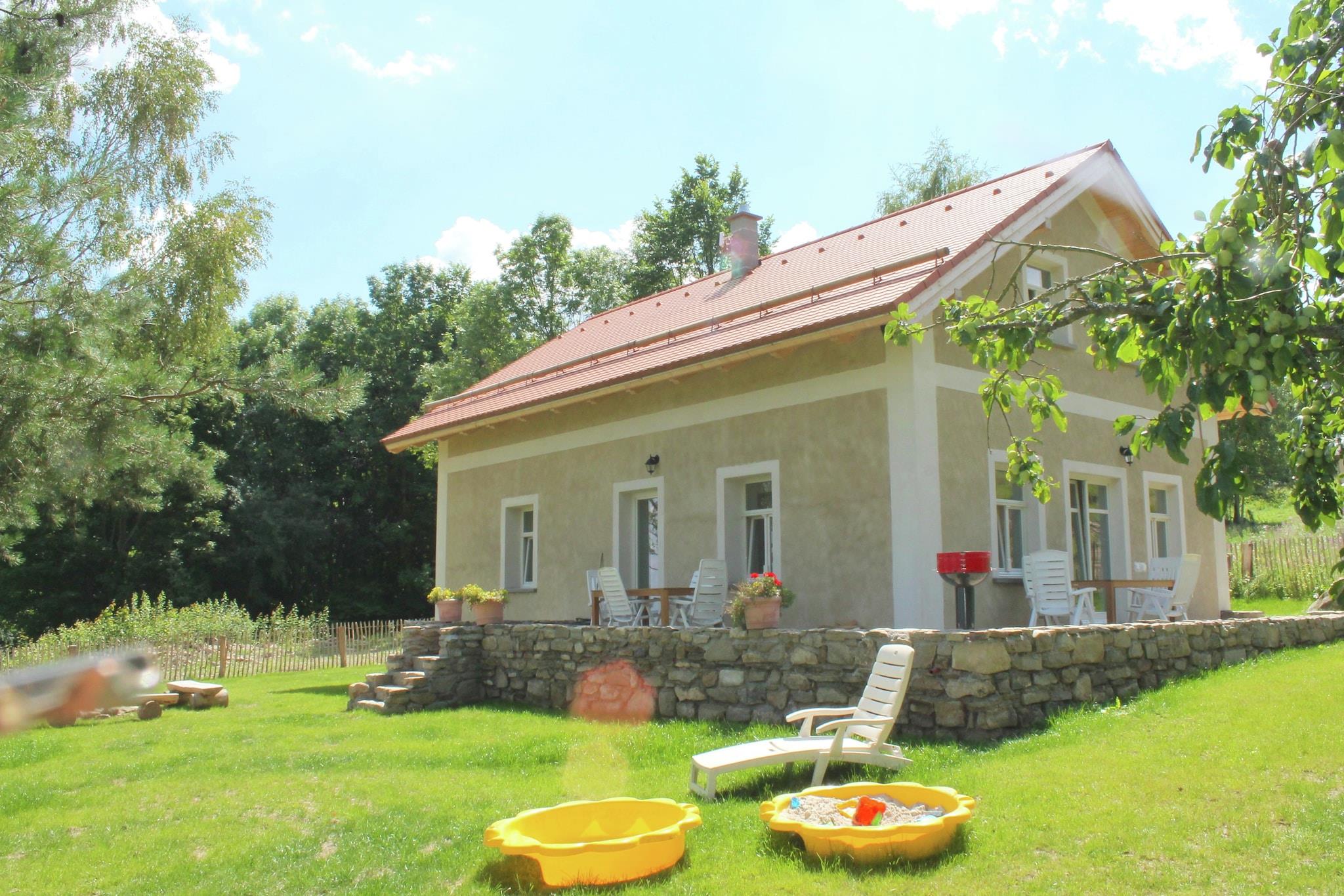 Dette romslige feriehuset ligger i Milíre i Tsjekkia. Det er 4 soverom, som har plass til totalt 8 personer, perfekt for en ferie med venner eller familie. I tillegg er det tillatt med maksimalt 3 kjæledyr til huset som ligger i et skogsområde. Du kan ta vakre turer eller sykkelturer i de vakre omgivelsene. Den tilstøtende Bohemian Forest har vakre fjell, daler, skoger og klare bekker. Du kan også besøke Tachov, som ligger bare 7 km unna. Pittoreske landsbyer, historiske slott og medisinske kilder finnes i Vest-Böhmen. Feriehuset er utstyrt med alle moderne bekvemmeligheter. Det er 2 bad. Stuen er svært attraktiv på grunn av peisen og det store spisebordet. Kjøkkenet har stekeovn og oppvaskmaskin. Ute på terrassen kan du nyte en deilig grillmat når været er fint. Barna kan ha det gøy i sandkassen. NB! Huset varmes opp med vedovn.