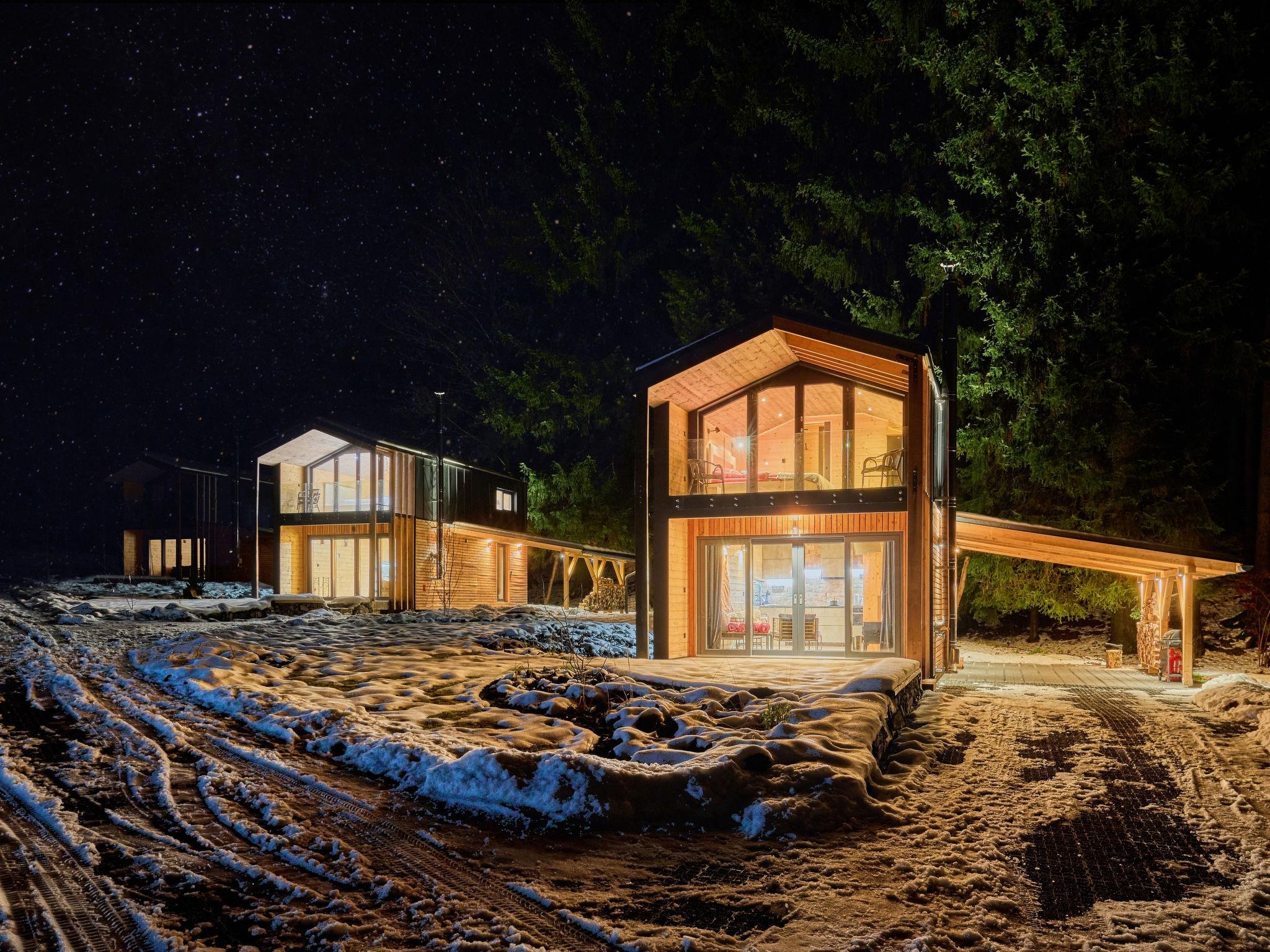 "Luxe Timber Lodge & Pet Retreat", 3-room chalet. Very beautiful and tasteful furnishings: living/dining room with 1 sofabed, Scandinavian wood stove, dining table and TV. Kitchenette (2 hot plates, oven, toaster, kettle, microwave, electric coffee machine, Capsules for coffee machine (Tchibo)). Shower/WC. Electric heating, wood heating, floor heating. Upper floor: 1 room with 1 double bed. 1 room with 2 beds. Exit to the balcony. Balcony. Balcony furniture, barbecue. Facilities: Internet (WiFi, free). Please note: suitable for families. Non-smoking house. 1 small pet/ dog allowed. Built-in bluetooth audio system and central touch control of lighting and temperature conveniently from the living room.