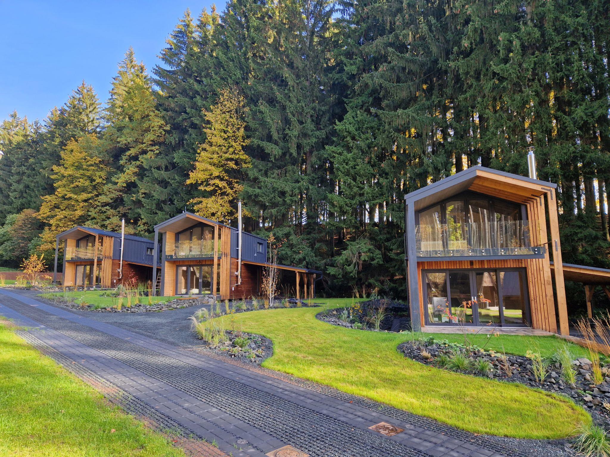 "Luxe Timber Lodge & Relaxing Bath", 3-room chalet. Very beautiful and tasteful furnishings: living/dining room with 1 sofabed, Scandinavian wood stove, dining table and TV. Kitchenette (2 hot plates, oven, dishwasher, toaster, kettle, microwave, electric coffee machine, Capsules for coffee machine (Tchibo)). Bath/WC. Electric heating, wood heating, floor heating. Upper floor: 1 room with 1 double bed. 1 room with 2 beds. Exit to the balcony. Balcony. Balcony furniture, barbecue. Facilities: Internet (WiFi, free). Please note: suitable for families. Non-smoking house. Built-in bluetooth audio system and central touch control of lighting and temperature conveniently from the living room.