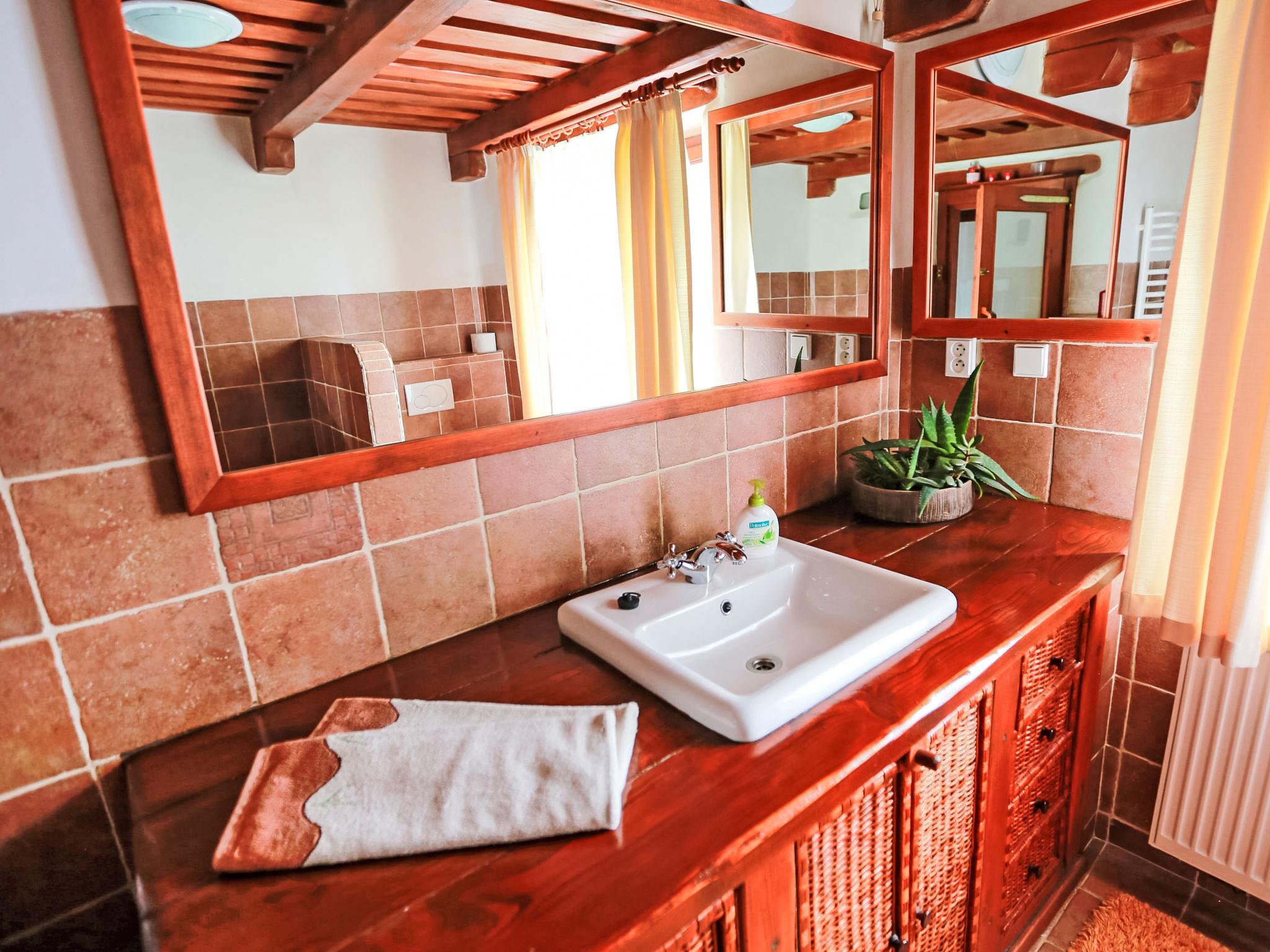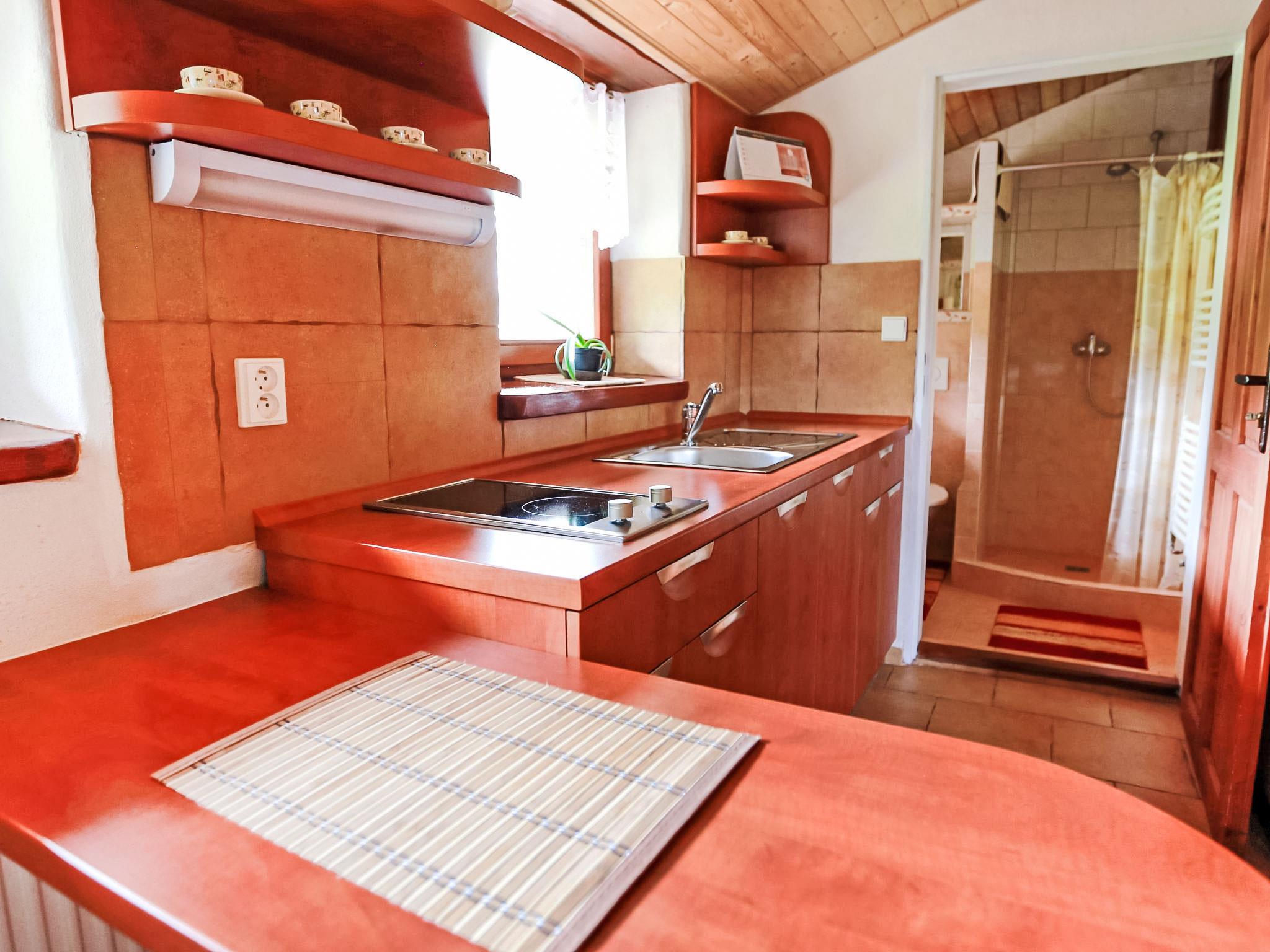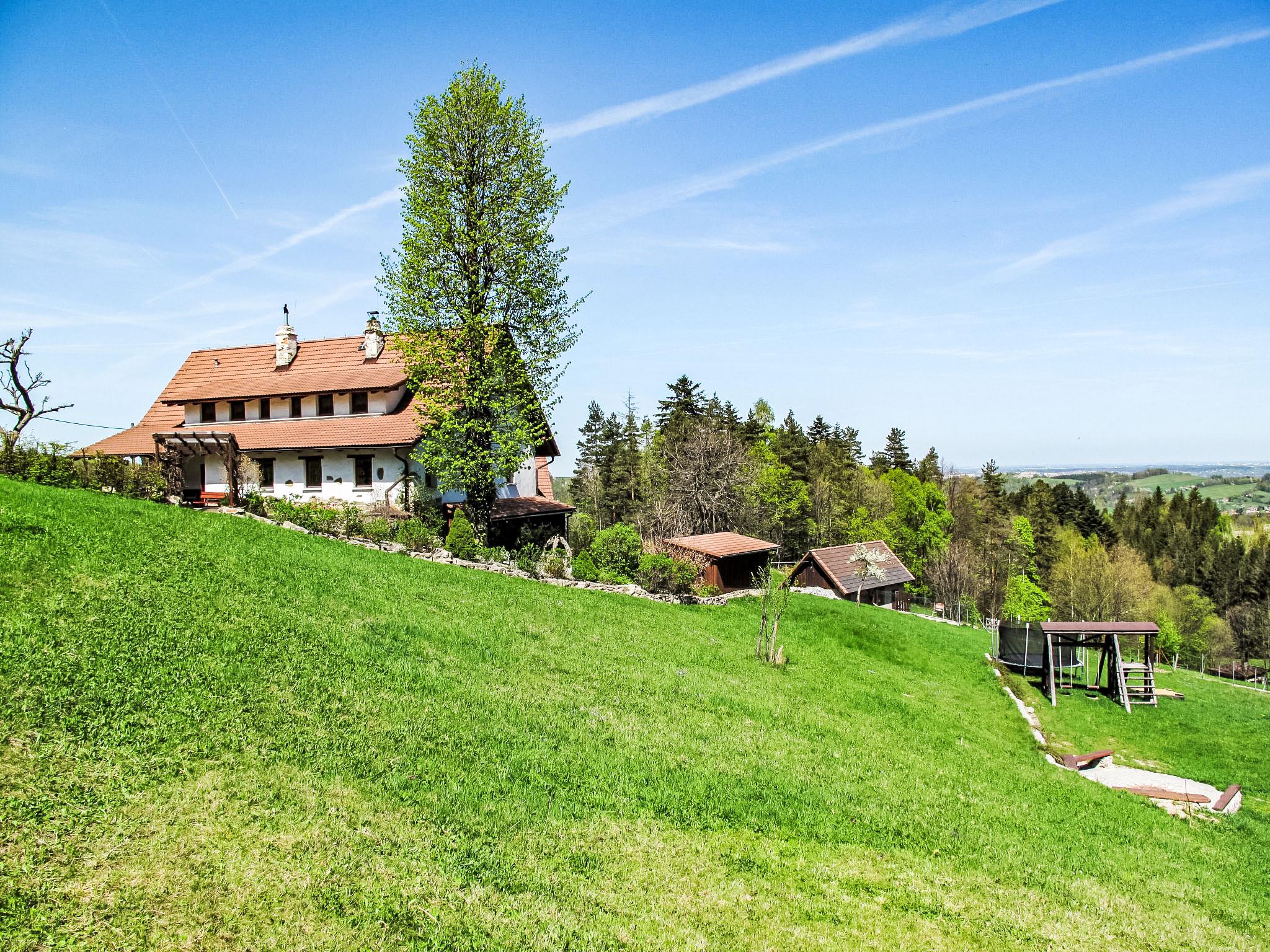 5-room chalet 290 m2 on 2 levels. Spacious and bright, partly with sloping ceilings, very comfortable furnishings: entrance hall. Interconnecting room. Large living/dining room 25 m2 with dining table and TV (flat screen), radio, CD-player and tiled stove. Exit to the garden, to the terrace, to the veranda. 1 room 20 m2 with 2 beds and 1 double bed. Kitchen 15 m2 (oven, 4 ceramic glass hob hotplates, freezer) with tiled stove. Bath/WC. Upper floor: interconnecting room. Living/sleeping room with sloping ceilings with 2 double beds (1 x 150 cm), dining table, kitchen corner and shower/WC. Exit to the balcony. Large walk-through room with sloping ceilings with 1 double bed (1 x 150 cm), dining table, kitchen corner and shower/WC. Exit to the balcony. 1 small room with sloping ceilings with 1 double bed. Kitchenette (2 ceramic glass hob hotplates, microwave). Beautiful view of the countryside. Facilities: Internet (WiFi, free). Please note: suitable for families. Non-smoking house.
