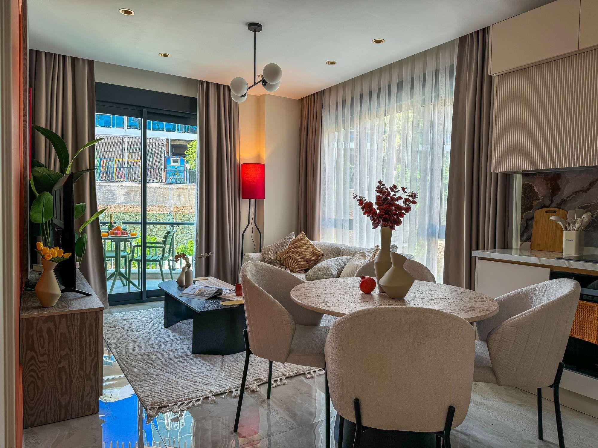 Discover a blend of style and convenience in this stylish new 1+1 apartment, nestled within a prestigious modern complex. Experience the essence of a resort atmosphere daily, with views overlooking the residence's beautifully maintained grounds. Perfect for those seeking a serene escape without sacrificing accessibility, this apartment is your gateway to a luxurious holiday.
