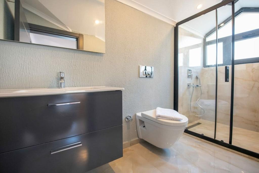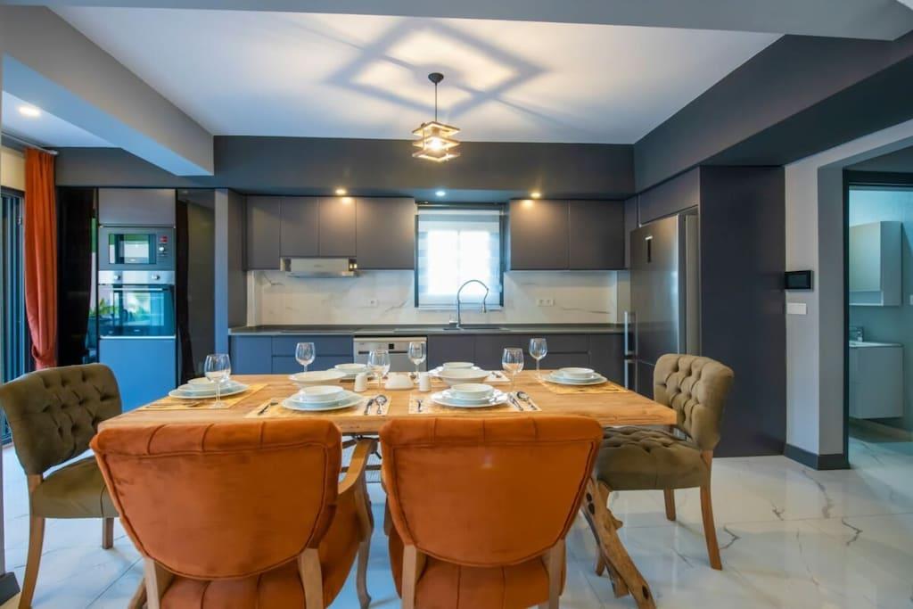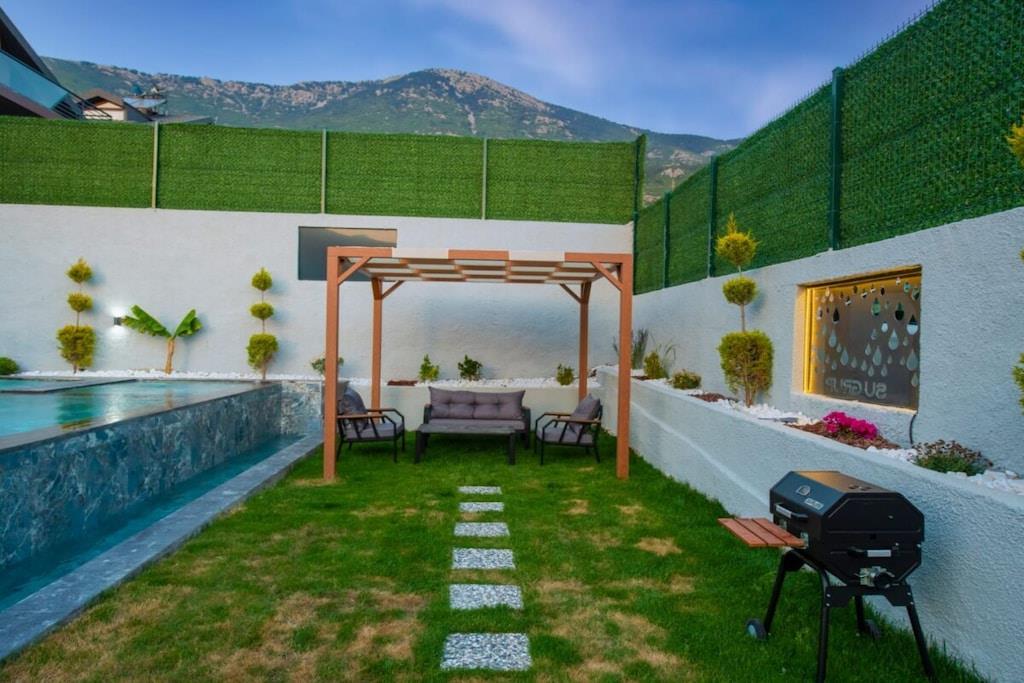 Villa Te2 ligger i det rolige Ovacik-distriktet i Fethiye, og er en luksuriøs ferievilla med 4 soverom som har plass til opptil 8 personer. Denne villaen er ideell for store familier eller vennegrupper, og kombinerer komfort, eleganse og vakre naturlige omgivelser. Villaen er designet med et middelhavsinspirert preg, og har et privat svømmebasseng, et barnebasseng, en hengehuske, et koselig sitteområde og et ekstra TV-hjørne – perfekt for avslappende ferier. Bort fra byens mas og kjas er dette det ideelle stedet for å lade batteriene midt i naturen og under åpen himmel. Bare 5 km fra den verdensberømte Ölüdeniz-stranden og i gangavstand fra det livlige sentrum av Hisarönü, er denne villaen en perfekt base for hvile og avslapning. Enten du leter etter en romantisk ferie eller en aktiv ferie – alt er mulig her. Ta båtturer, utforsk skjulte bukter, svøm i Sommerfugldalen, eller nyt paragliding og dykkeeventyr. Barnebassengets mål: Bredde – 2,00 m | Lengde – 2,00 m | Dybde – 0,40 m Innsjekking: 16:00 — Utsjekking: 10:00